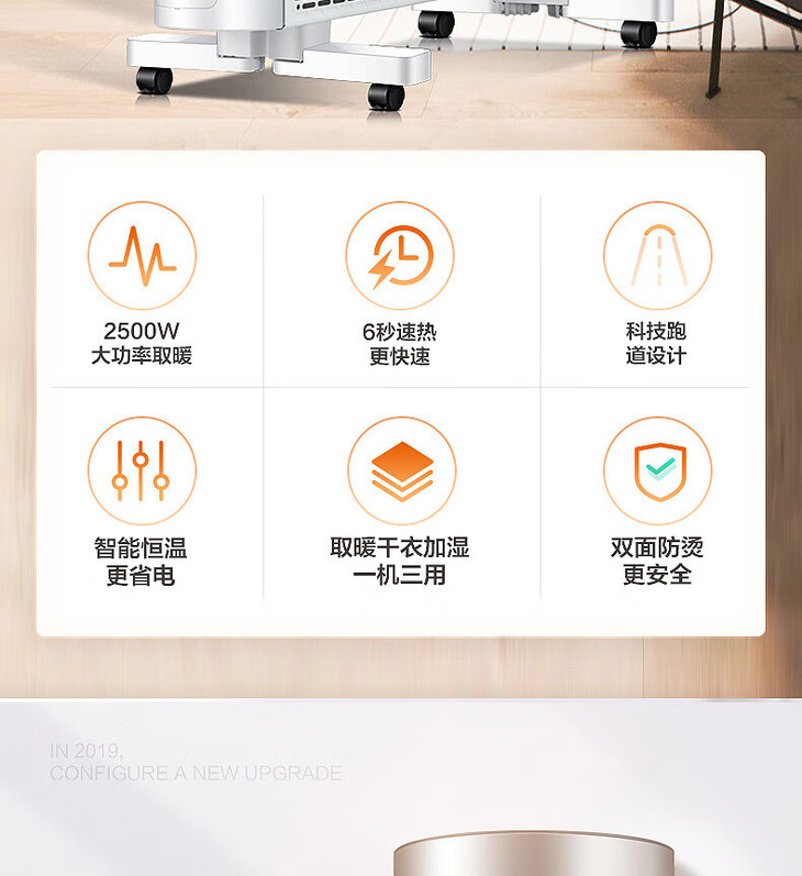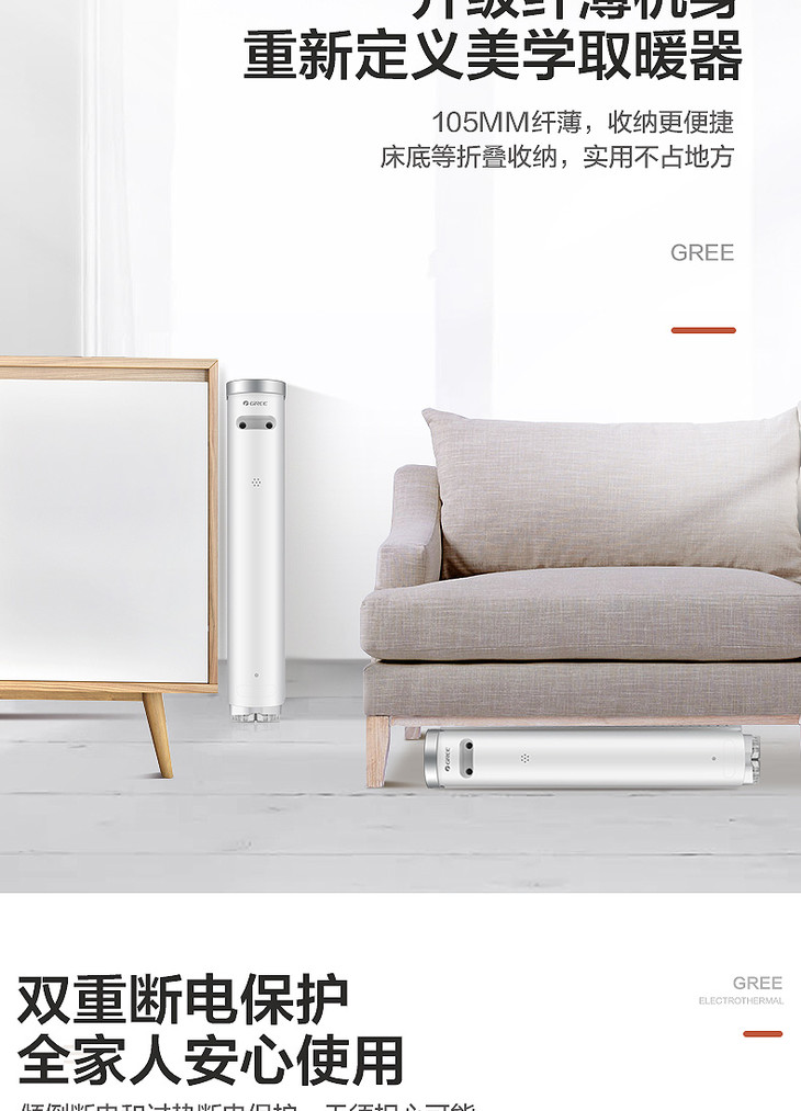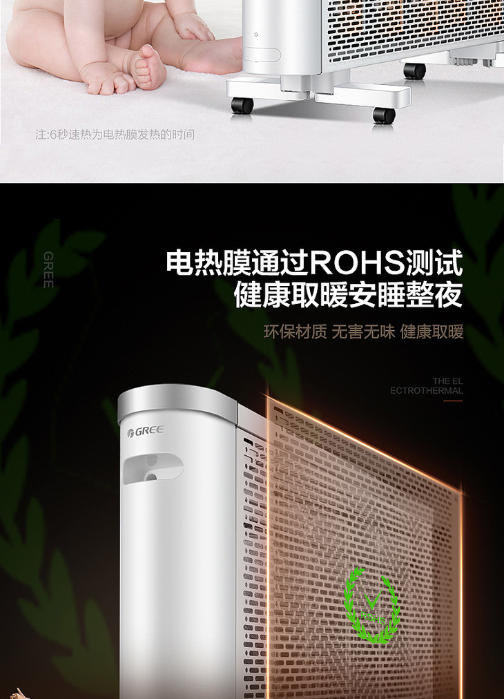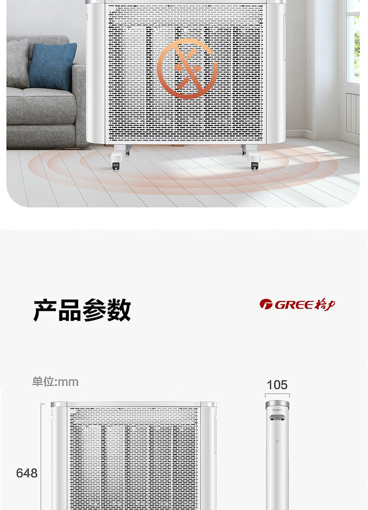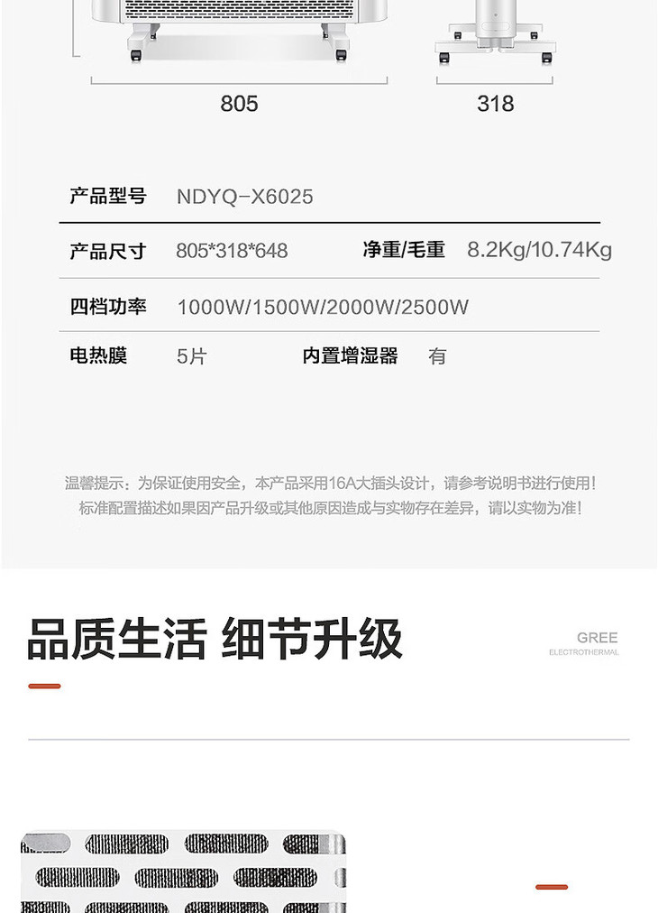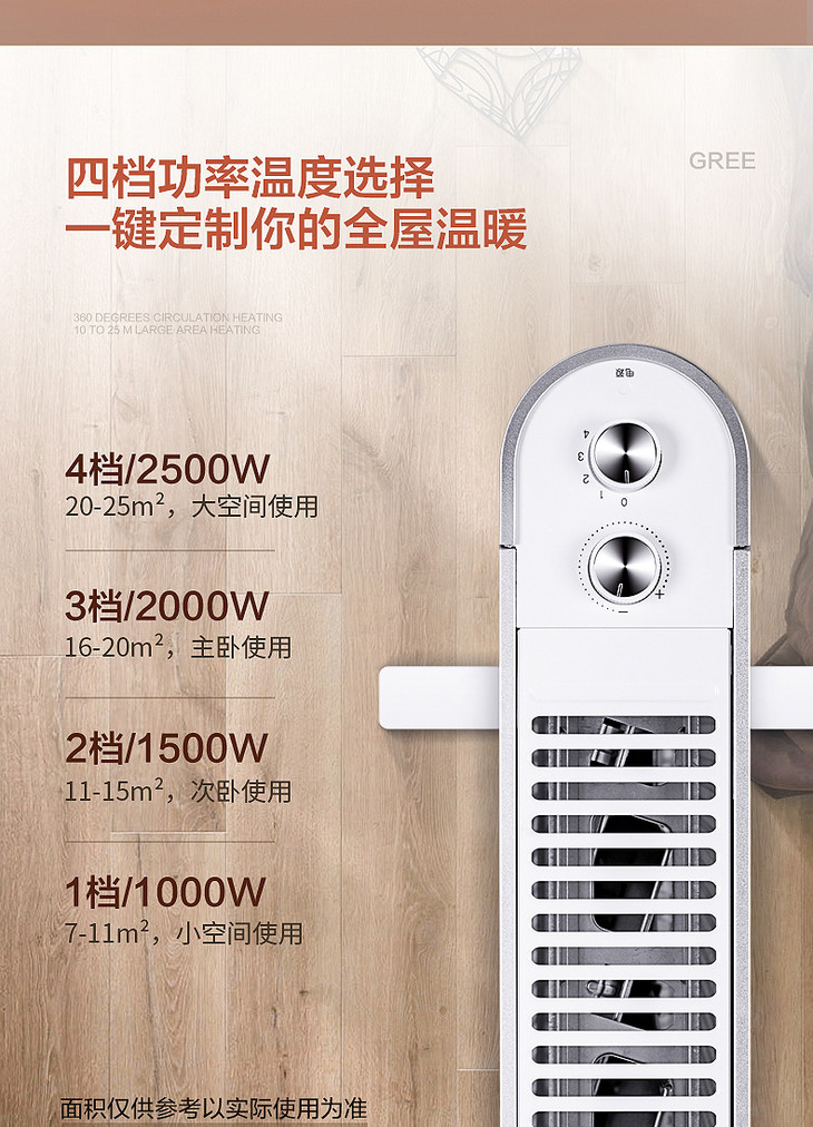 格力(510125)(GREE)取暖器家用客厅大面电暖器节能电暖气片低噪婴儿孕妇防烫安全无光大功率电热膜加湿取暖气烤火炉 【2500W机械款】NDYQ-X6025(白+银)