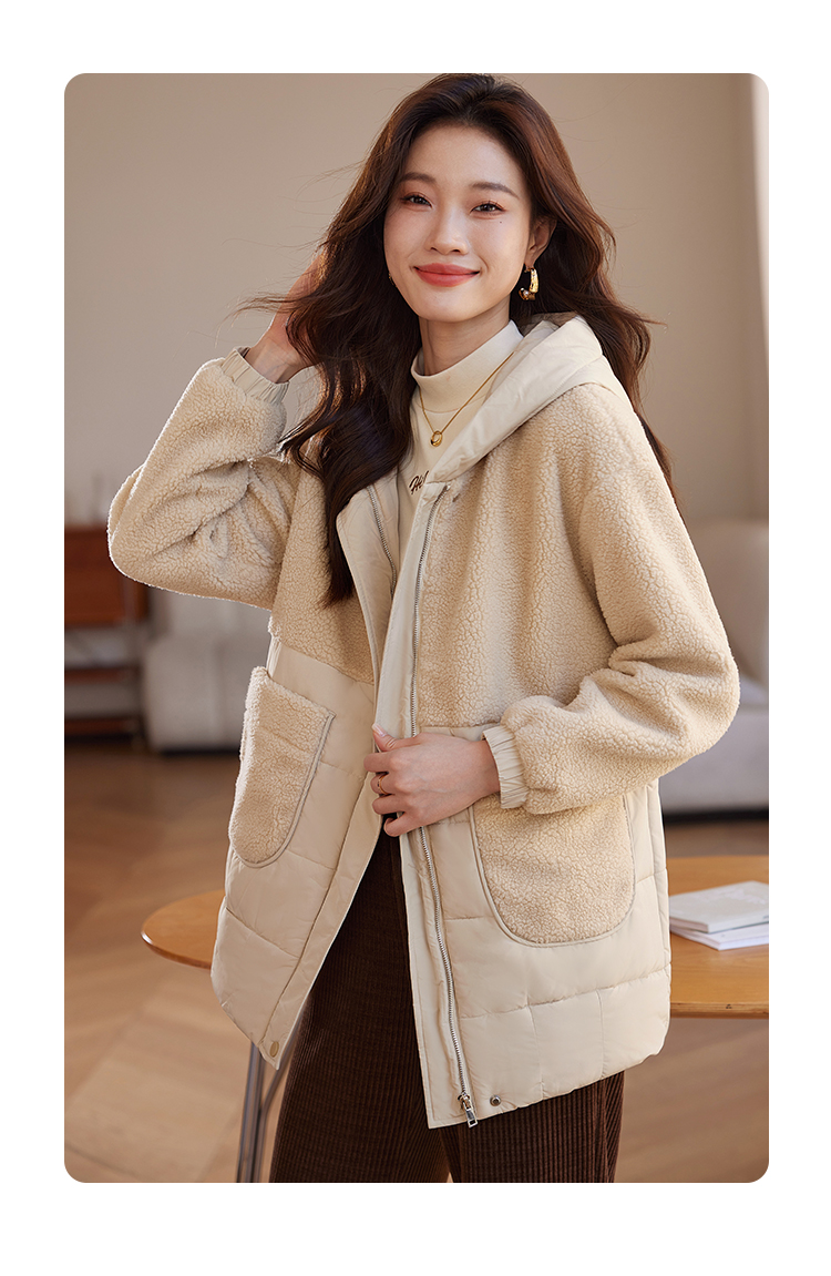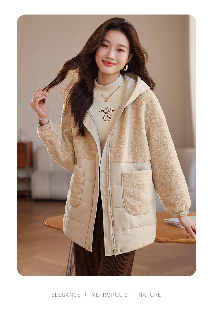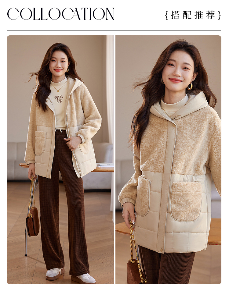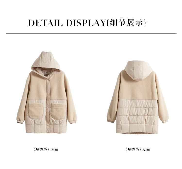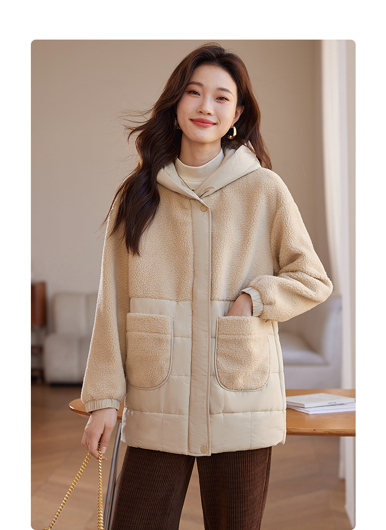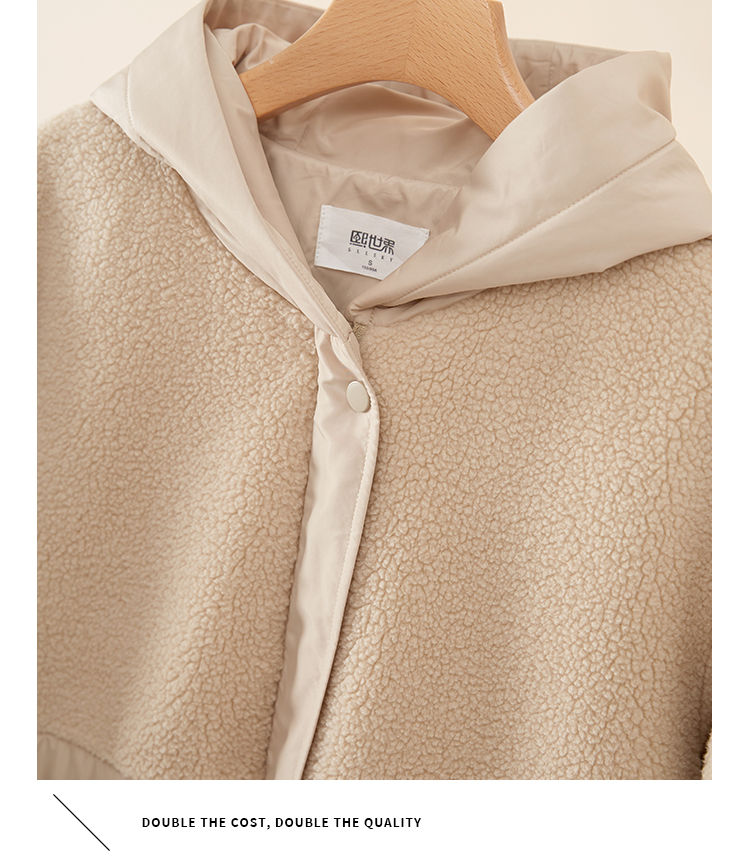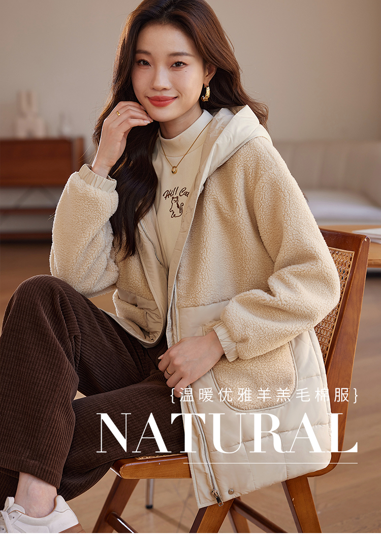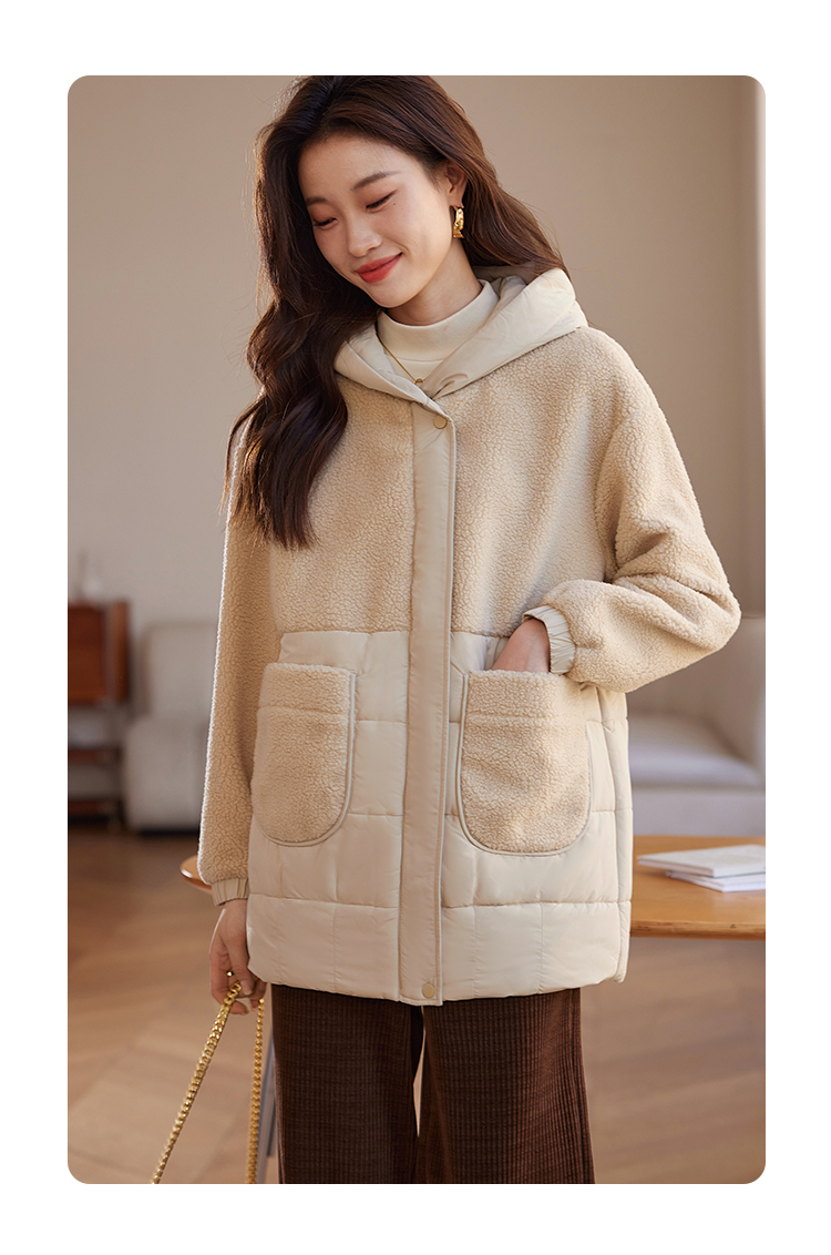 【年终特卖】熙世界羊羔毛棉服外套女连帽秋冬新款宽松大口袋夹棉加厚棉衣