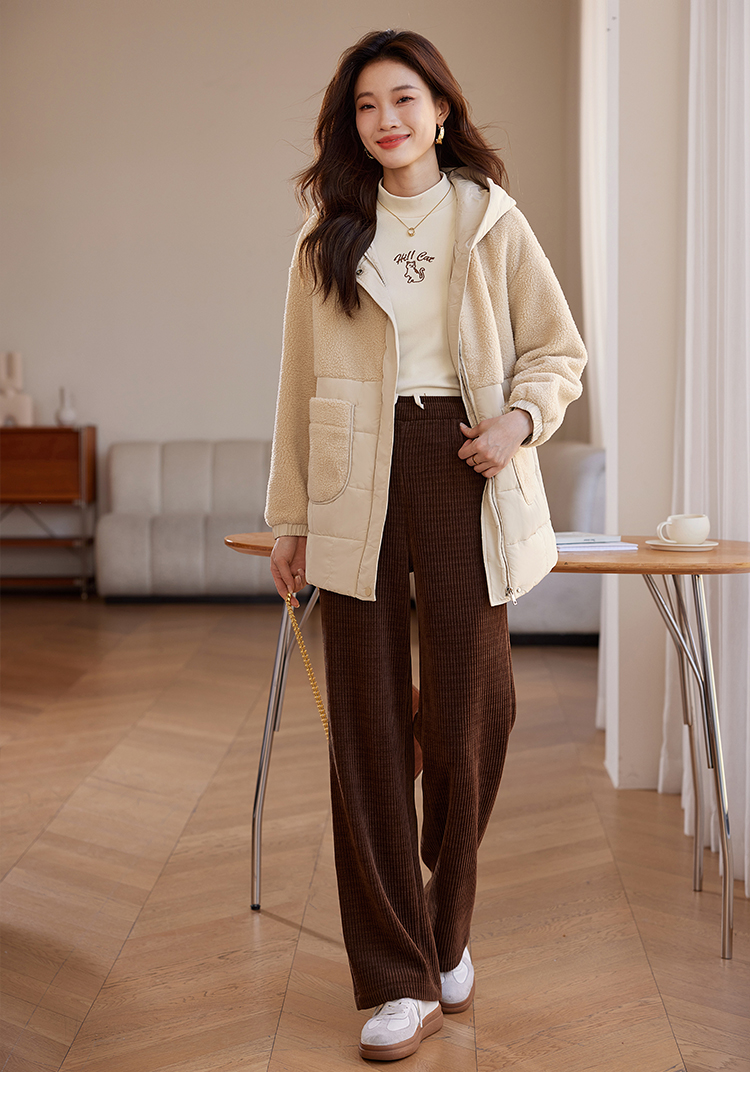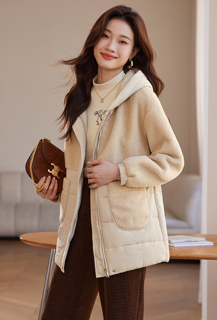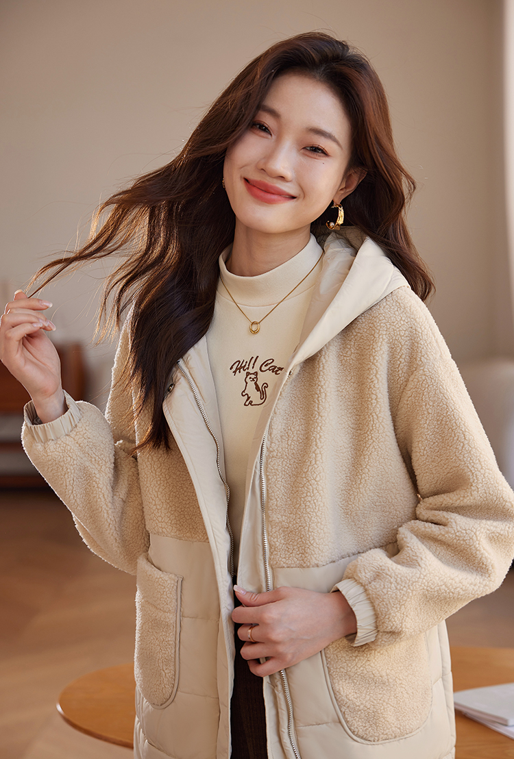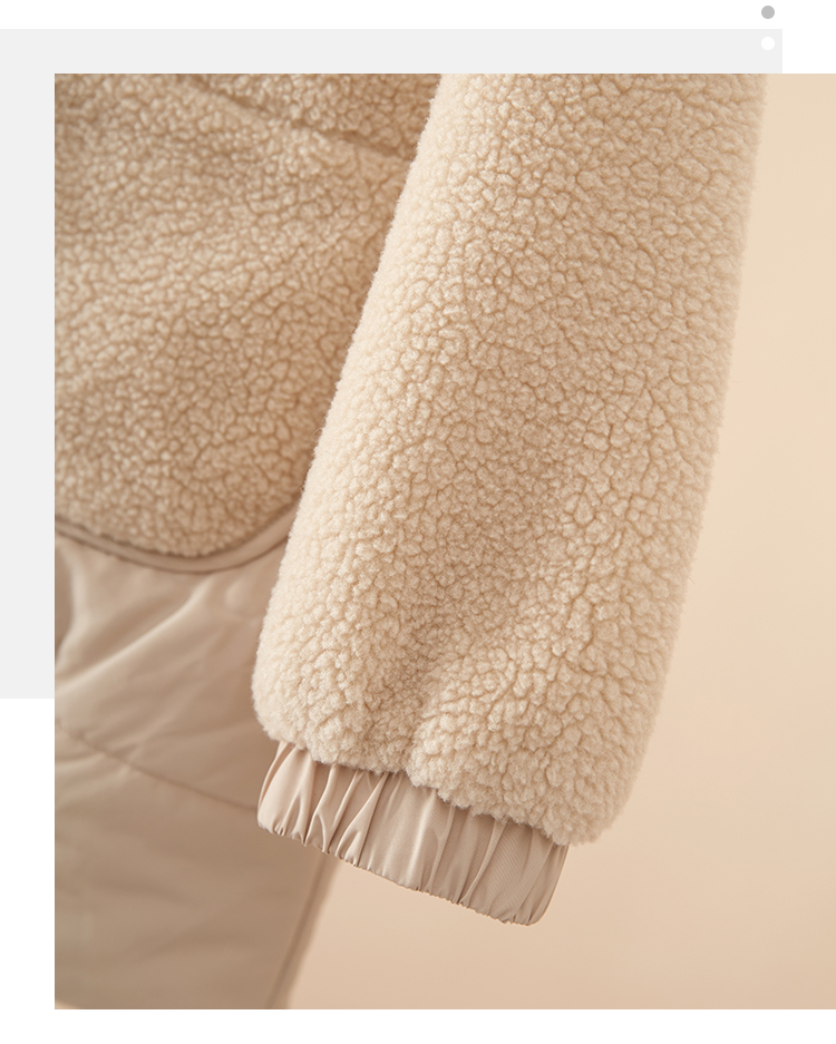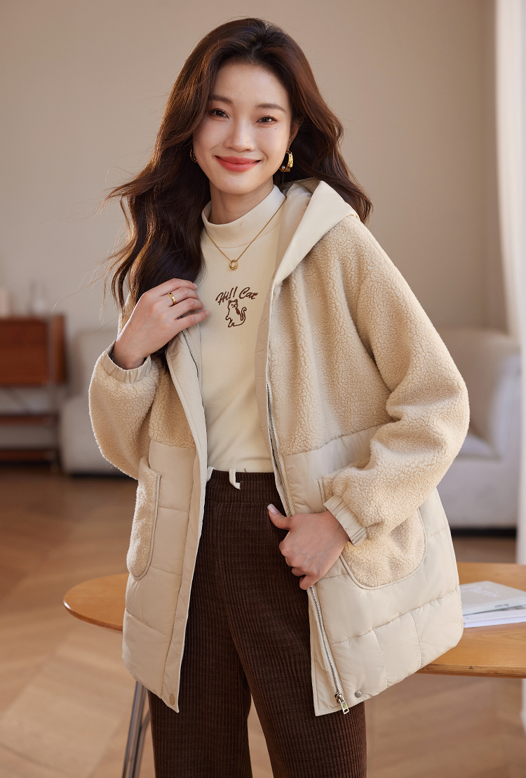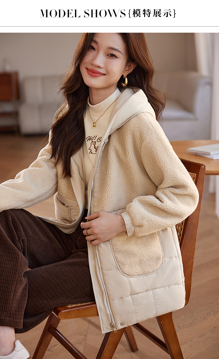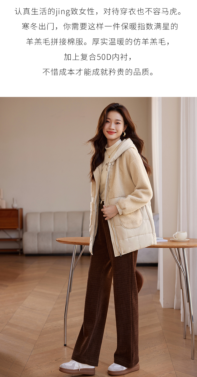 【年终特卖】熙世界羊羔毛棉服外套女连帽秋冬新款宽松大口袋夹棉加厚棉衣