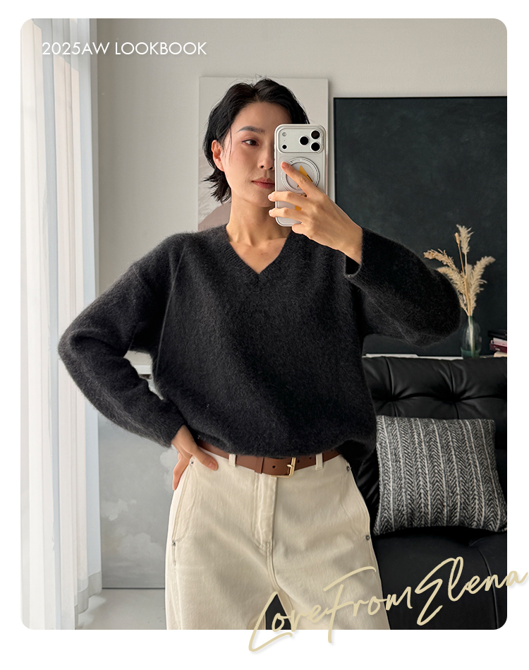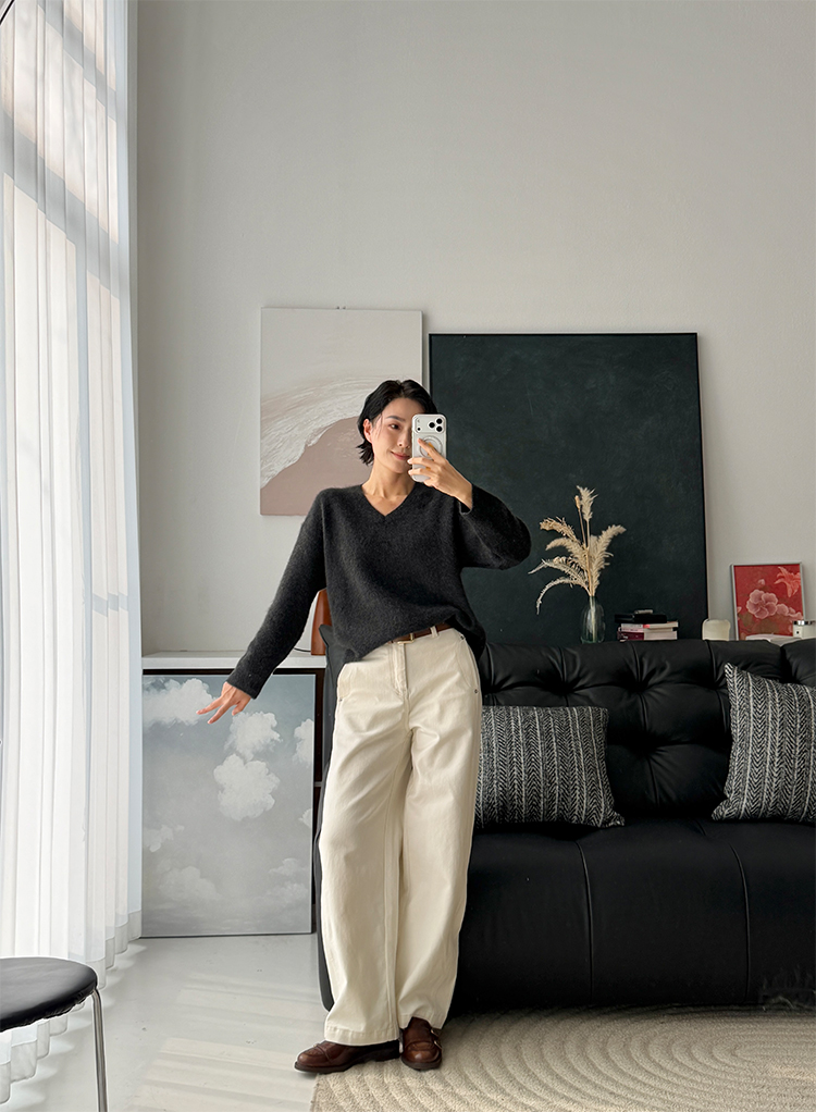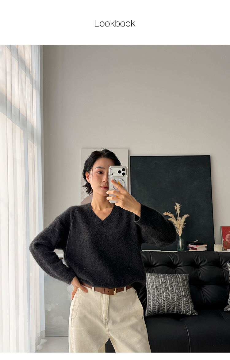 100%牦牛绒 慵懒风宽松V领针织衫