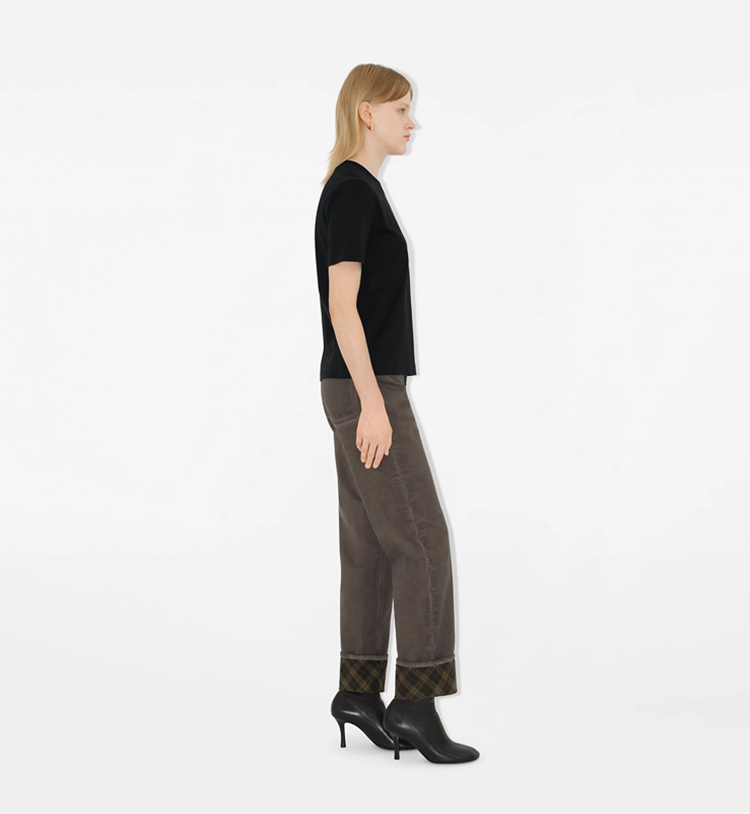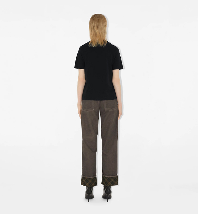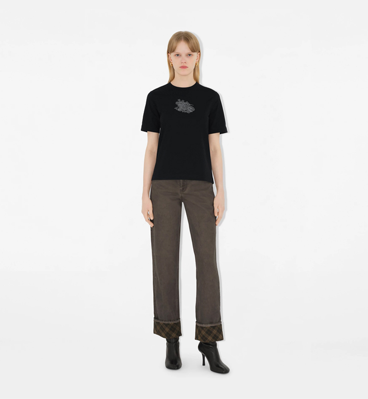 BURBERRY 巴宝莉 女士佩斯利图案马术骑士徽标棉质圆领短袖T恤 黑色 8097924 C1413