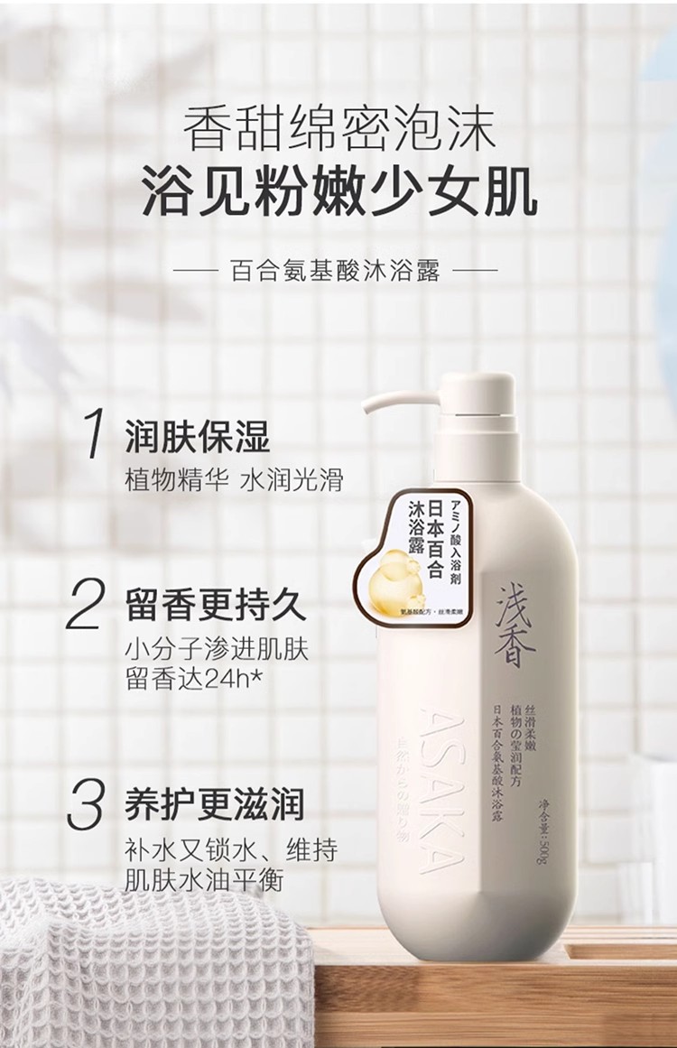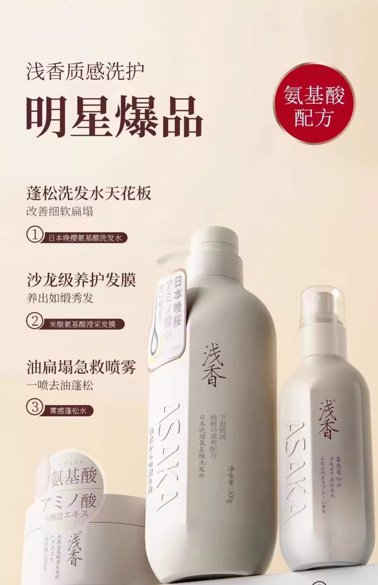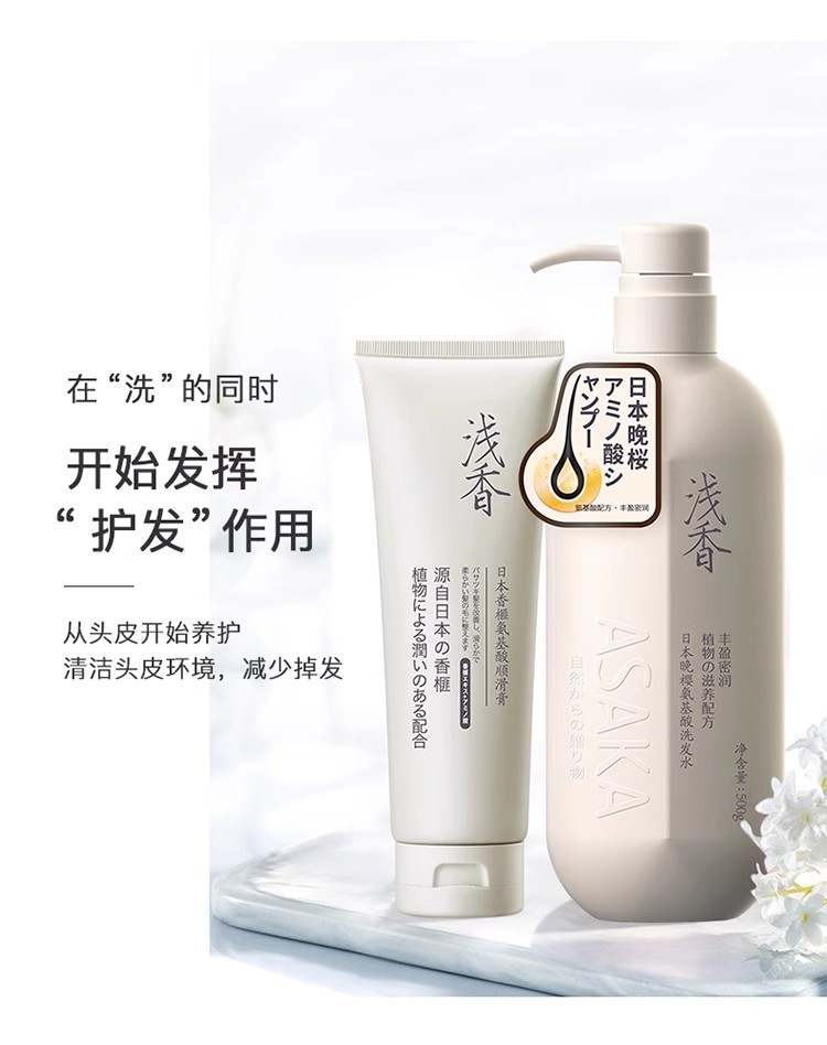 浅香植物氨基酸洗沐家庭套装 750g(晚樱洗发水)+750g(百合沐浴露)+260g(顺滑膏)