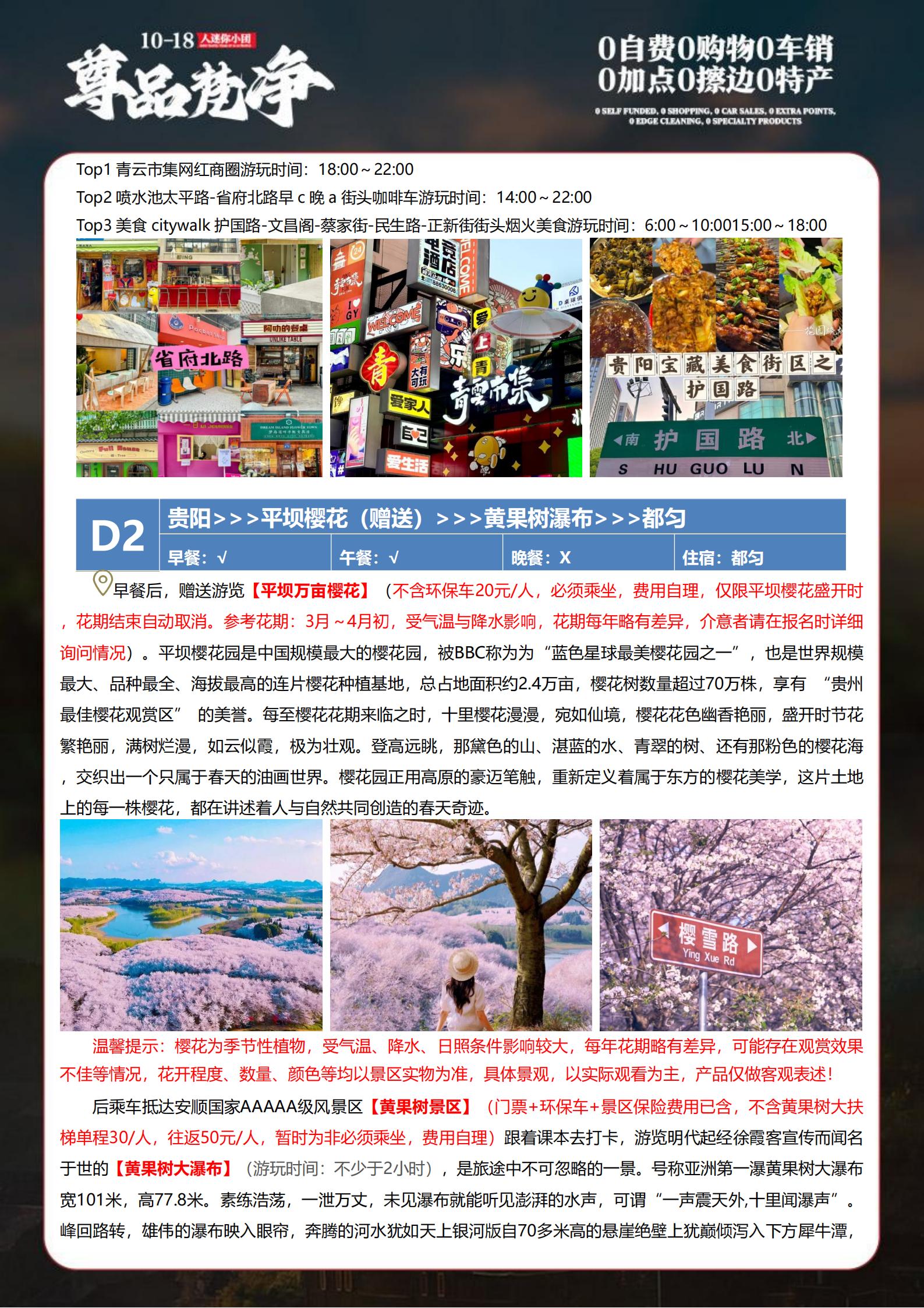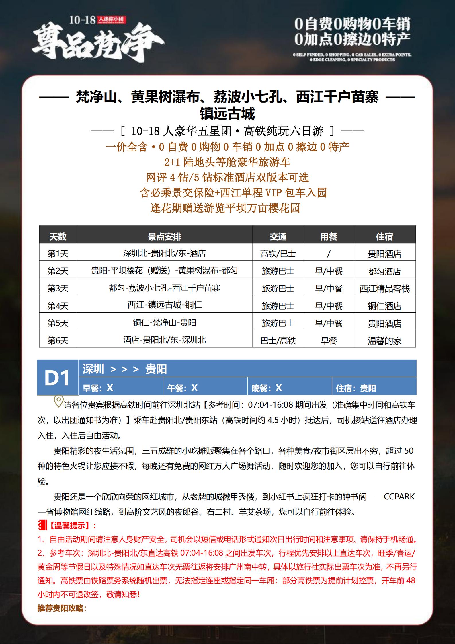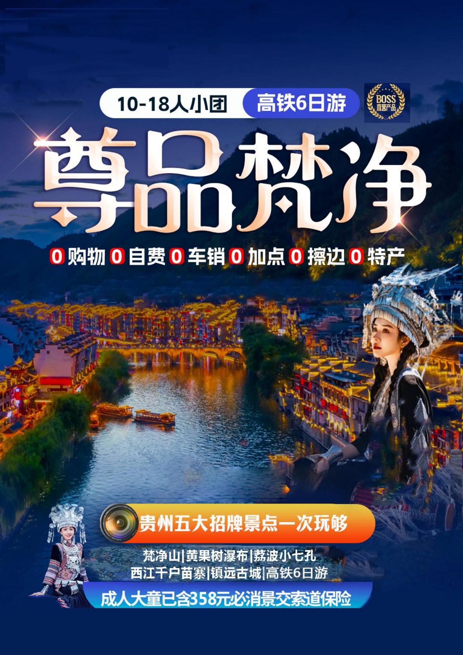 <贵州梵净山、黄果树瀑布、荔波小七孔、西江千户苗寨 、镇远古城6天高铁团>10-18人精致小团,逢花期赠送游览平坝万亩樱花园