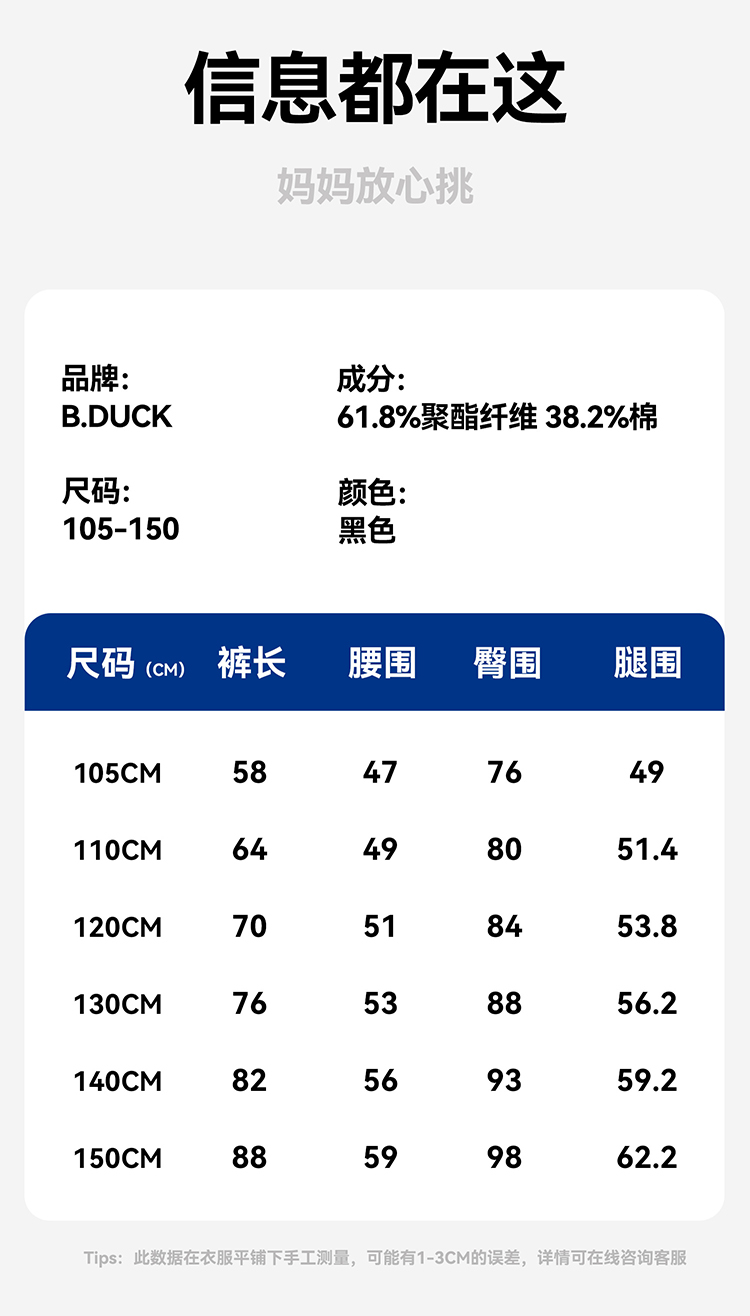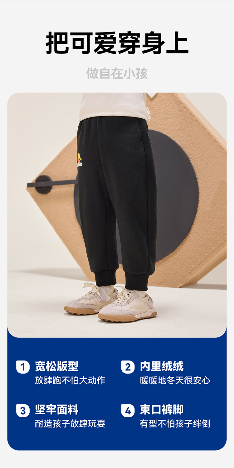 B.Duck小黄鸭童装休闲保暖针织裤冬季束脚运动裤105-150 BF5563923