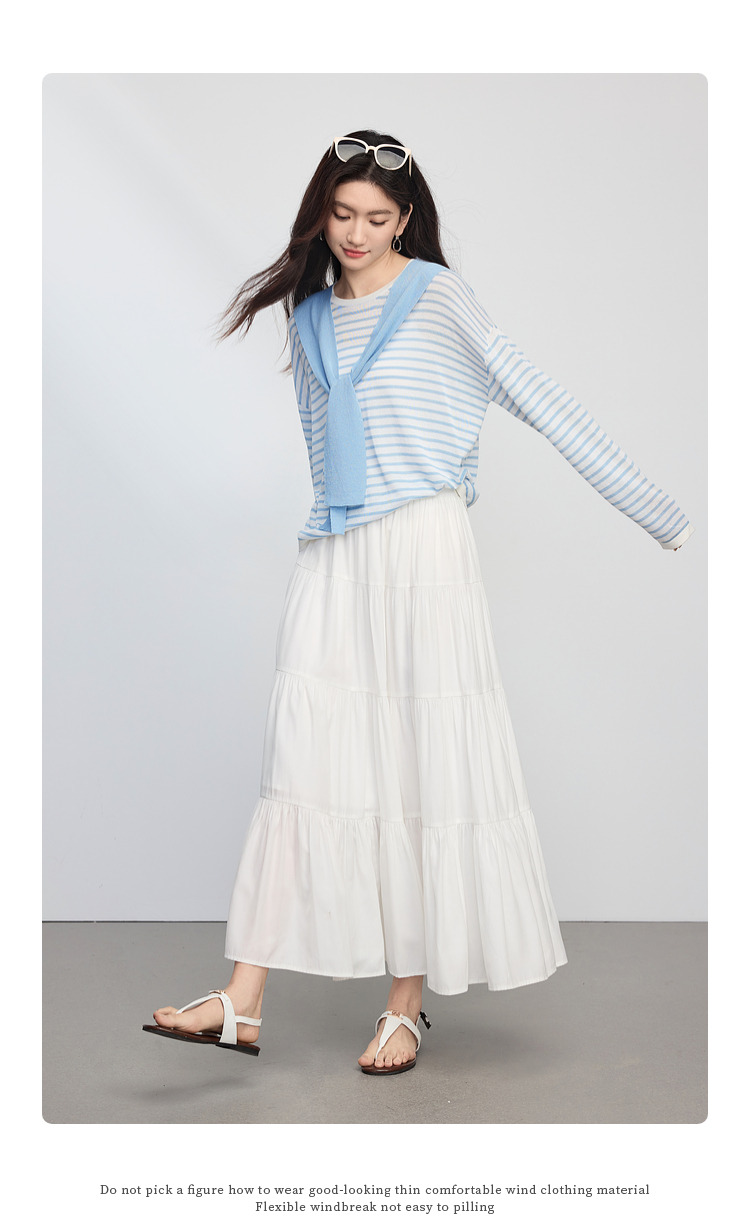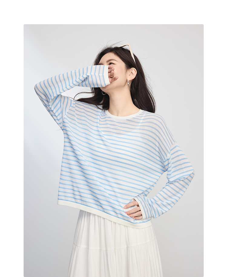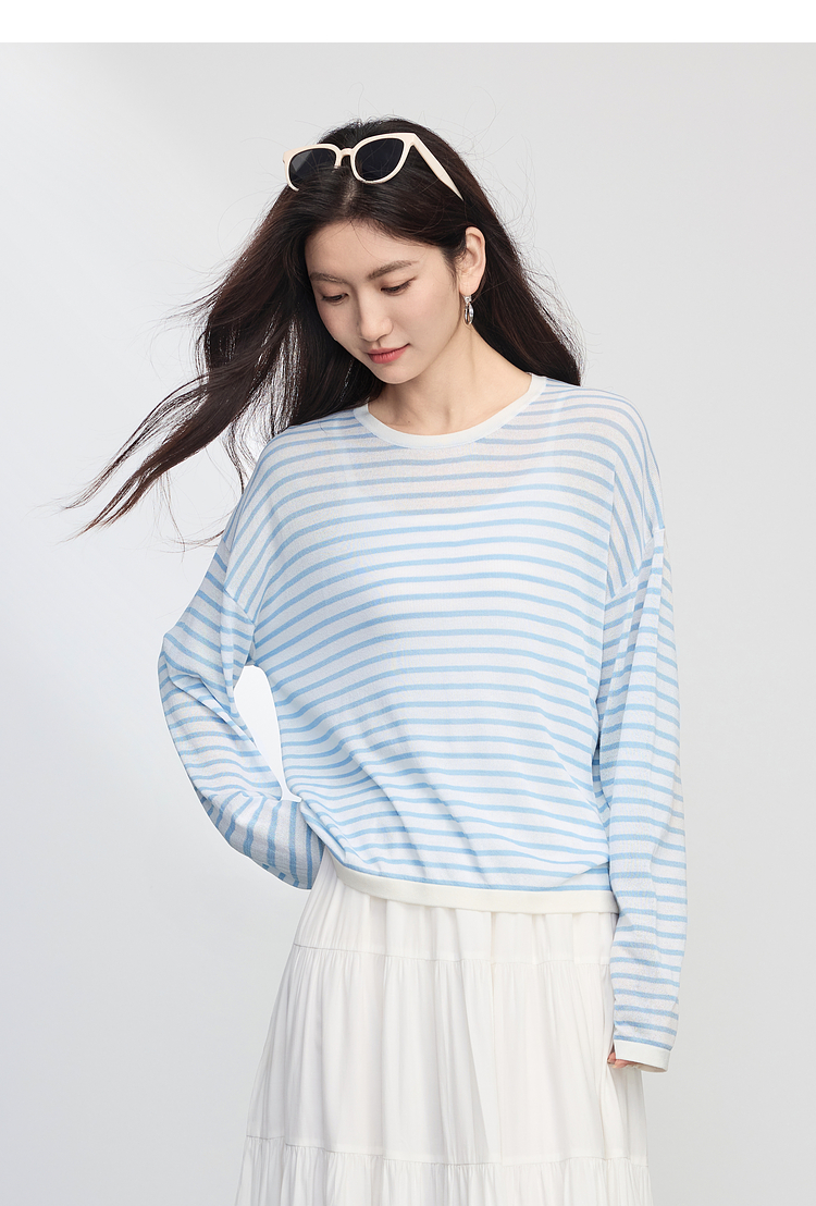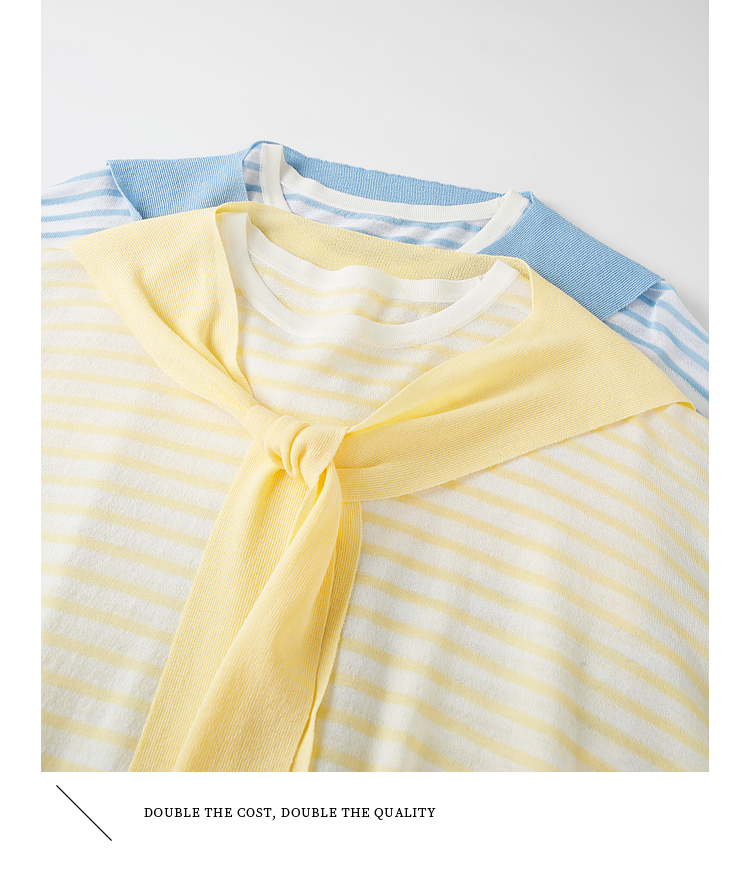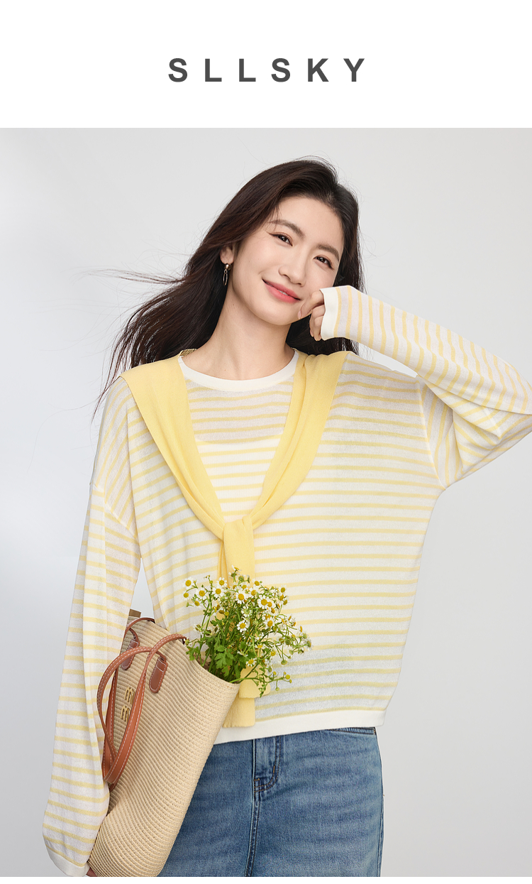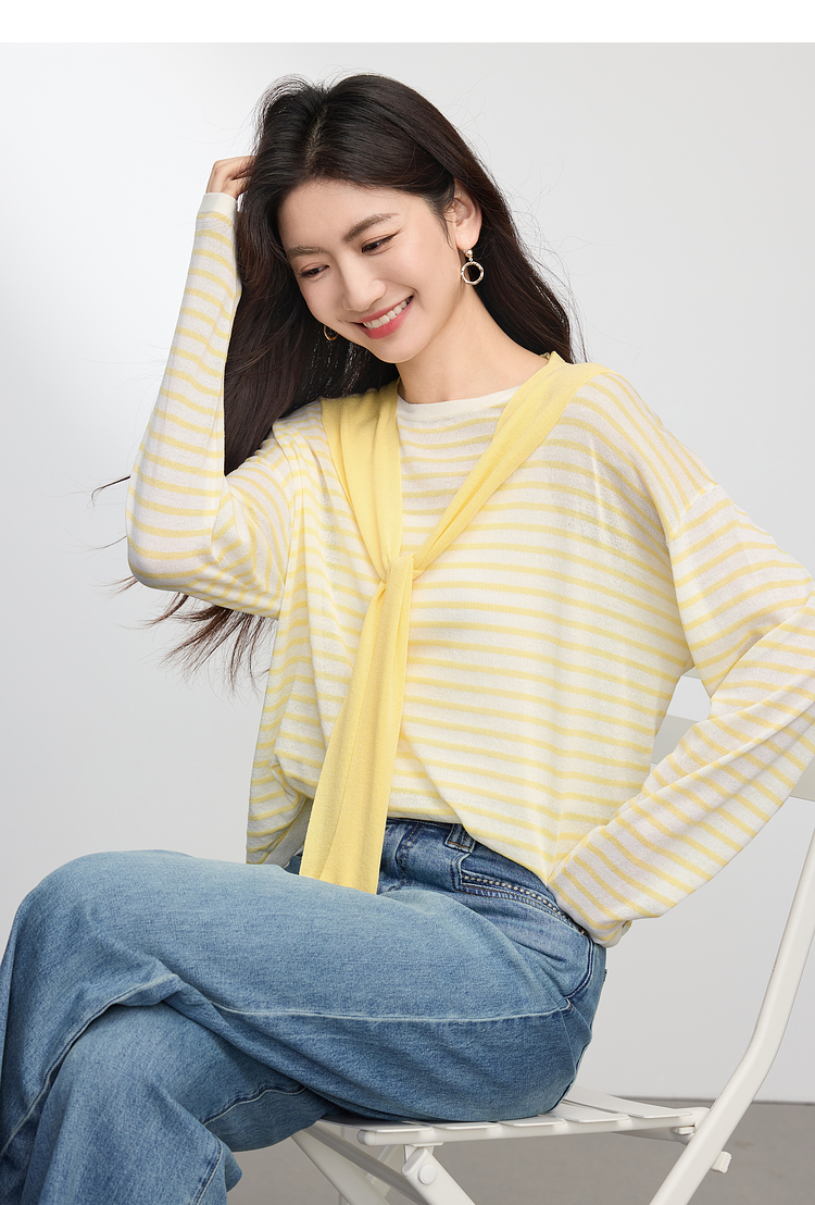 【08/12新品】熙世界披肩条纹针织衫两件套女夏秋新款宽松慵懒风长袖罩衫上衣