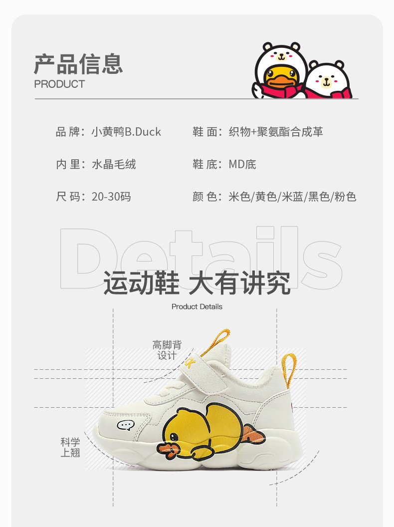B.Duck小黄鸭童鞋冬季保暖儿童运动鞋20-30码 B5283003A
