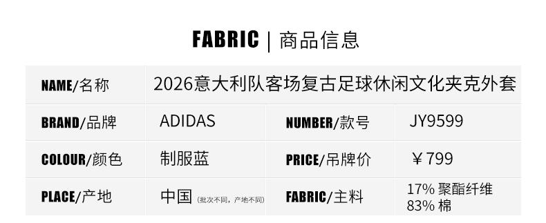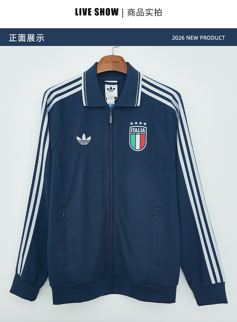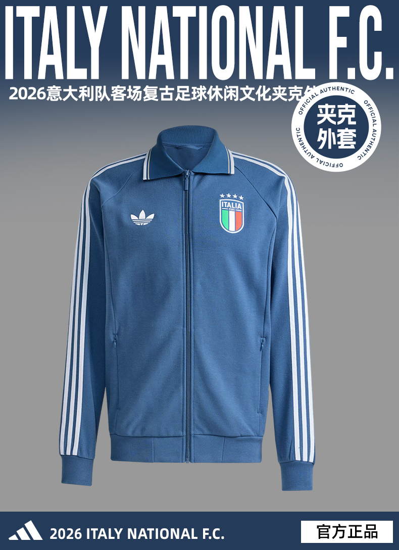 SFS正品 Adidas阿迪达斯2026意大利队客场复古足球休闲文化夹克外套JY9599