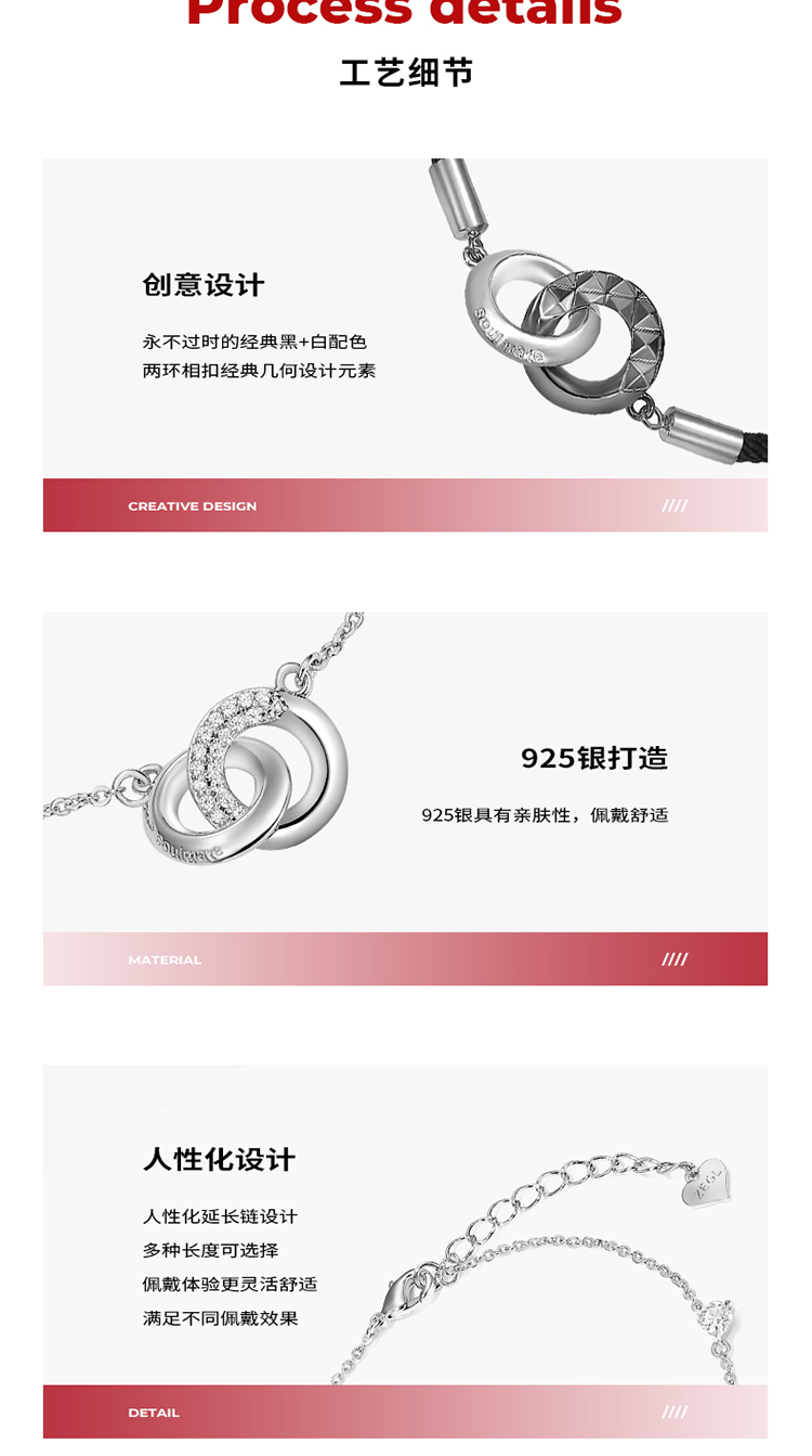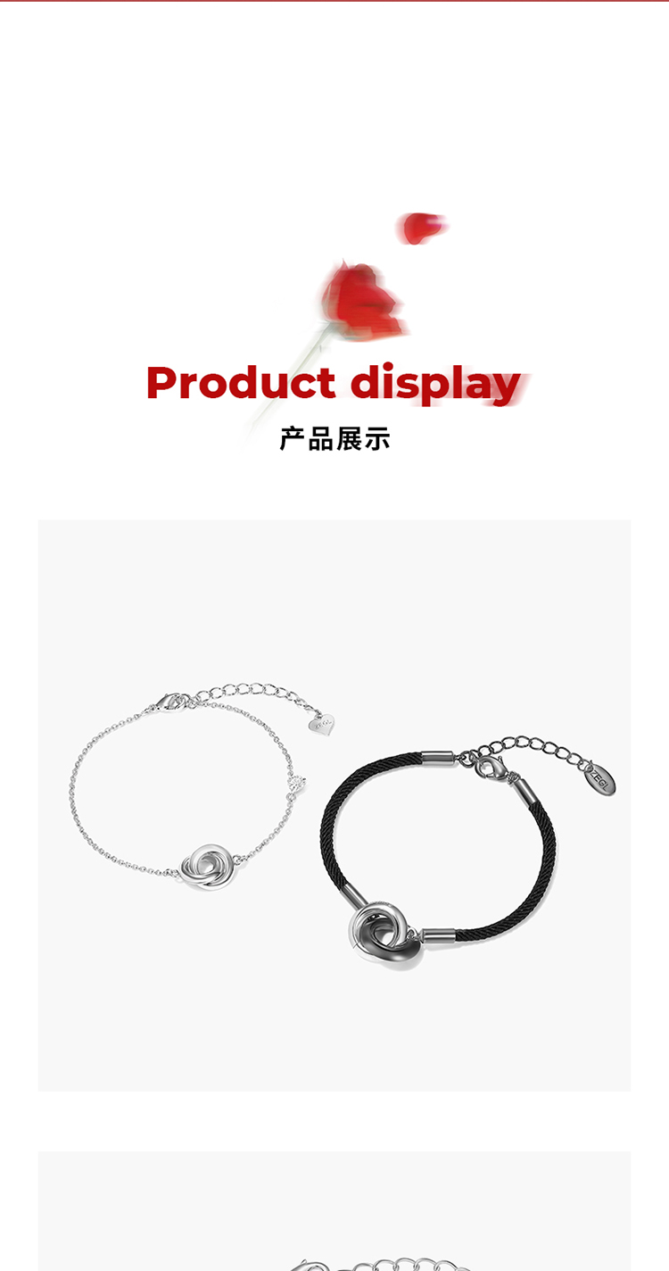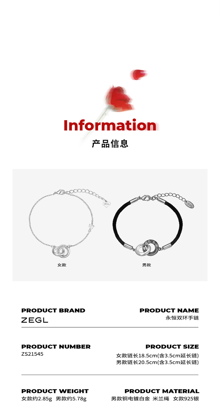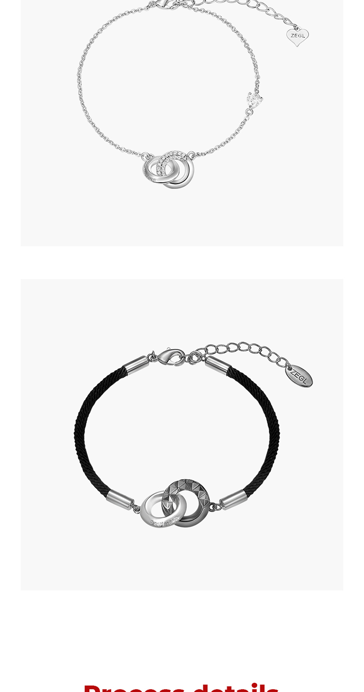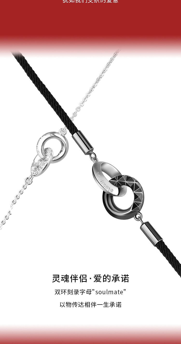 ZEGL设计师925纯银莫比乌斯情侣手链一对环环相扣手绳情人节礼物