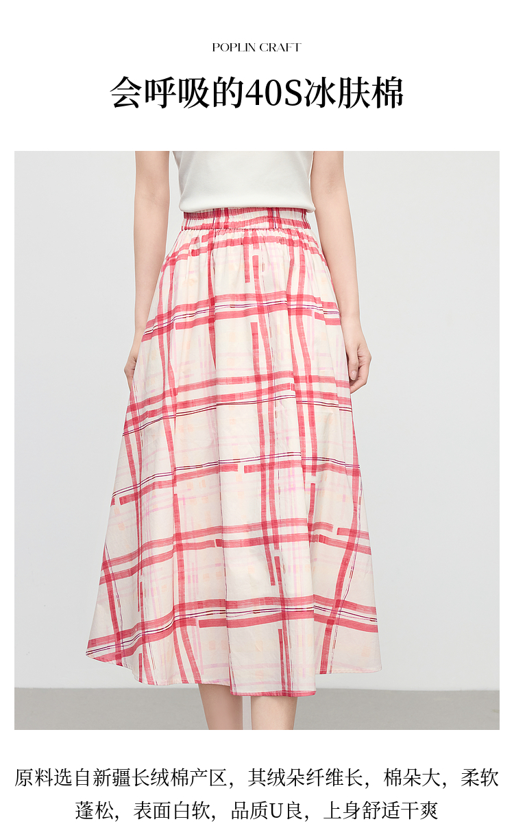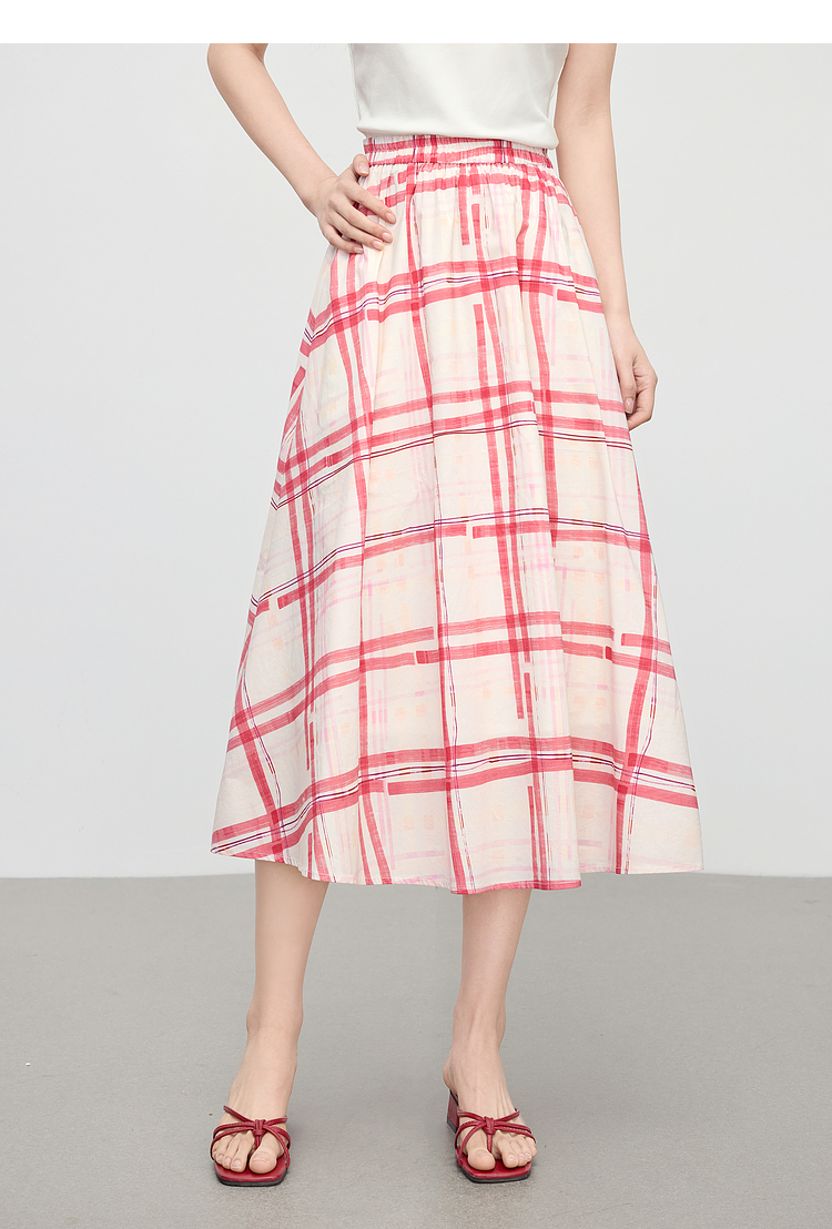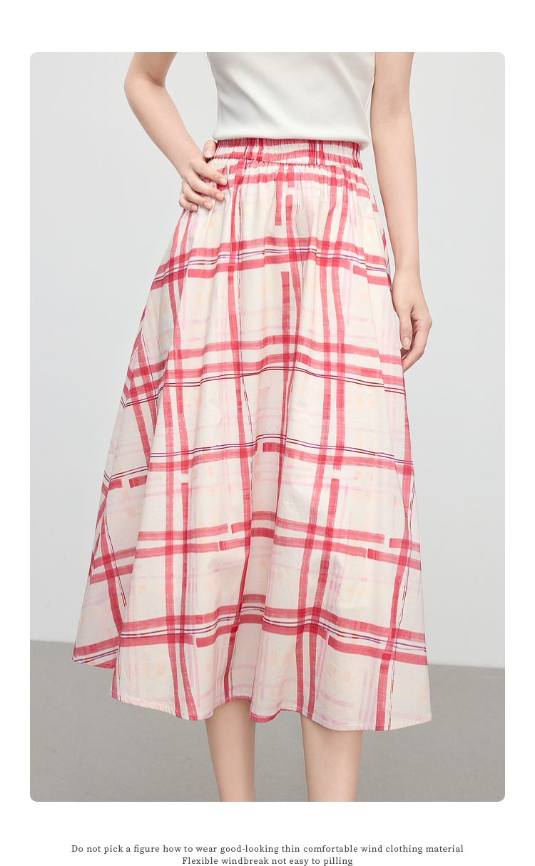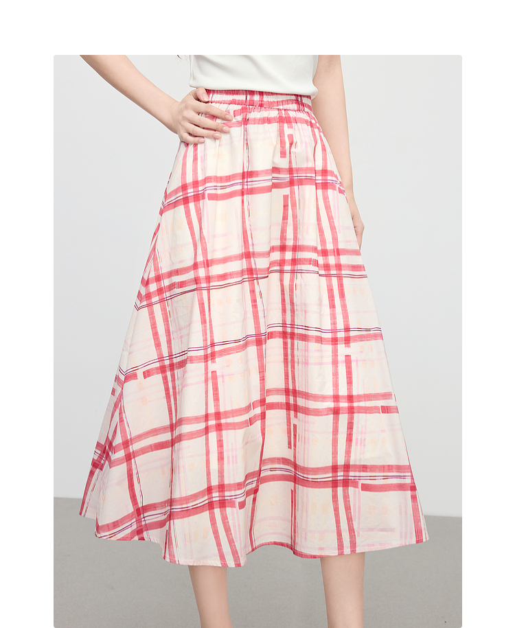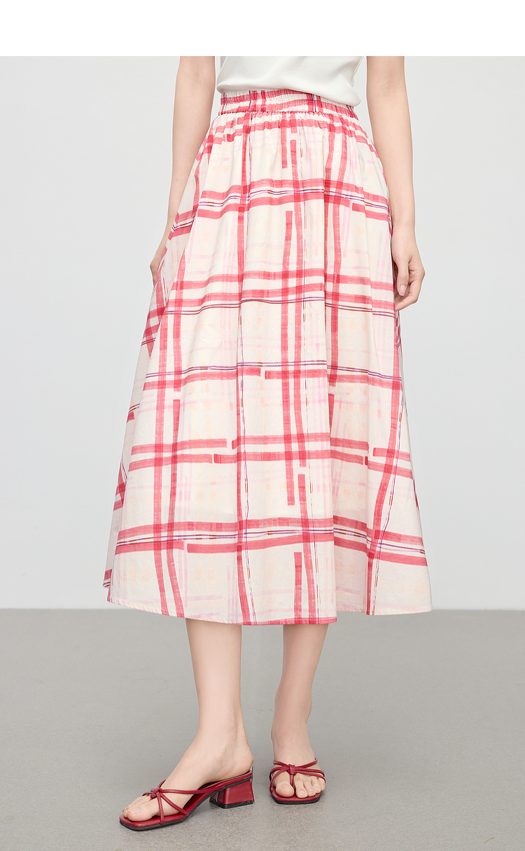 【07/23新品】熙世界气质红色格纹半身裙女夏季新品小个子松紧高腰显瘦a字伞裙