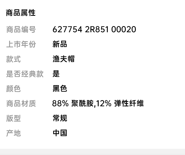 EMPORIO ARMANI 阿玛尼 男士渔夫帽 黑色 627754 2R851 00020