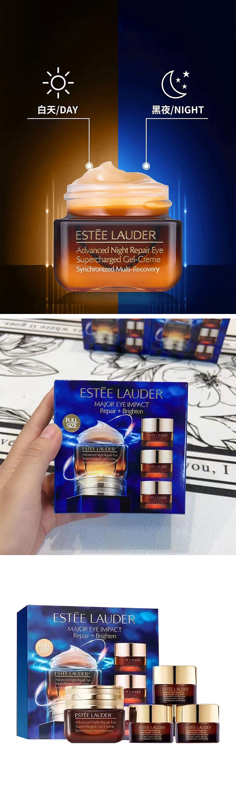 抗蓝光淡化黑眼圈细纹!淡细纹泡泡眼救星✅买正装送3瓶旅行装👀雅诗兰黛小棕瓶眼霜套盒一拖三 (15ml+5ml*3) 香港直邮