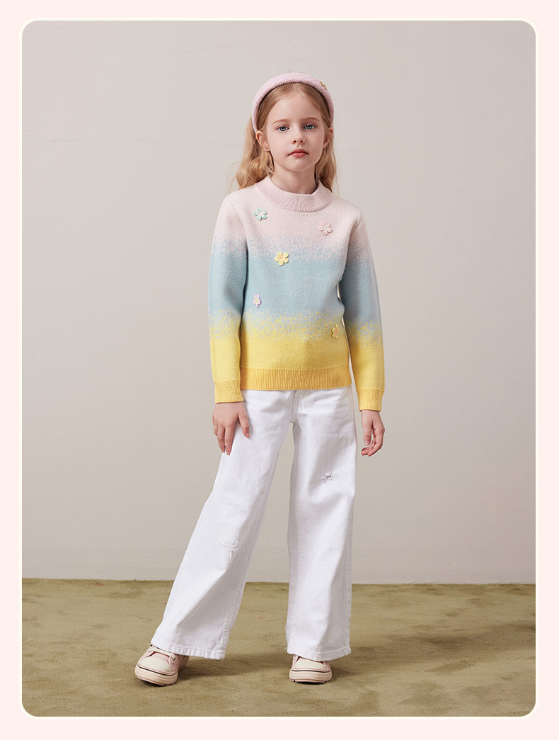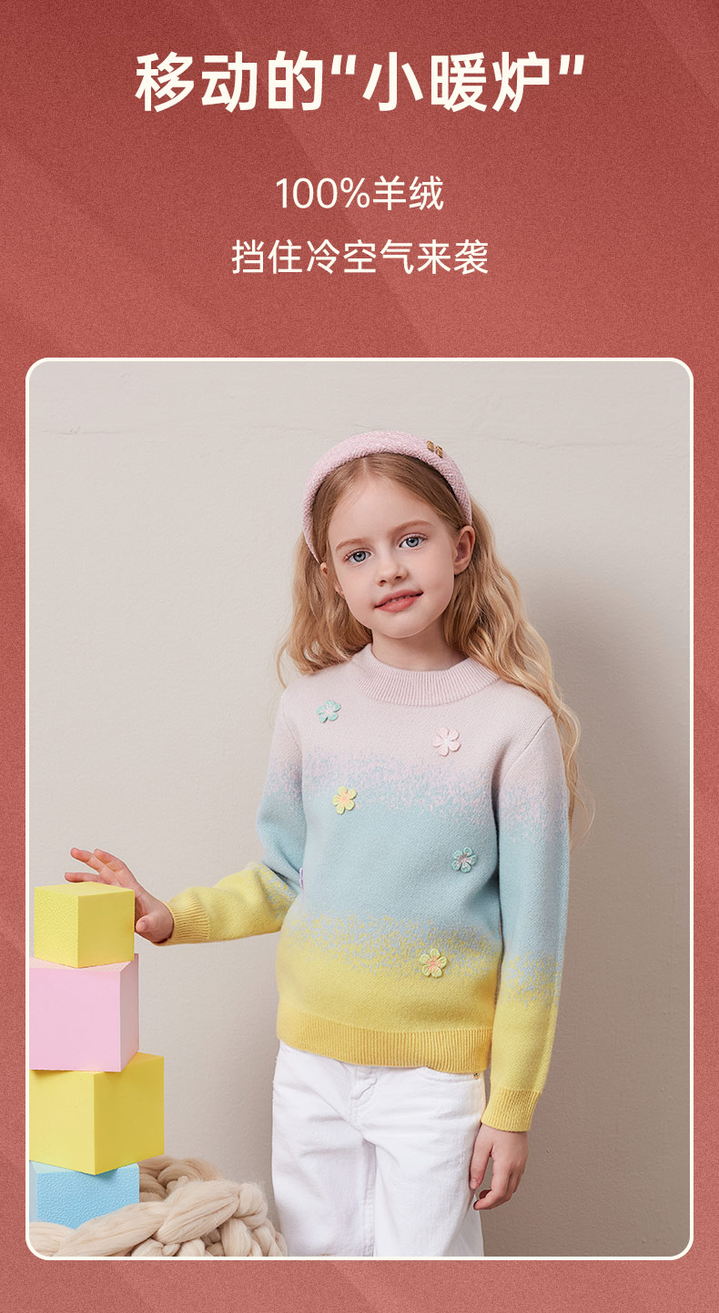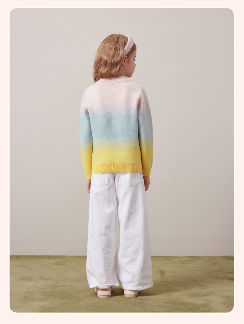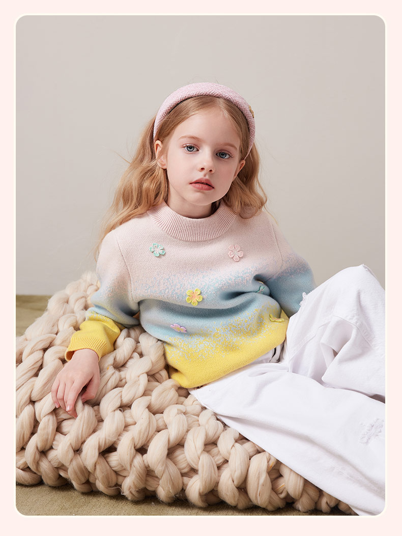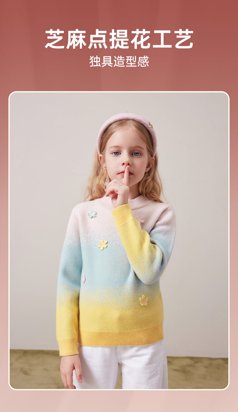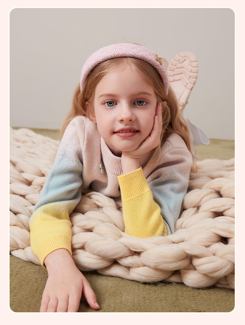 mettekids儿童100%羊绒衫2024秋冬新款女童彩色渐变套头针织毛衣