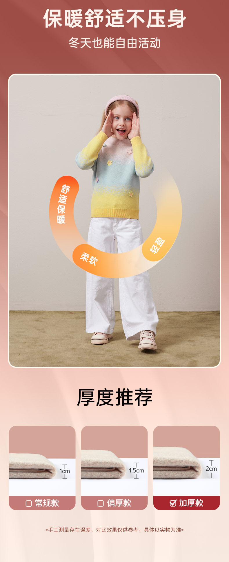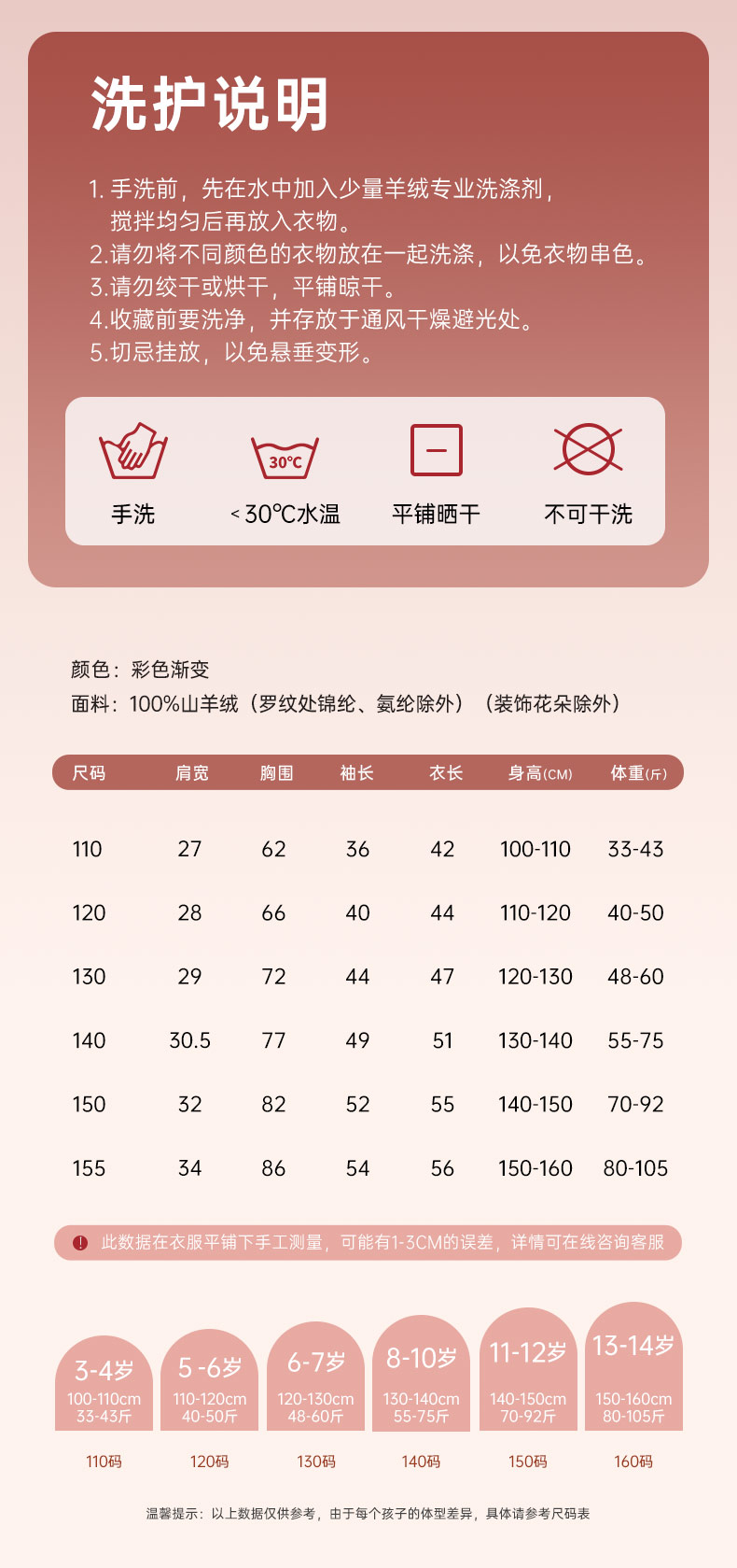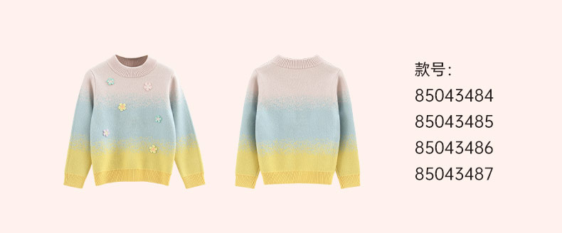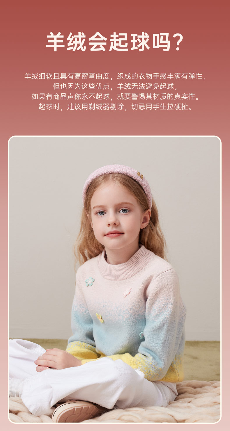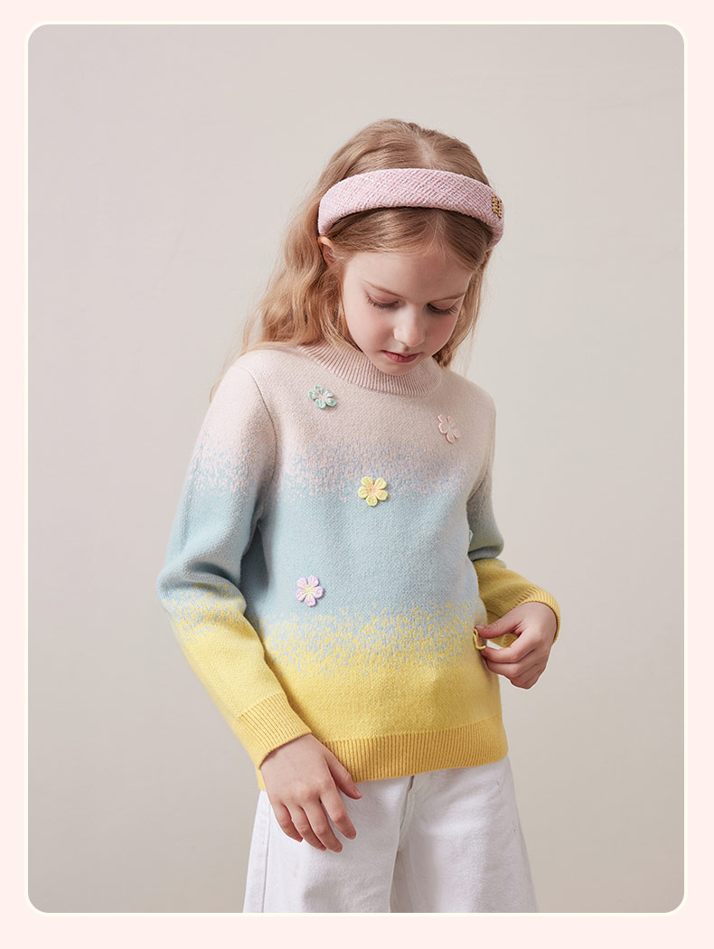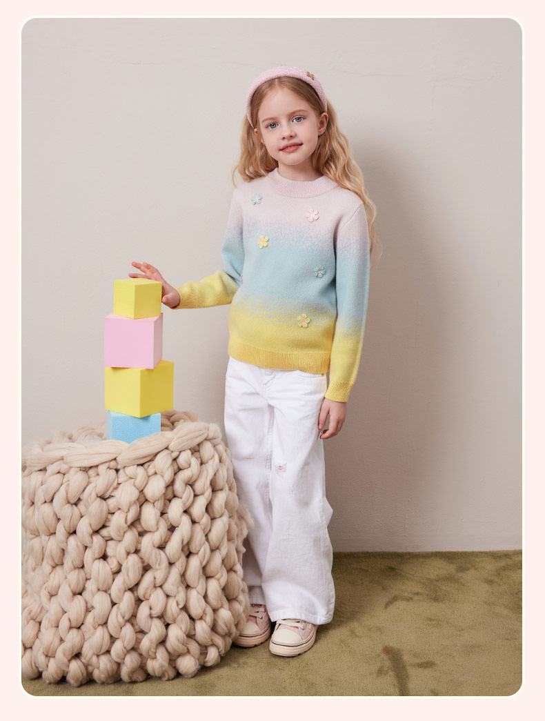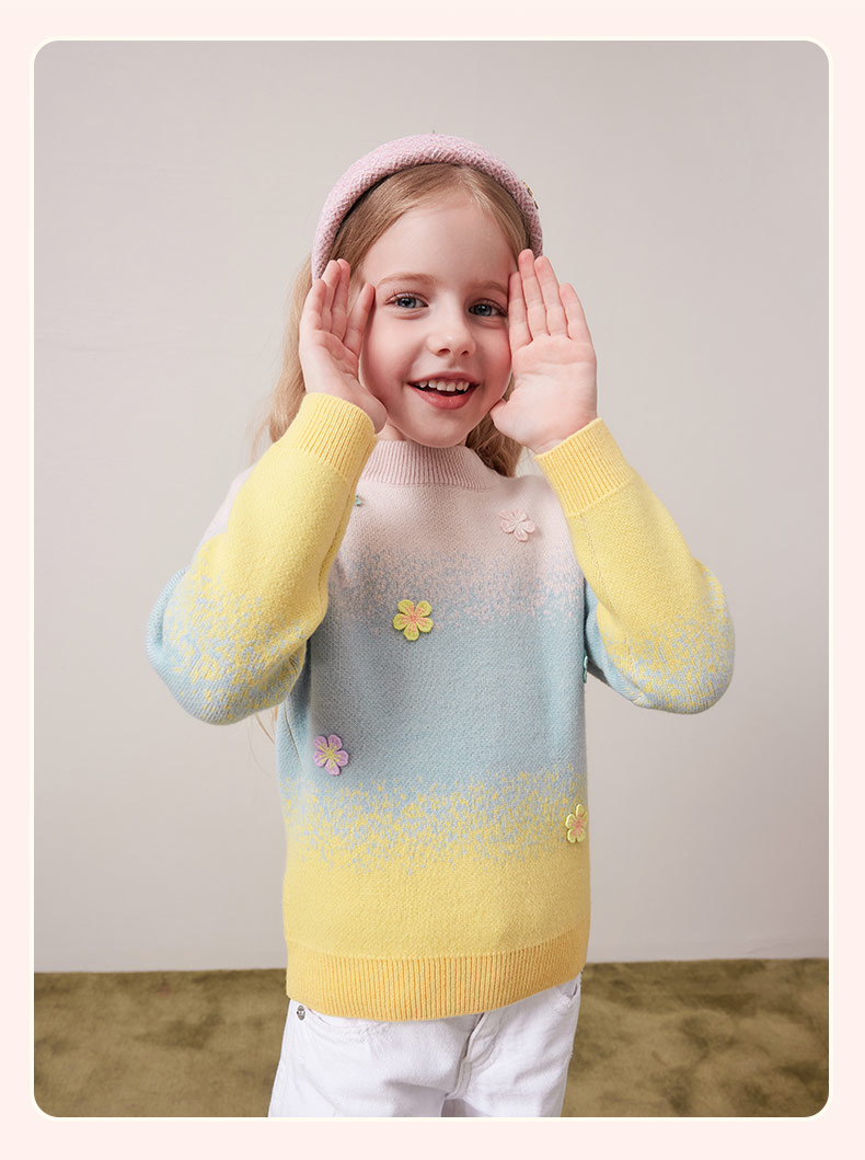 mettekids儿童100%羊绒衫2024秋冬新款女童彩色渐变套头针织毛衣