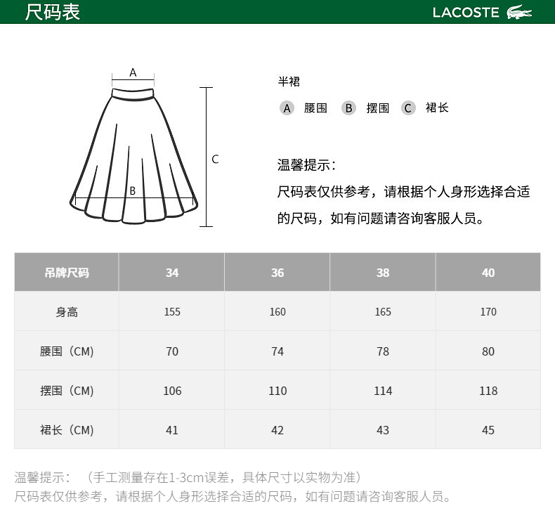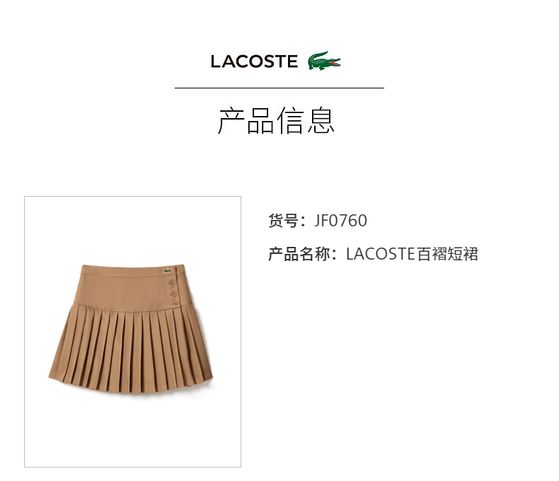 【海南专供价】Lacoste法国鳄鱼女装新款时尚纽扣设计百褶裙短裙JF0760-98