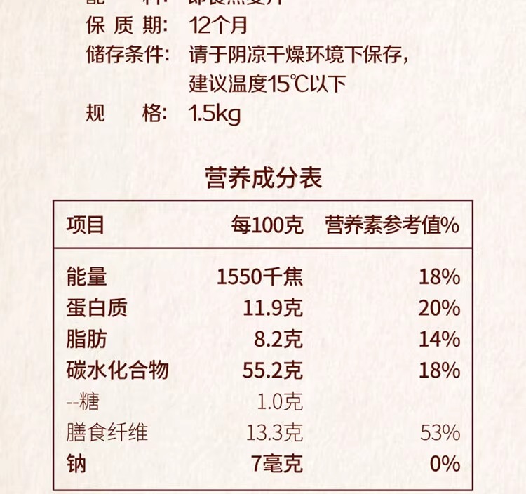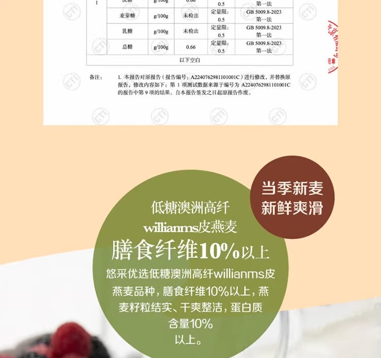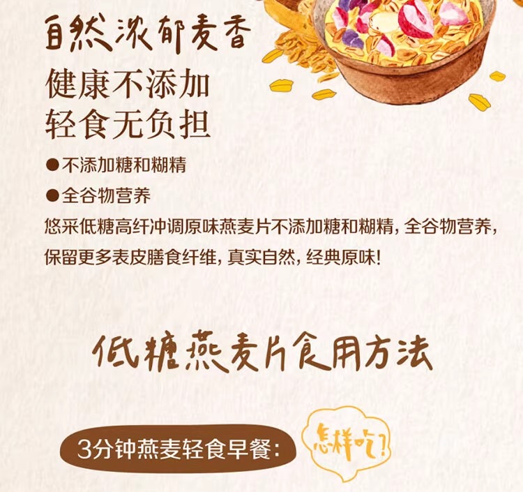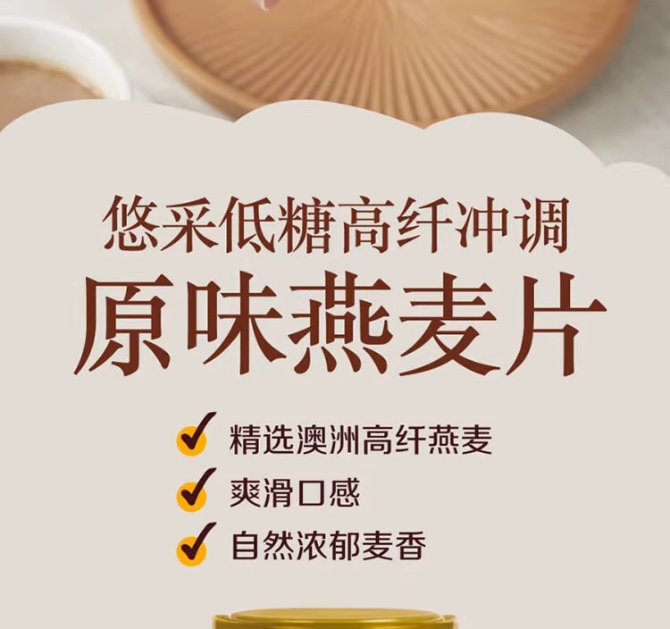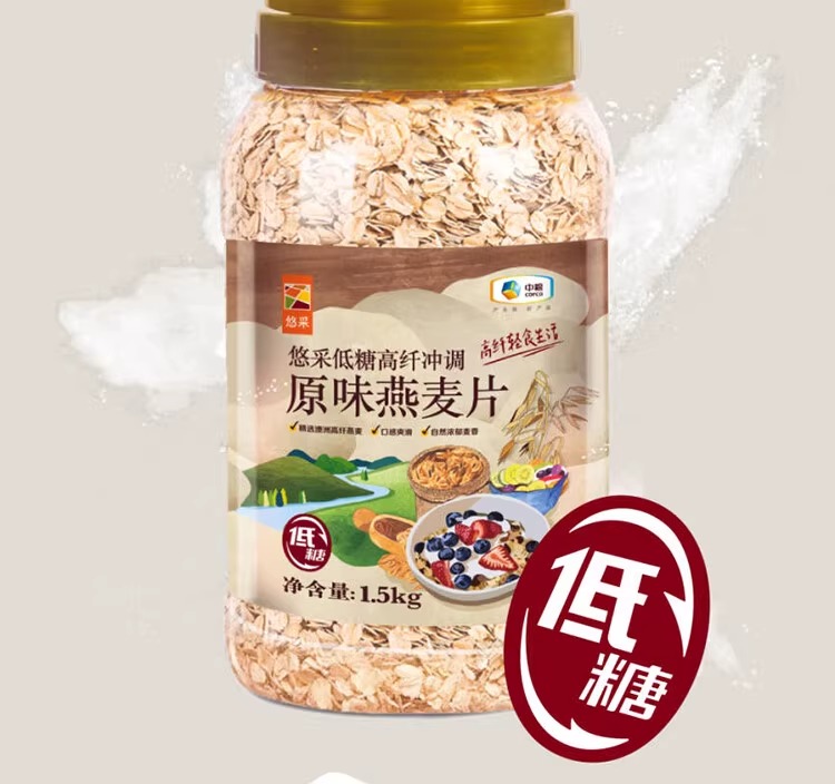 中粮悠采(低糖款)高纤冲调原味即食燕麦片1.5kg/罐