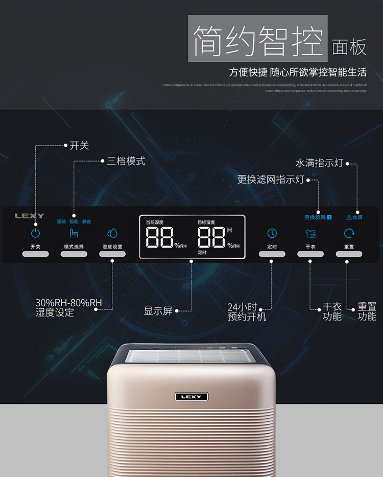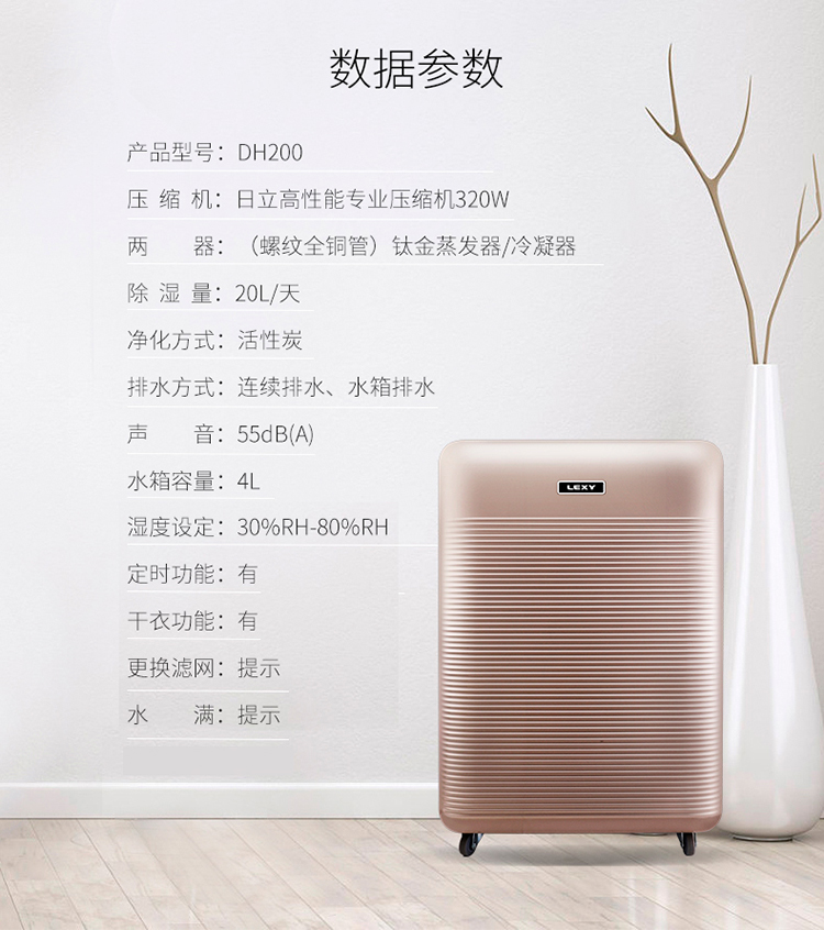 莱克(LEXY)除湿机 DH200 家用大风量净化型地下室除潮吸湿抽湿机干衣机