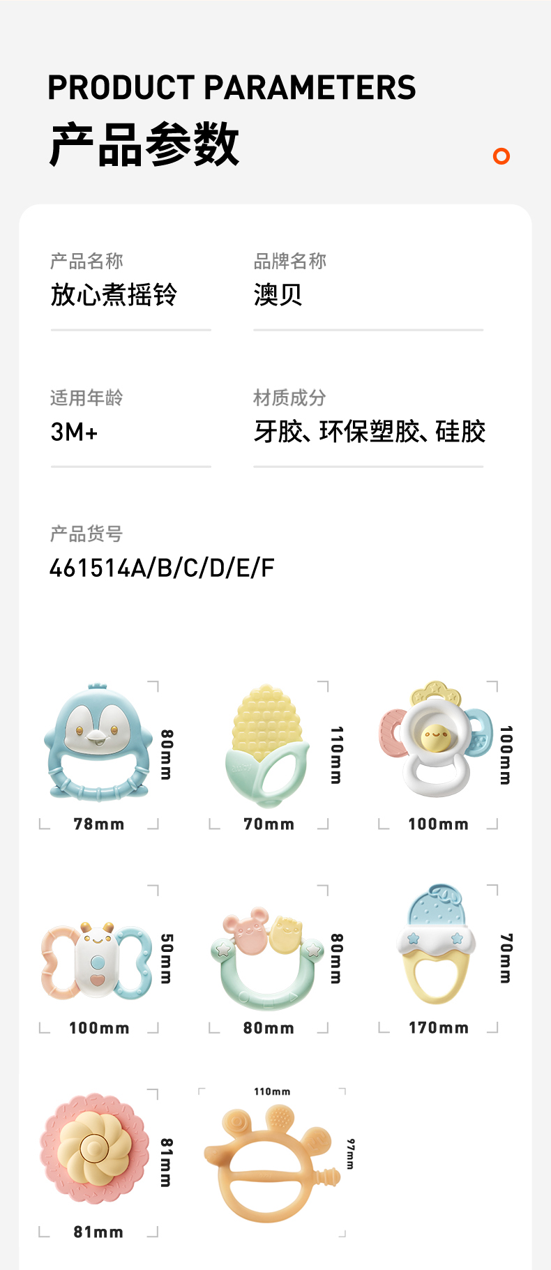 澳贝牙胶摇铃5件套收纳装461514F
