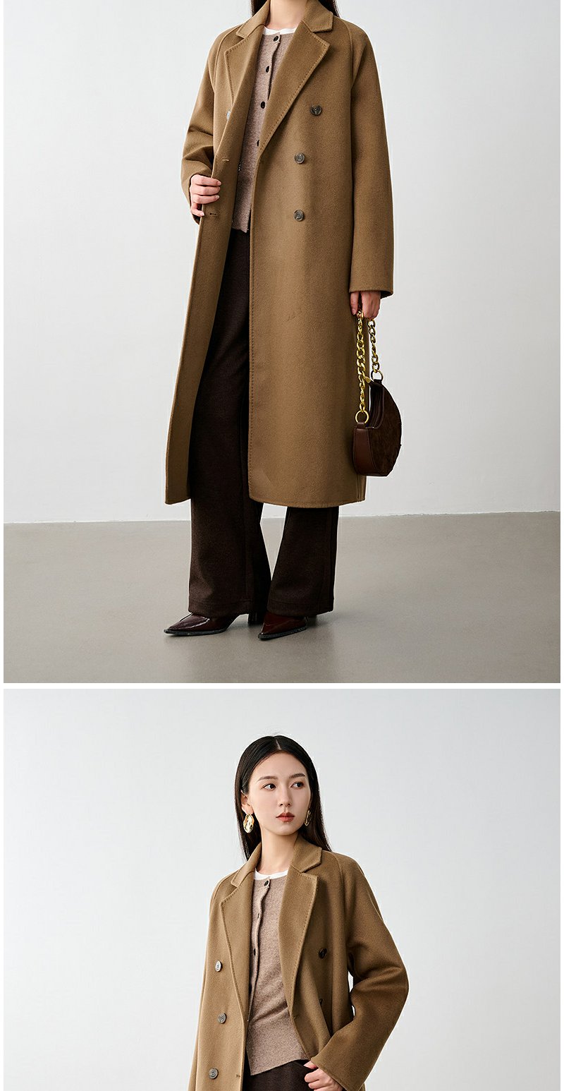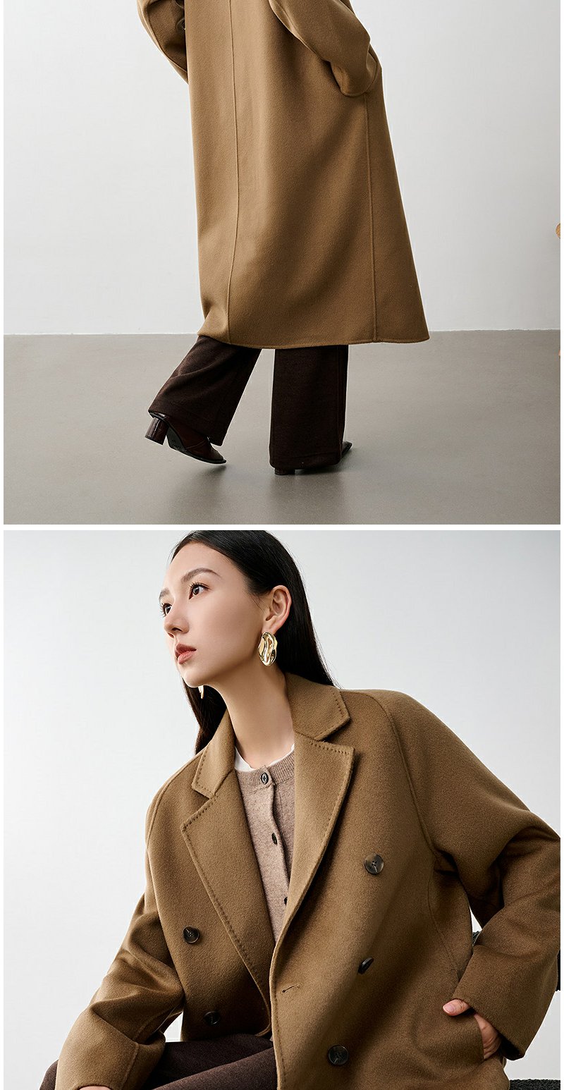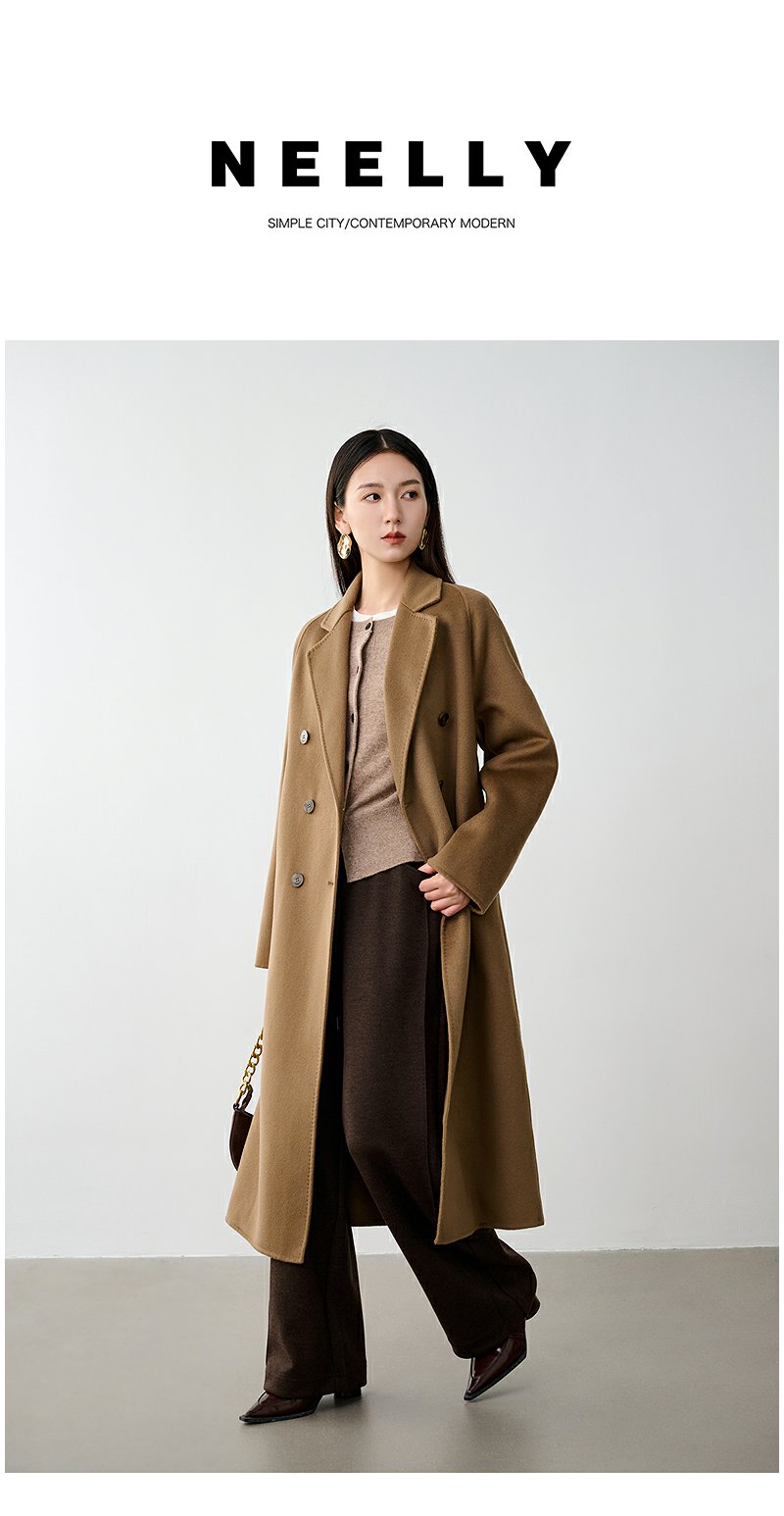 NEELLY纳俪商场同款冬季新款西装领双面呢大衣女长款宽松保暖外套N24104N03303