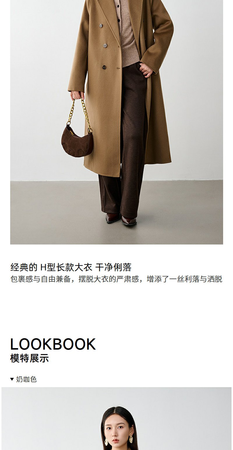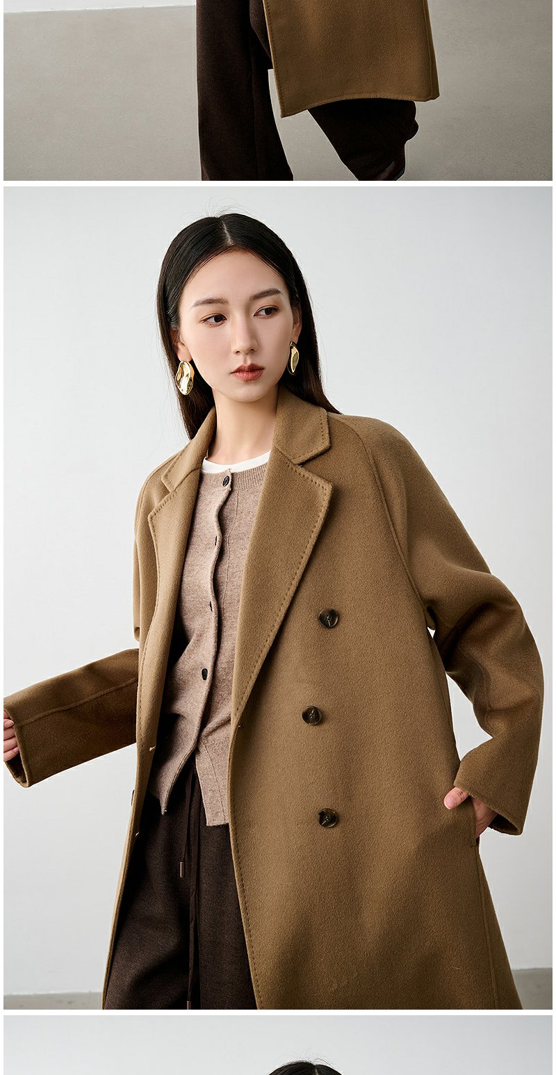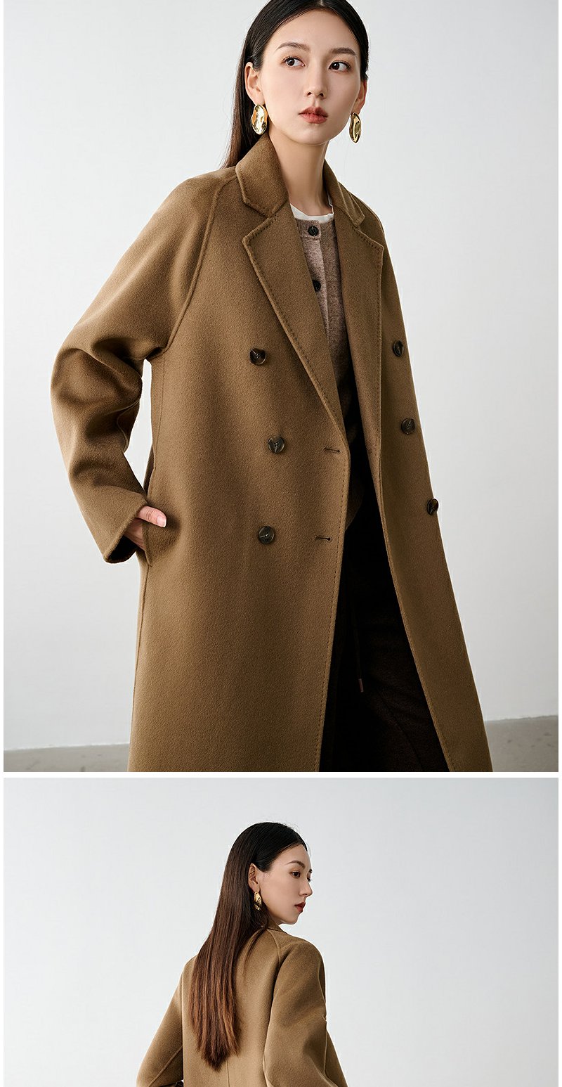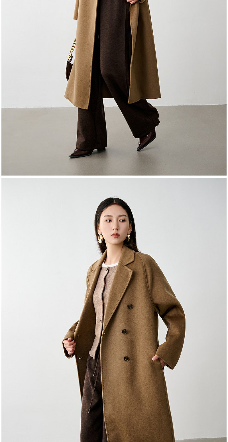 NEELLY纳俪商场同款冬季新款西装领双面呢大衣女长款宽松保暖外套N24104N03303