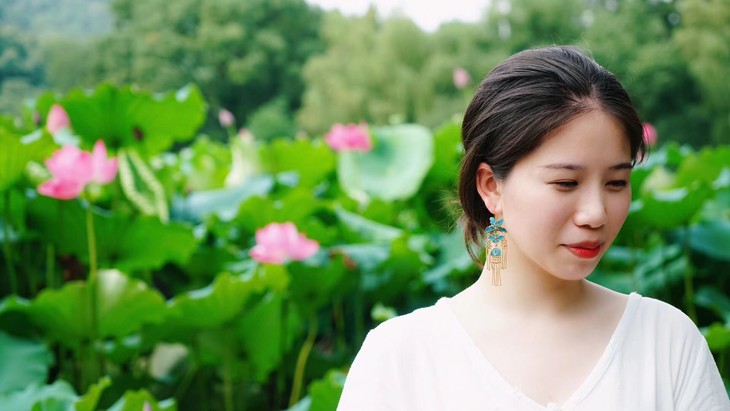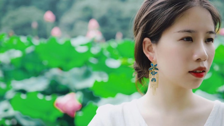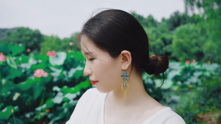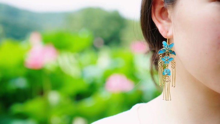 看耳环看点翠除了看毛色,还要看胎底和整体形状,做得怎么样。太多新式的点翠设计,非常僵硬没有生气。灵动美的感觉不是谁都做得出来。