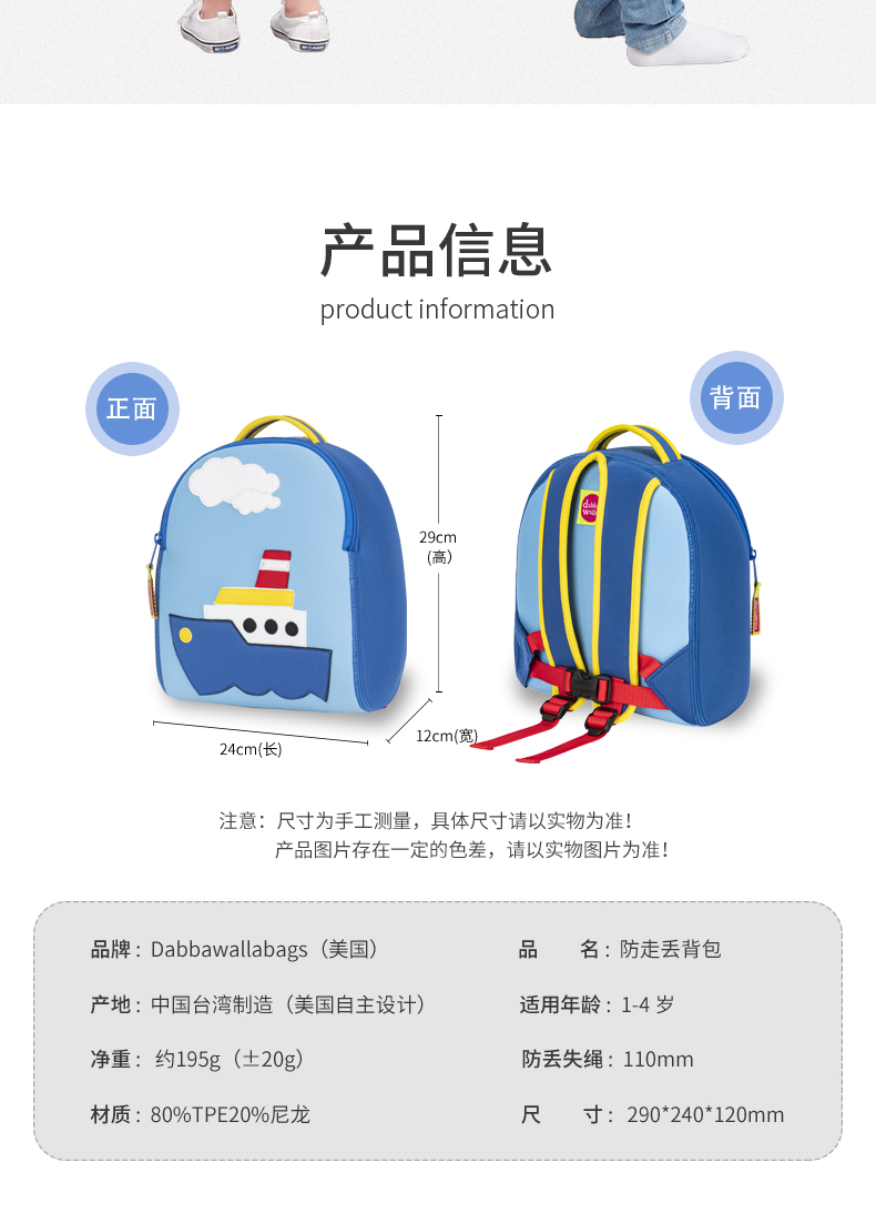 美国dabbawalla瓦拉包1-4岁双肩幼儿防走失包