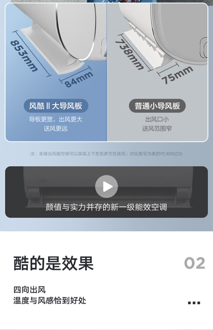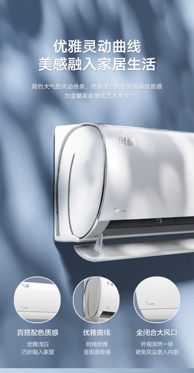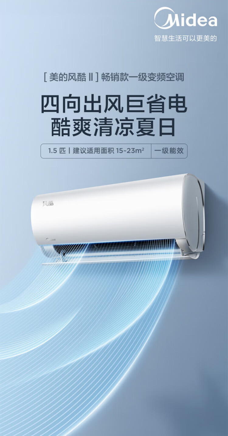 美的(Midea)空调大1.5匹_1p新一级能效风酷二代省电变频壁挂式冷暖两用卧室挂机N8XHC1Ⅱ_大1匹_一级能效_-风酷二代_新一级变频更省电