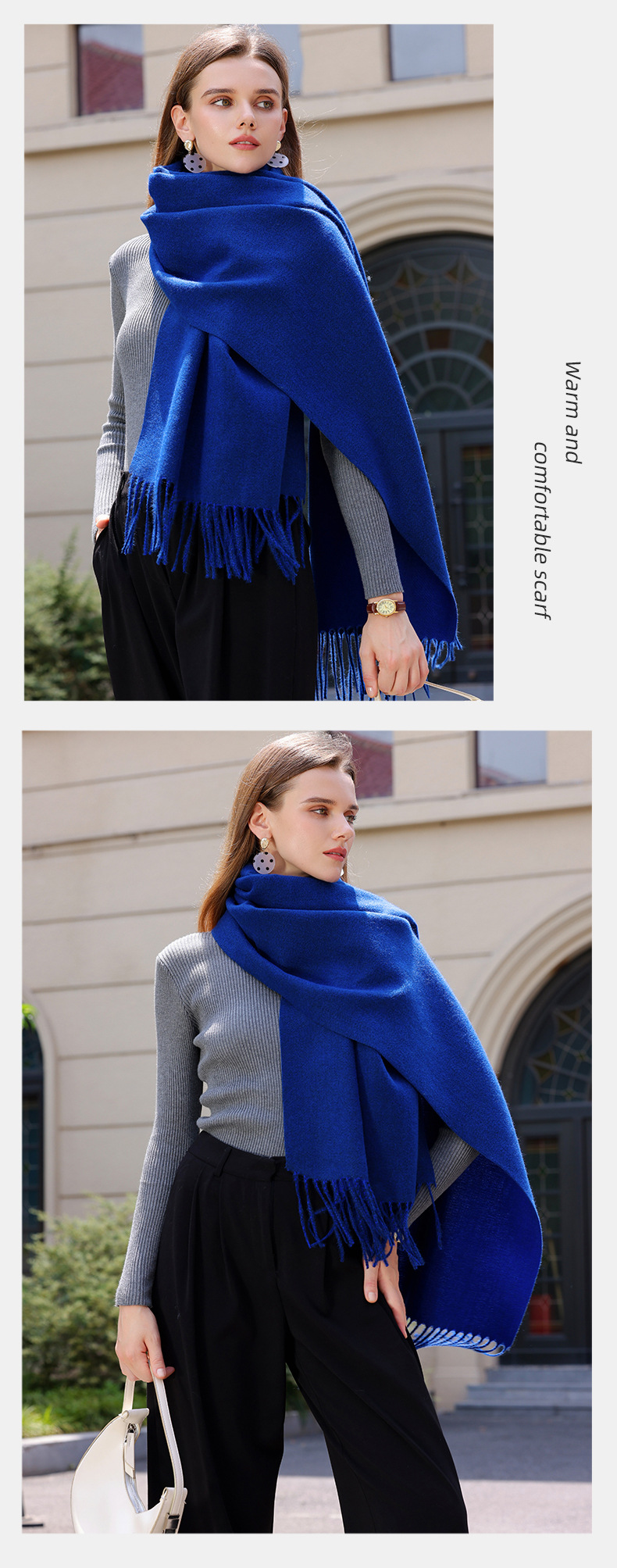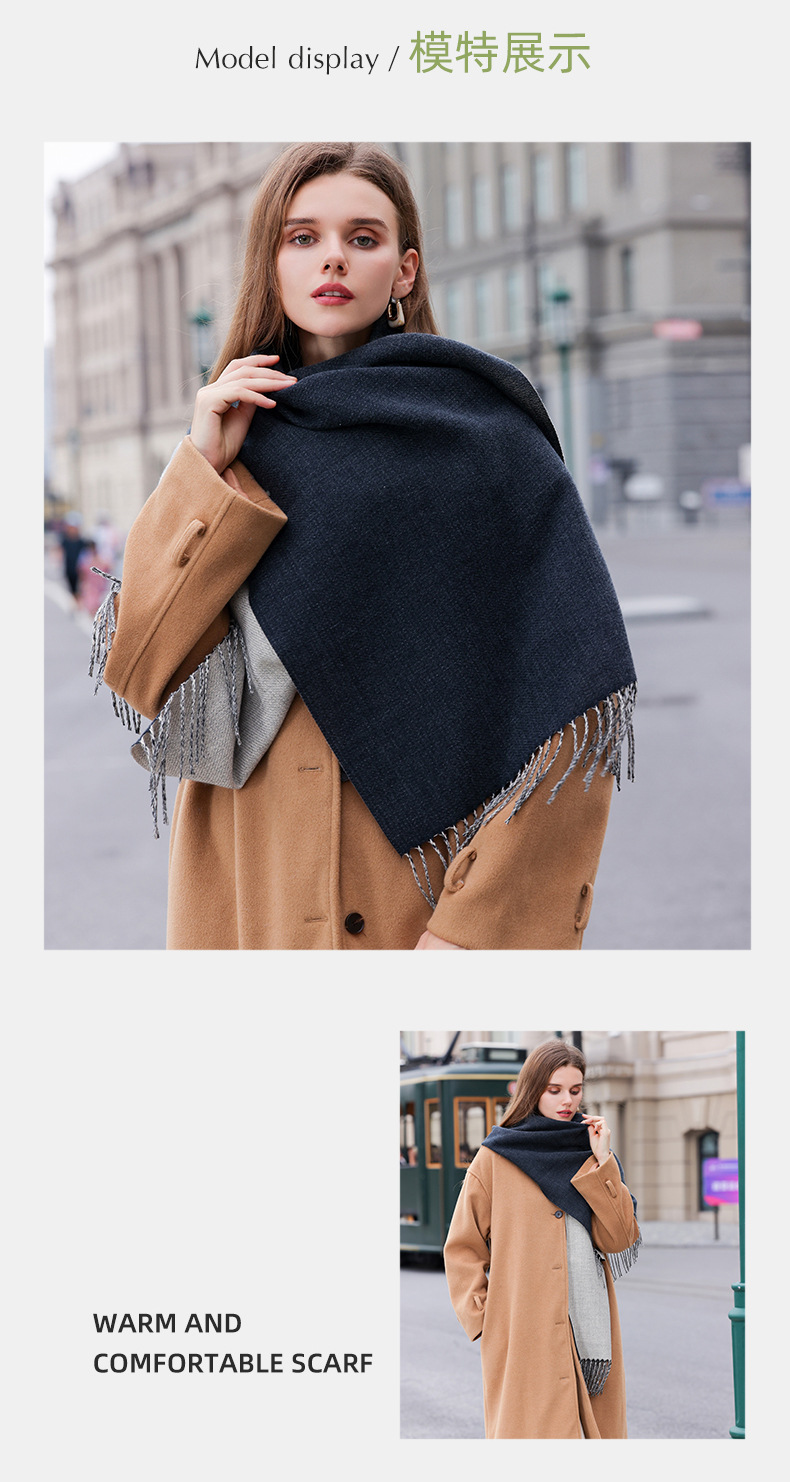 抢79两条!【MUYANHUAN 木言欢双面单色仿羊绒围巾/双F格子围巾】保暖流苏亲肤可做围巾/披肩/暖毯