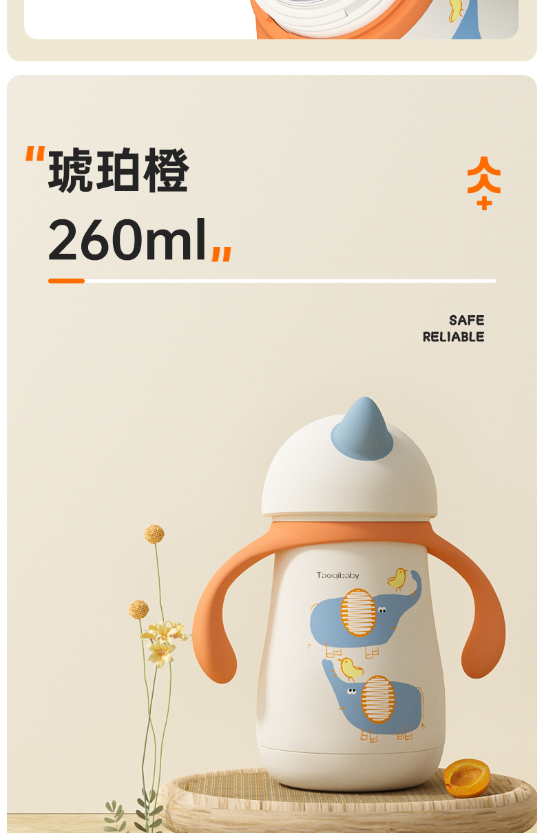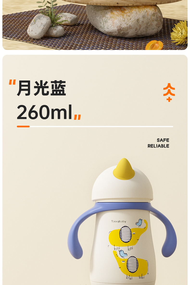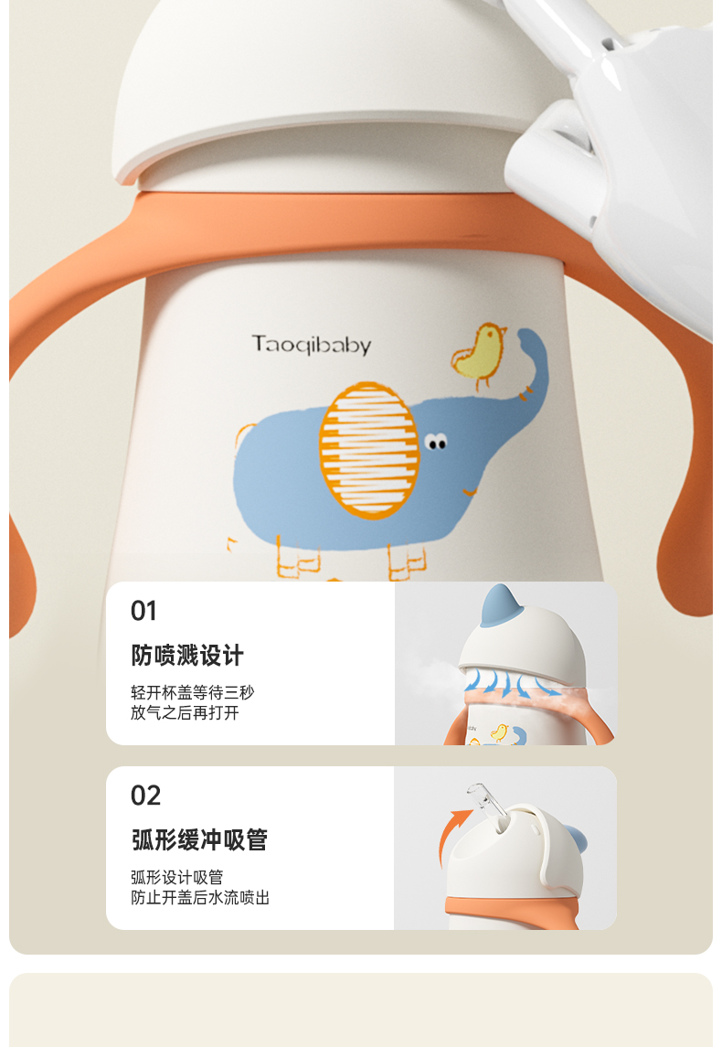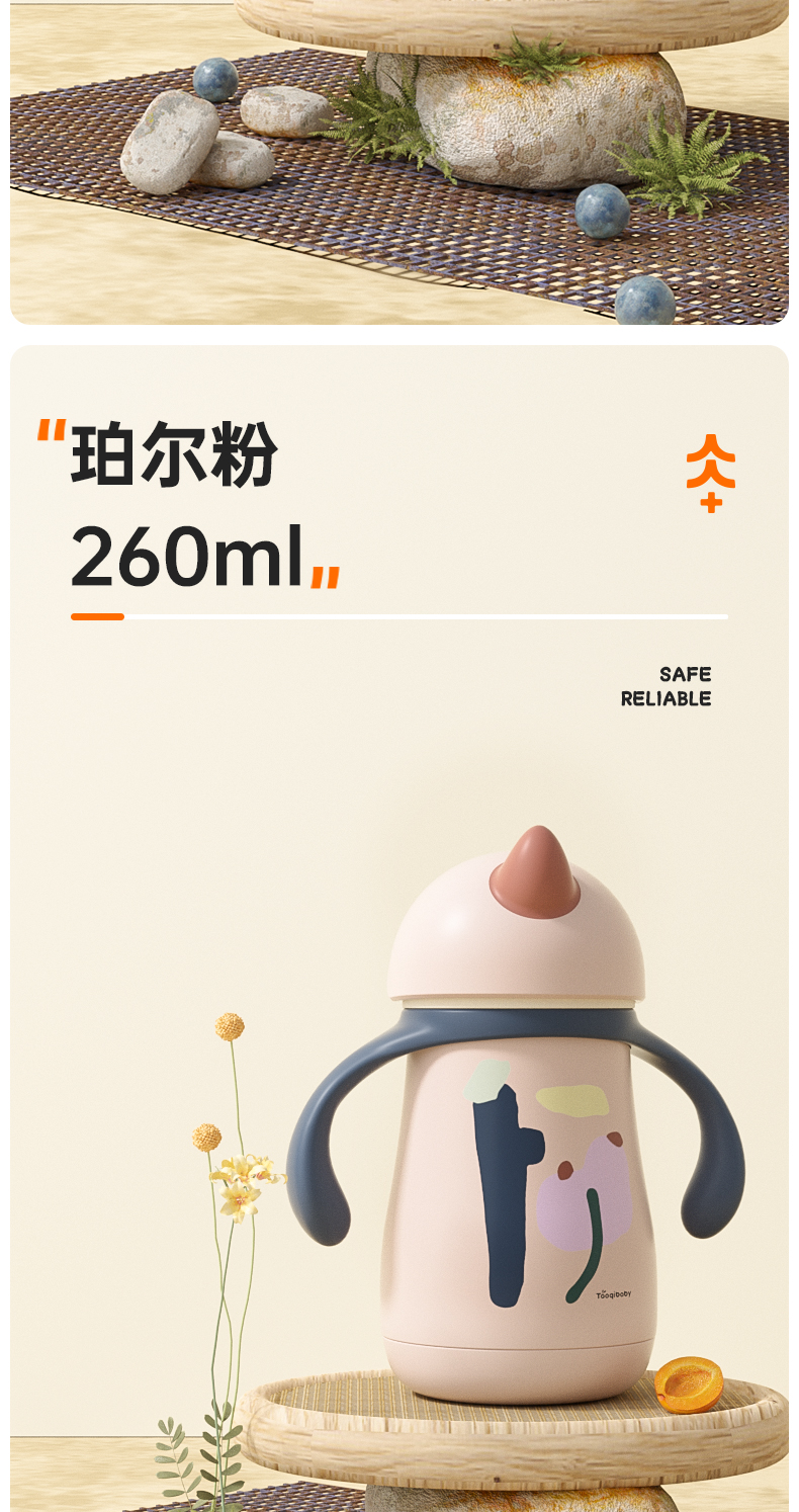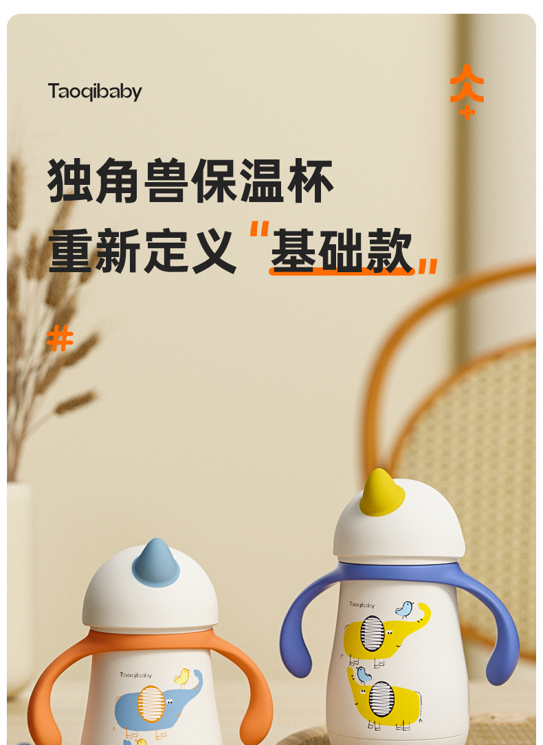 taoqibaby婴幼儿独角兽保温杯吸管宝宝鸭嘴杯儿童学饮杯直饮水杯小月龄