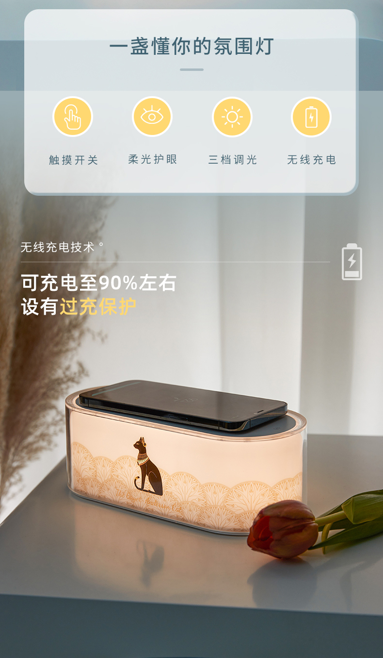 大英博物馆盖亚·安德森猫系列 时尚潮流无线便携充电器 氛围灯摆件