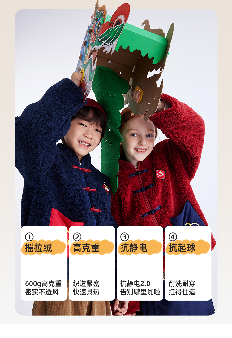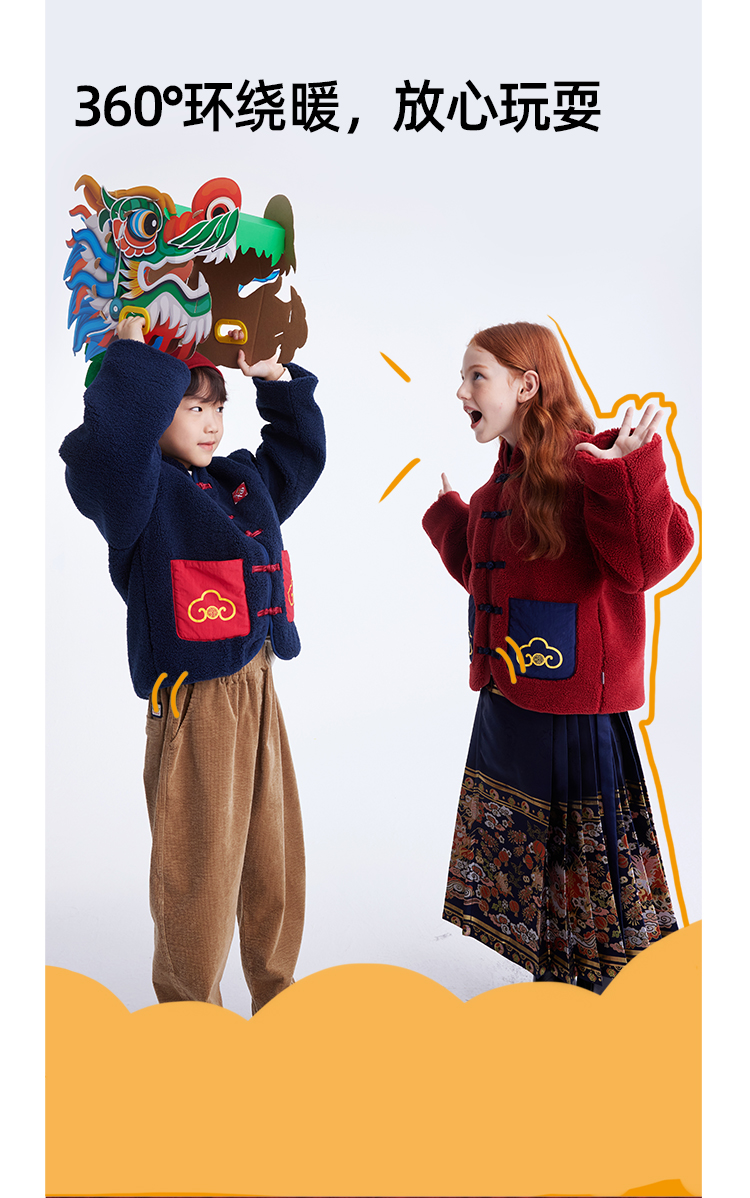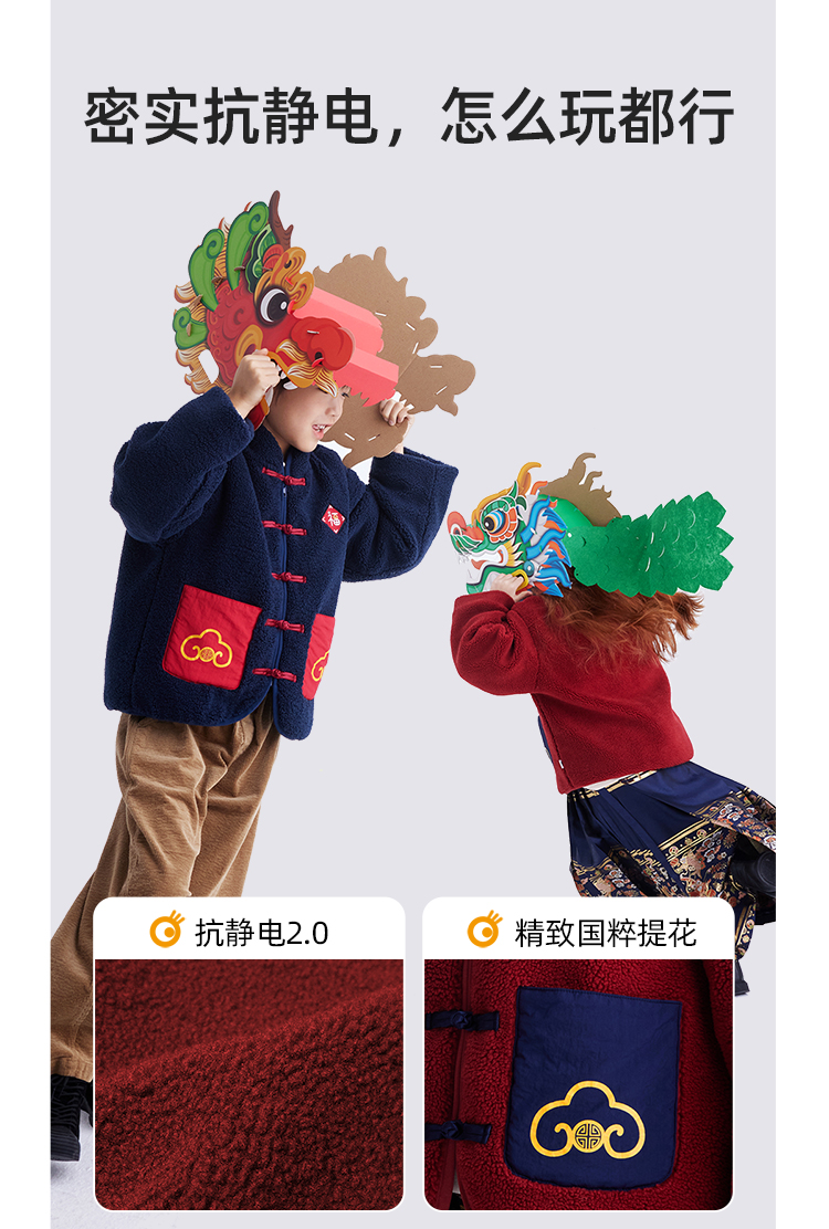 【品牌优选】儿童国潮盘扣加厚夹棉摇粒绒外套 PDWT2453