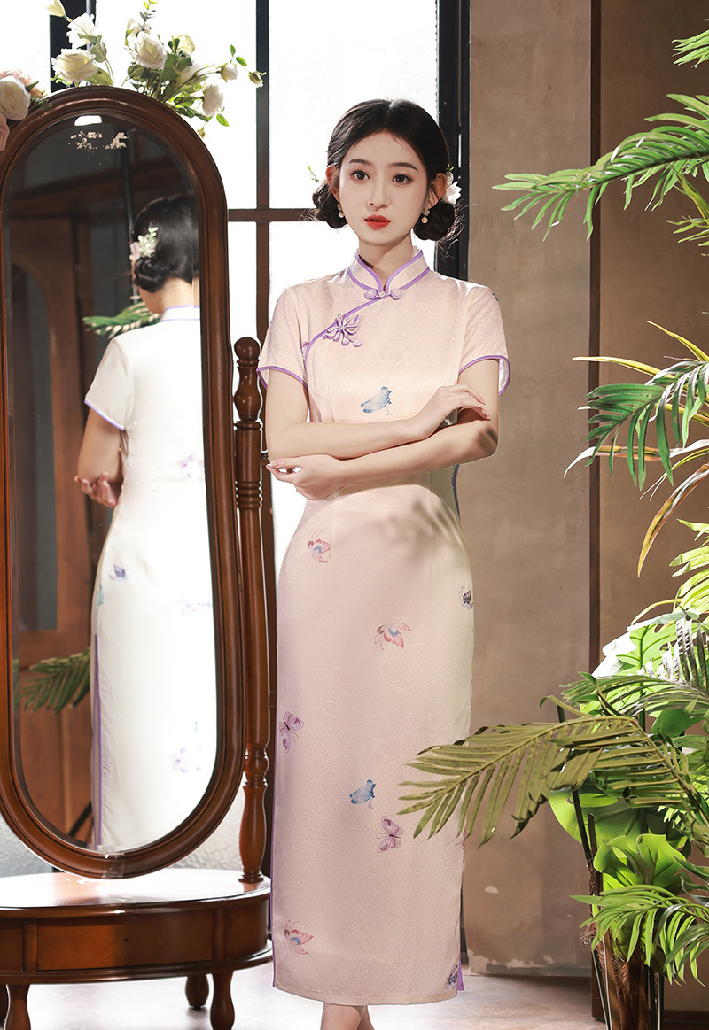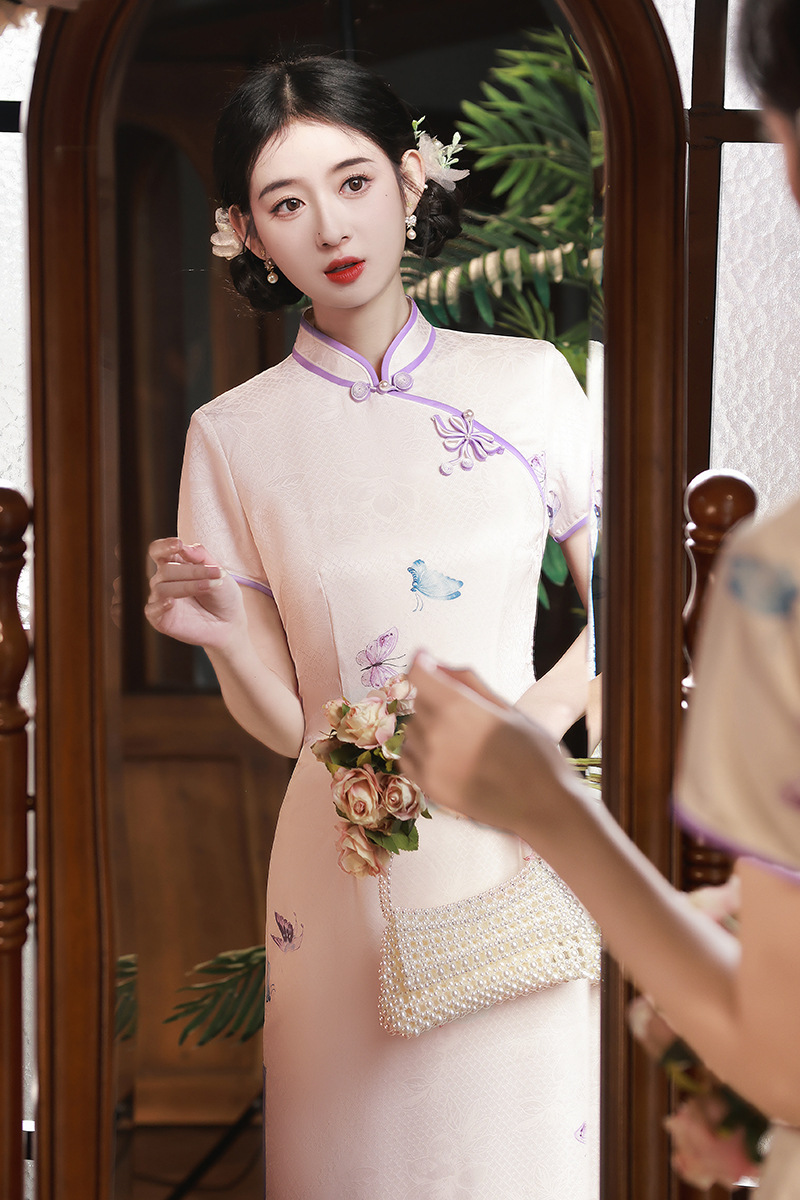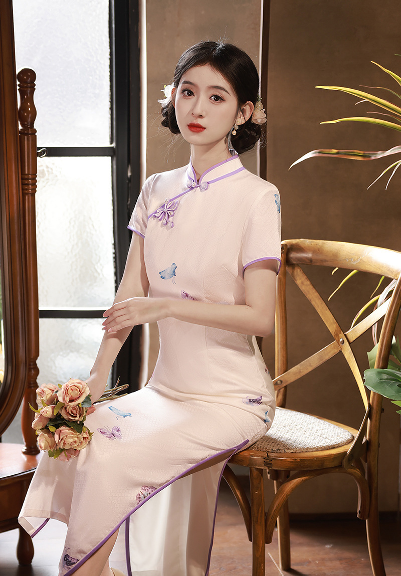 春夏新款,改良旗袍长款修身日常蝴蝶国风文艺连衣裙女装XL-24110