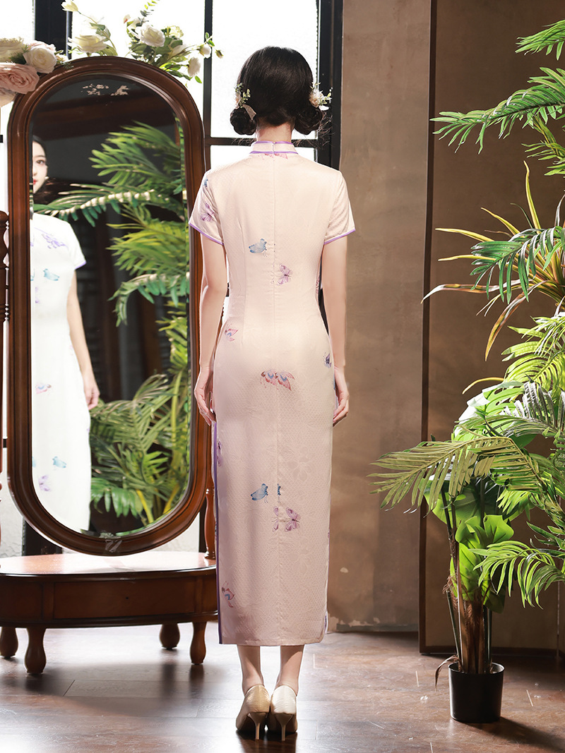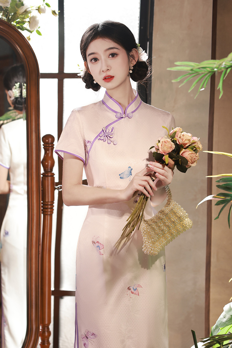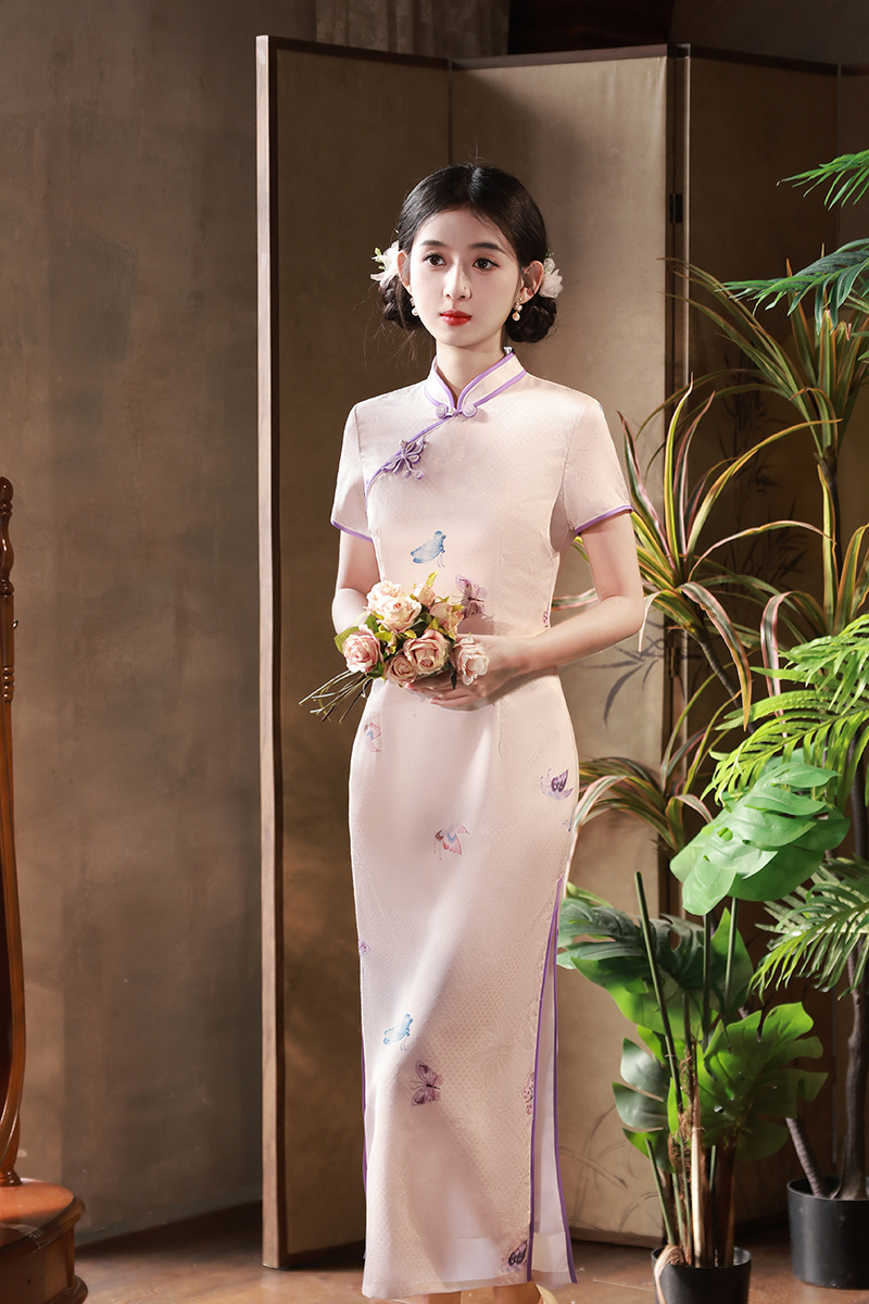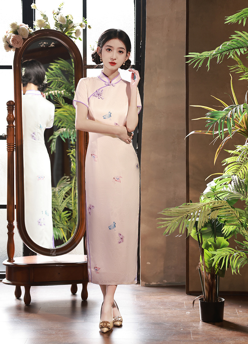 春夏新款,改良旗袍长款修身日常蝴蝶国风文艺连衣裙女装XL-24110