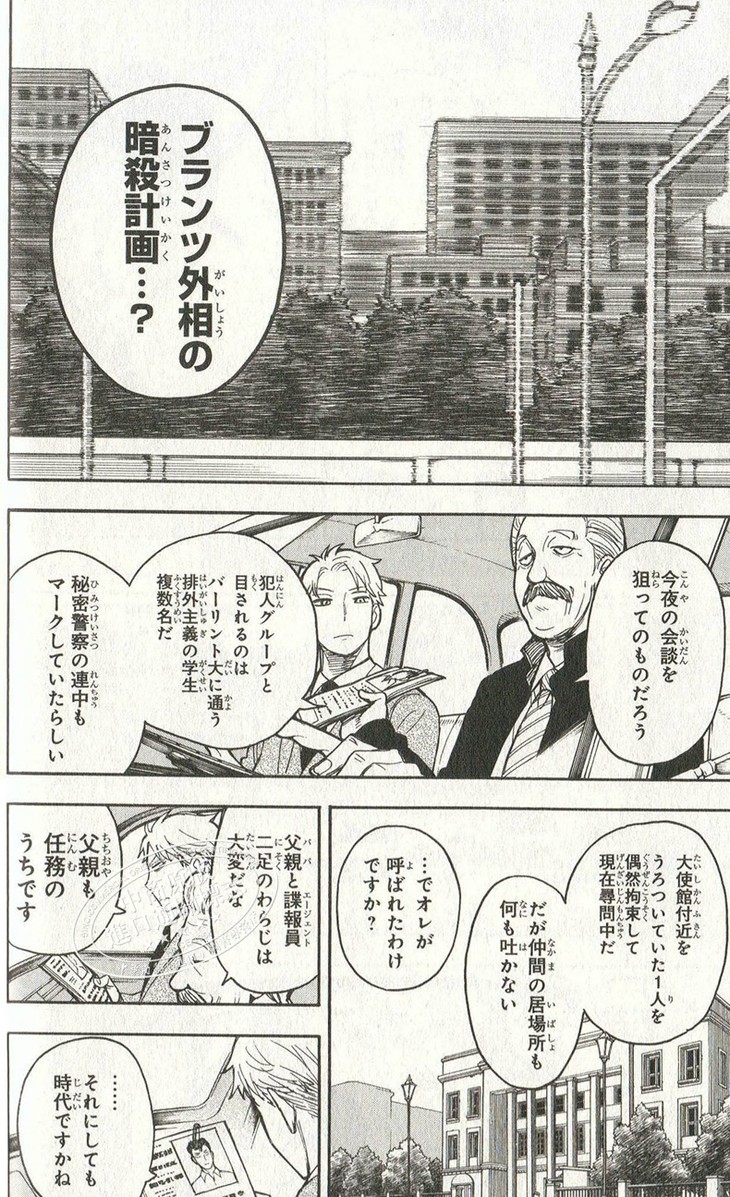 爆弾犬を使っての西国大臣暗殺計画が判明! アーニャの飼う犬を求め家族で出かけたはずが、黄昏は、テロを止める緊急作戦に加わることに…!! 一方アーニャは、何故かフォージャー家を知る不思議な犬と出会い──!?