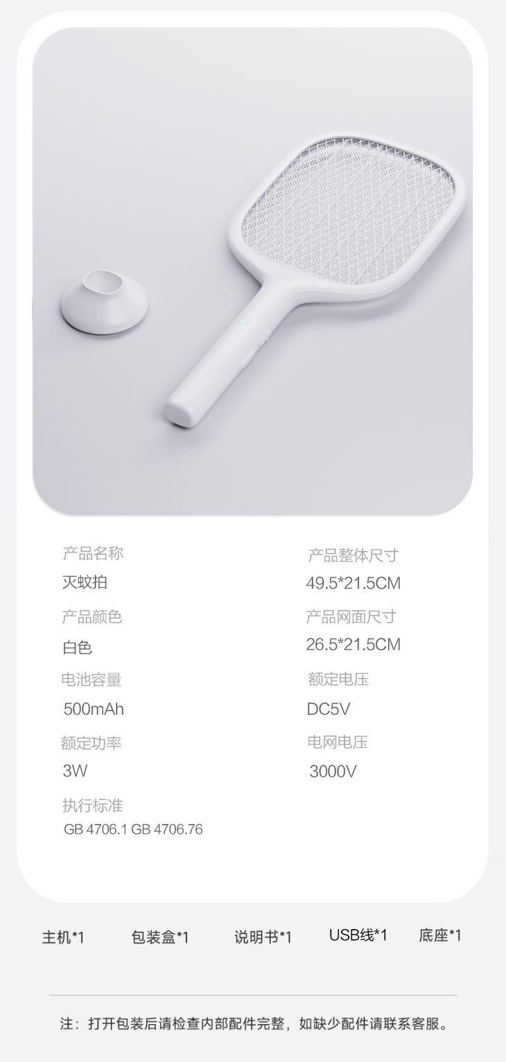 🙌芭菲电蚊拍215不仅灭蚊能力强,而且外观设计也很简约时尚,白色的机身,看起来干净整洁,放在家里也不会显得突兀🤗。 机身材质方面,芭菲电蚊拍表面采用了PC阻燃材料,同时还达到了国家国标标准,抗摔耐磨,安全耐高温💪