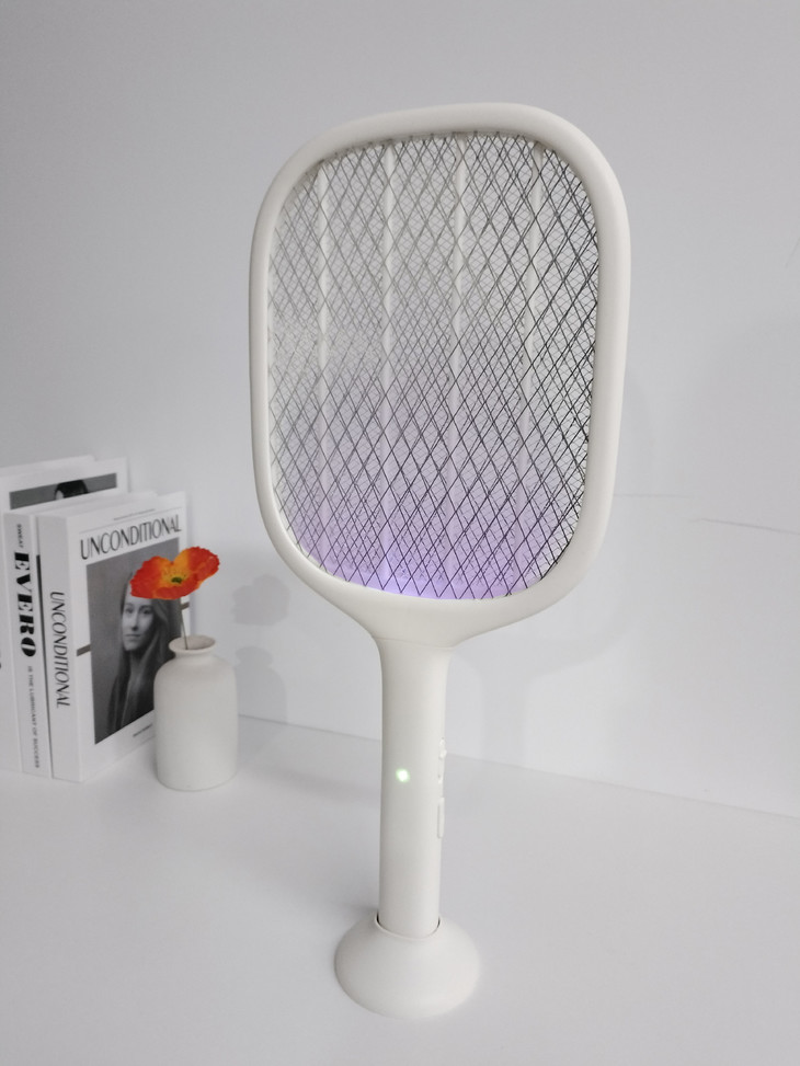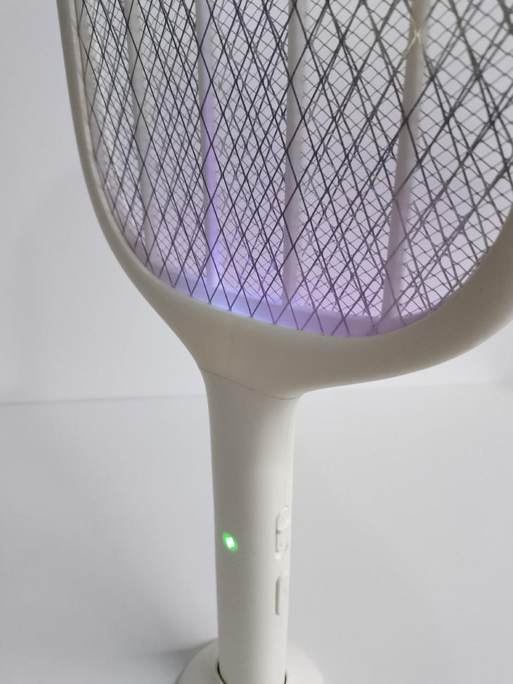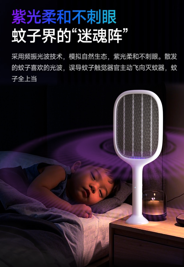 💜- 紫光诱蚊、灭蚊-🟣 不仅仅是一个电蚊拍,还是一个物理灭蚊灯🟪 在诱蚊灯的加持下不想主动出击打蚊子的时候, 就可以把电蚊拍放置在底座上面当一个灭蚊灯使用。 (❗️注:这种光只对蚊虫有效,对人体是没有影响的。 无辐射,不刺眼,就跟小夜灯差不多❗️)