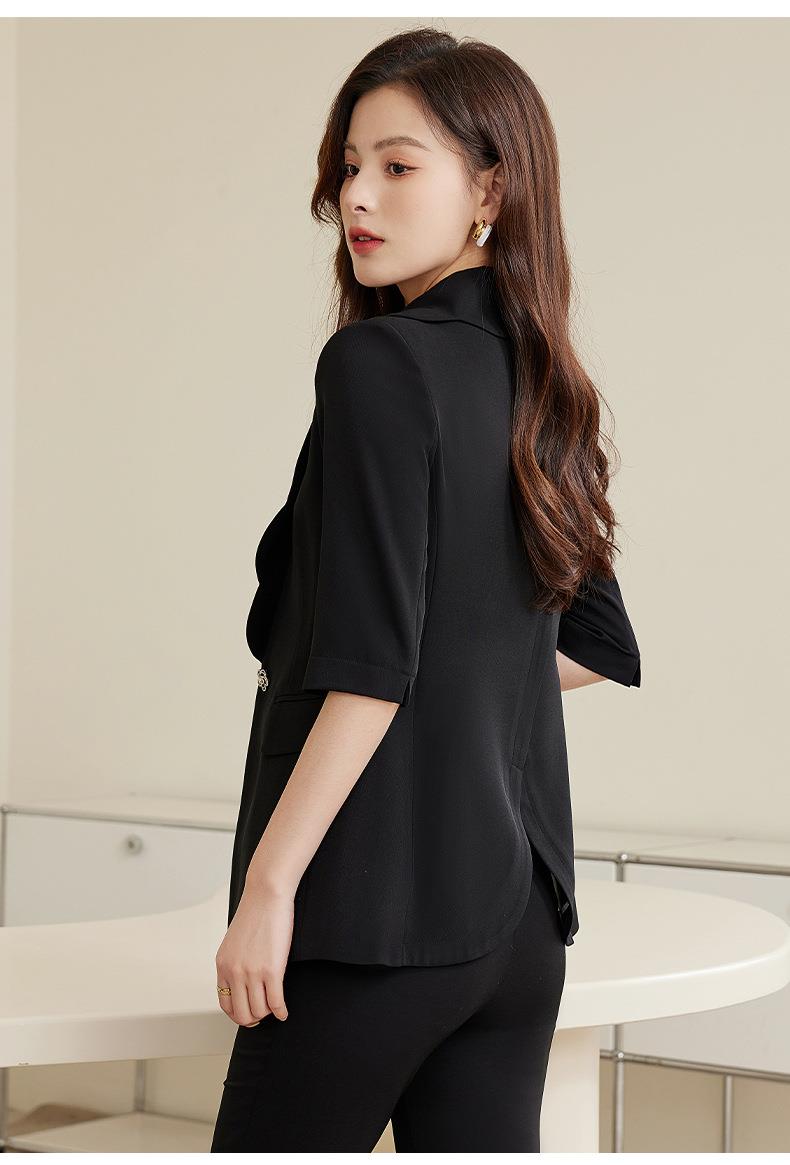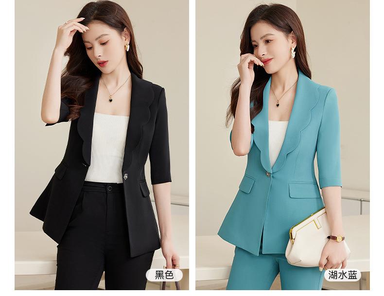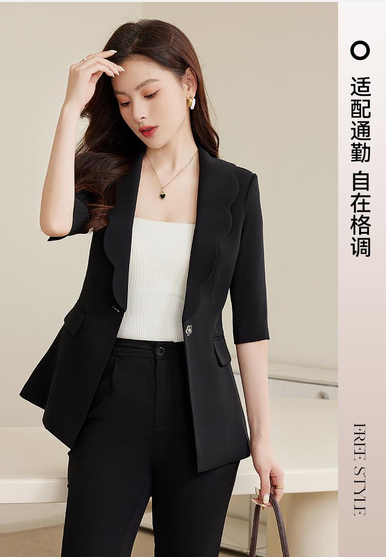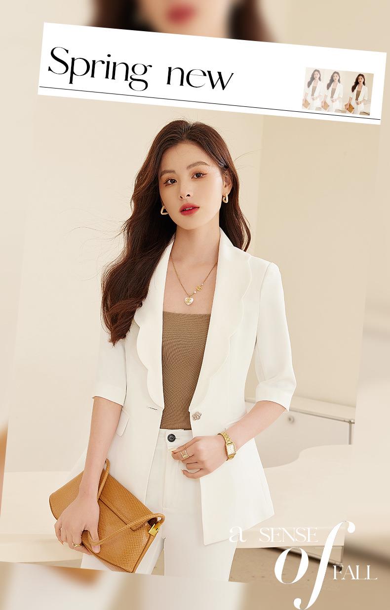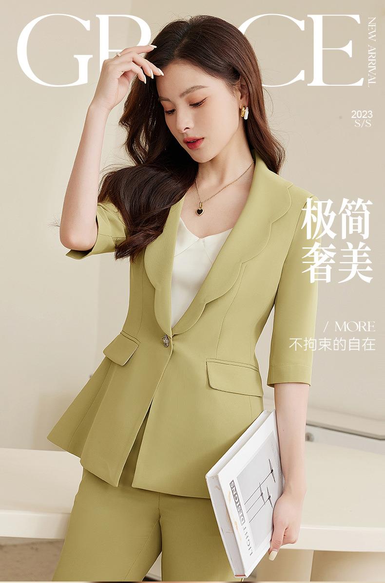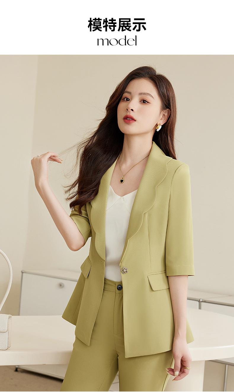 娜璐多 设计感后开叉五分袖薄款小西服套装女夏季2023气质OL两件套大气