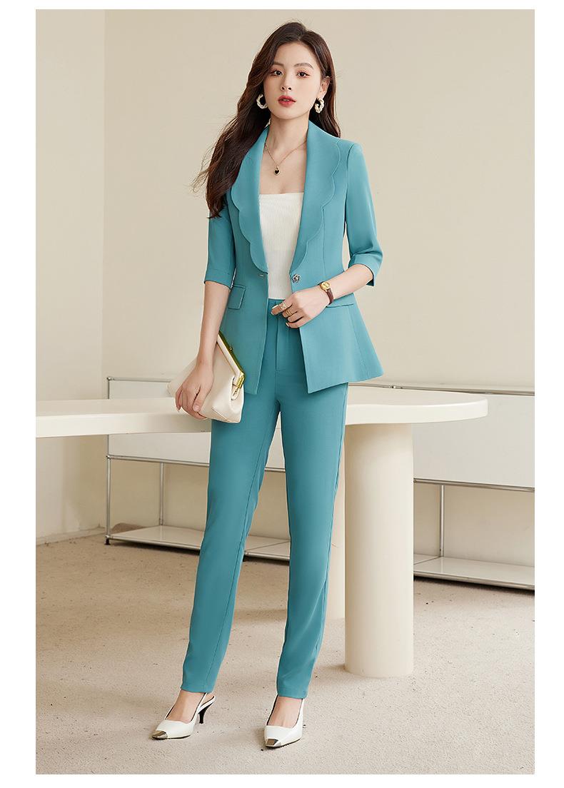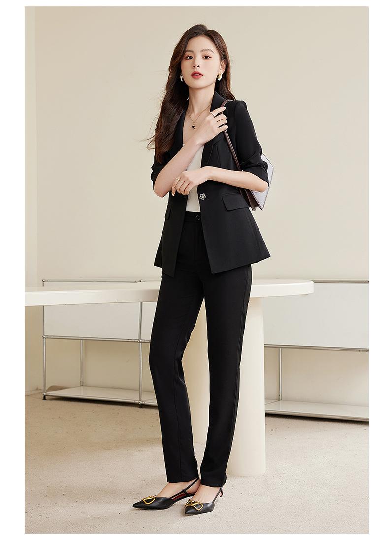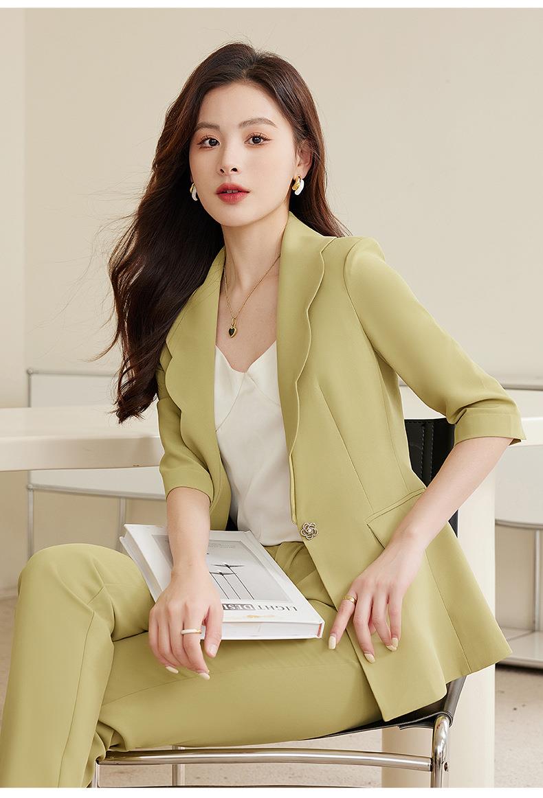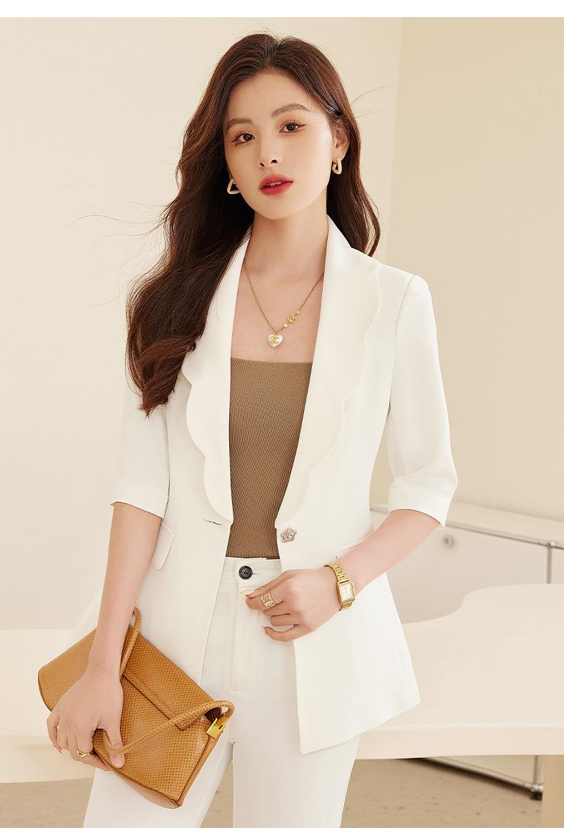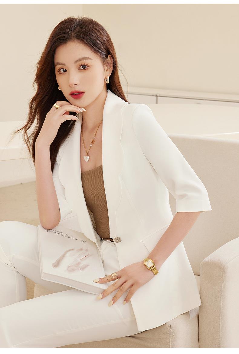 娜璐多 设计感后开叉五分袖薄款小西服套装女夏季2023气质OL两件套大气