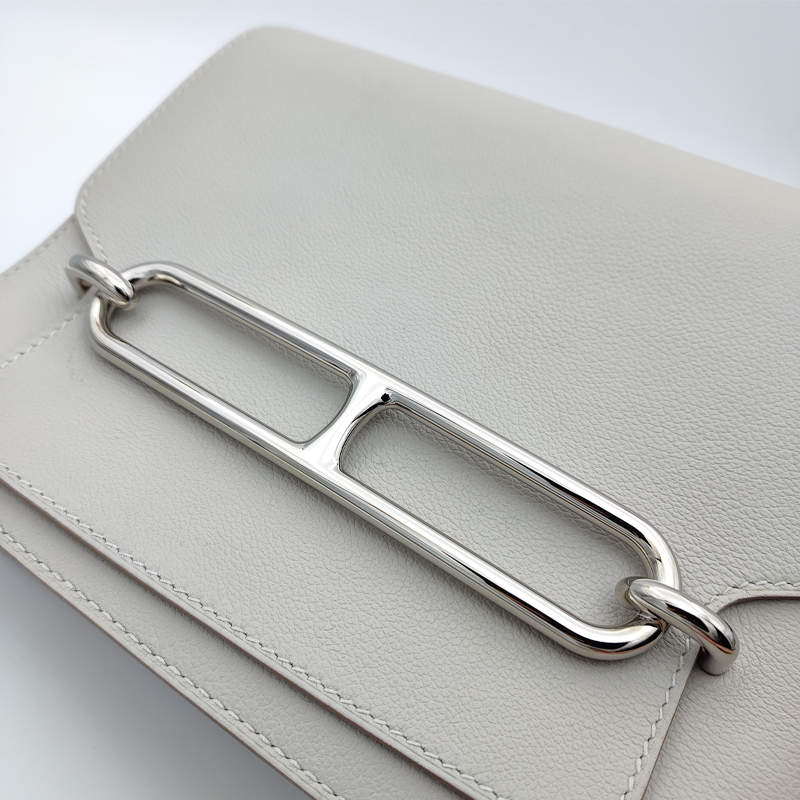 HERMES 爱马仕 Roulis 23 猪鼻子包 Evercolor小牛皮 银扣 单肩斜挎包 女款 80 Gris Perle珍珠灰 Z刻