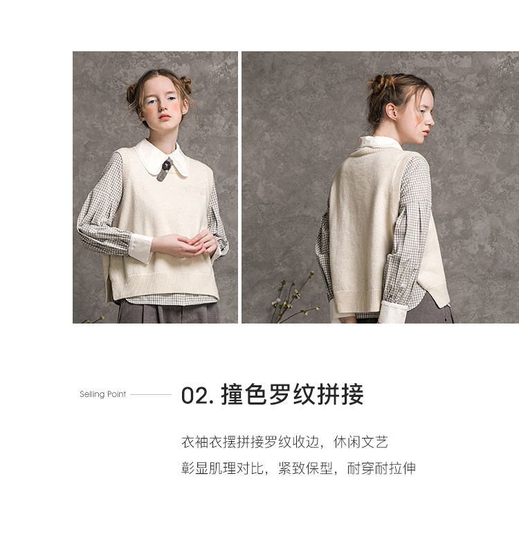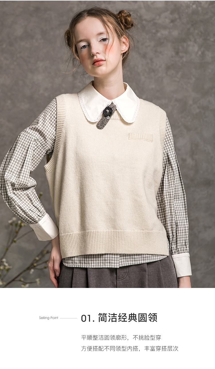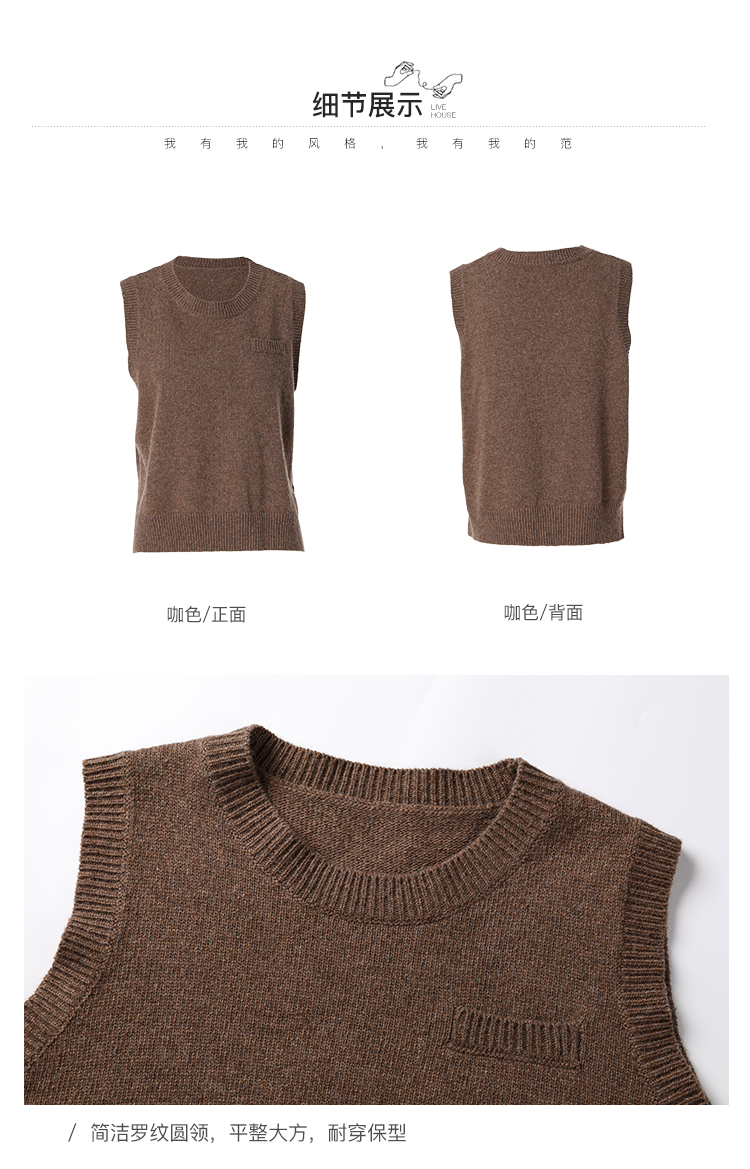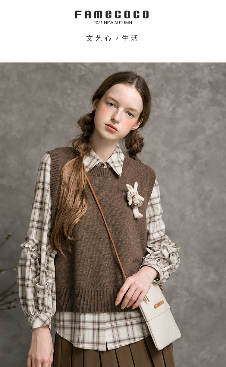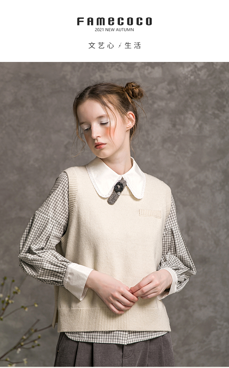 Famecoco范可儿短款针织马甲女秋季圆领羊毛小背心F216CA009