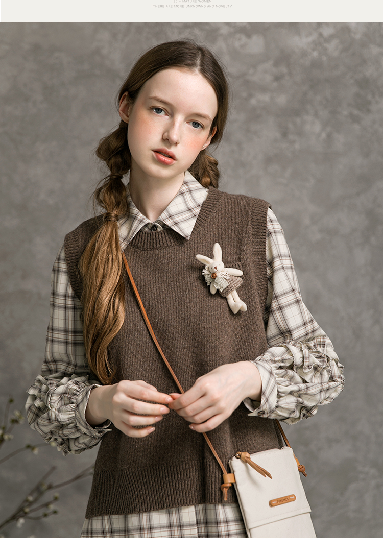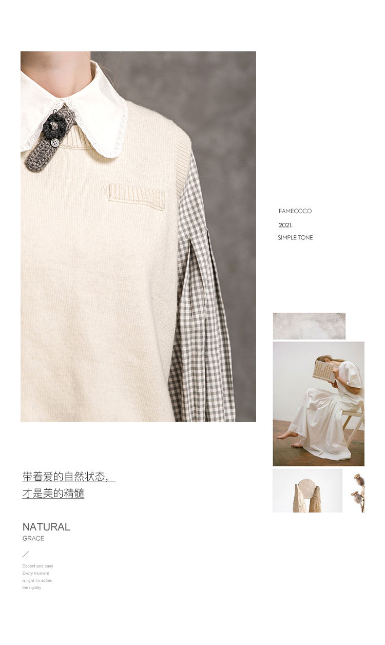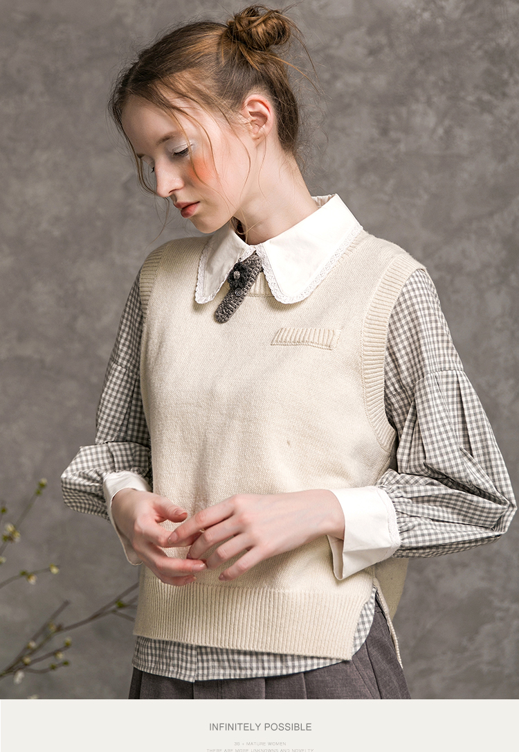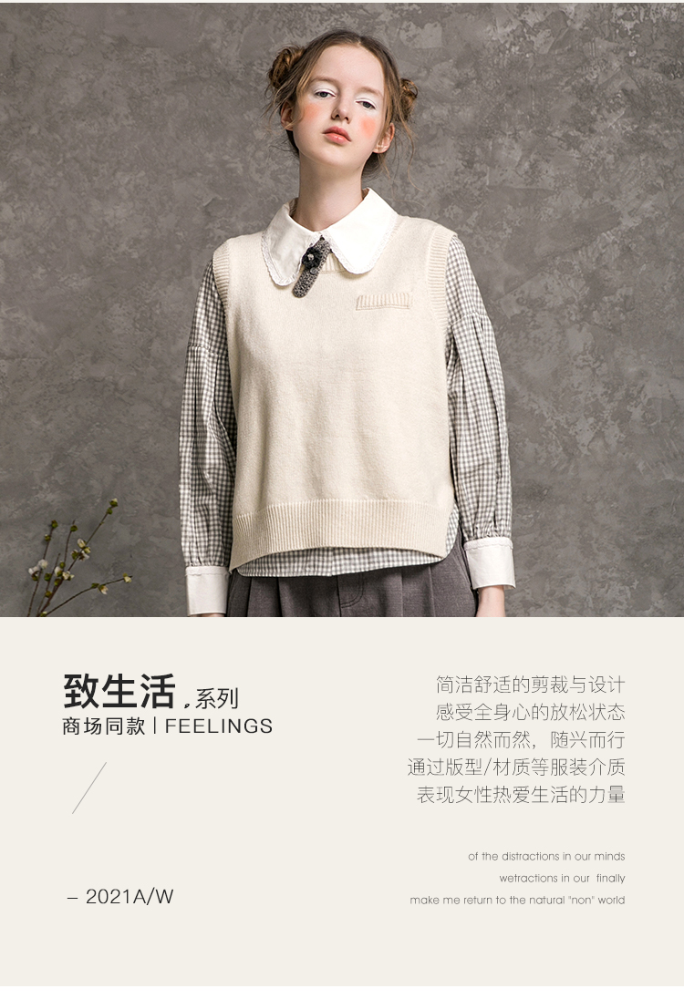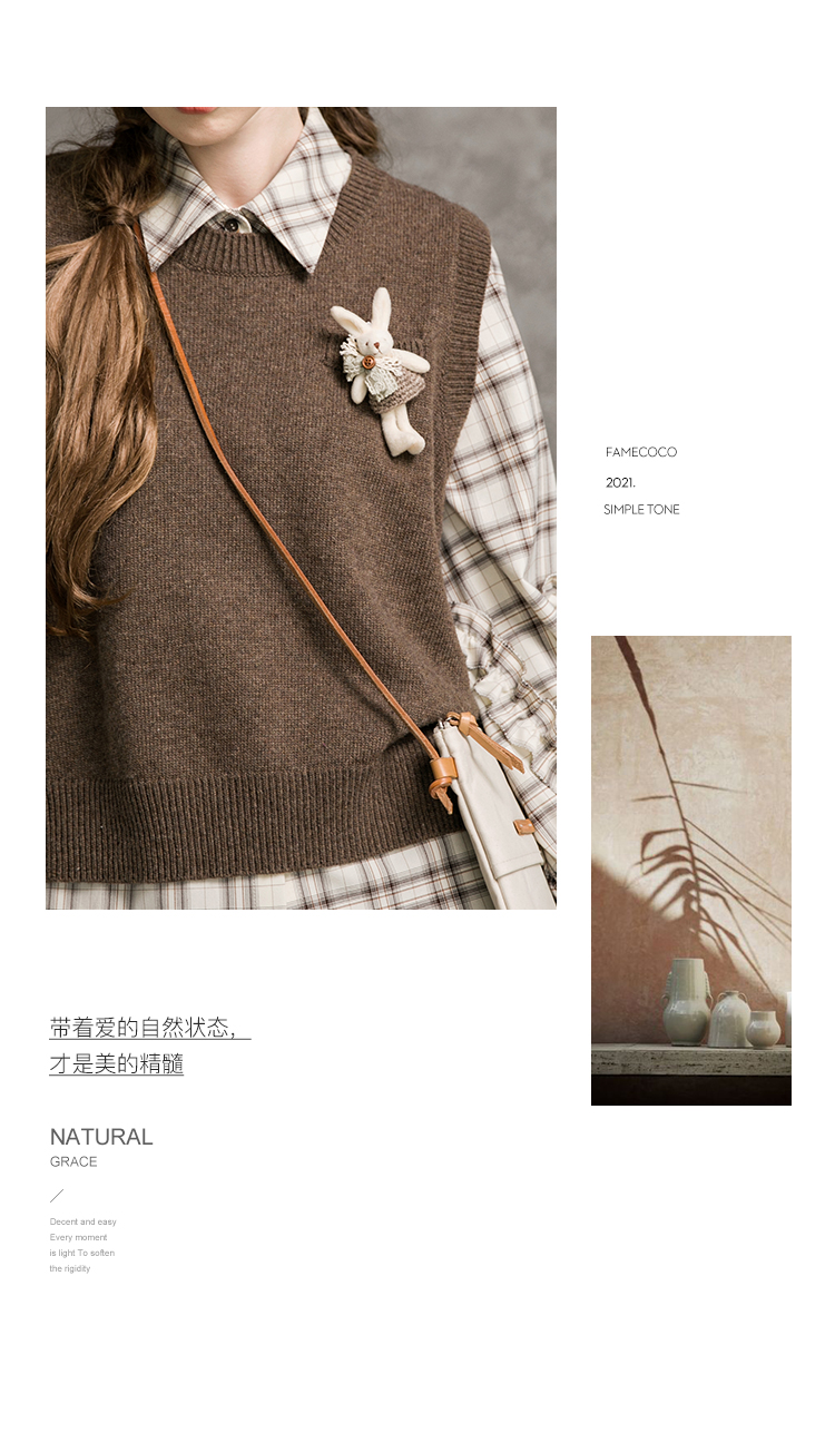 Famecoco范可儿短款针织马甲女秋季圆领羊毛小背心F216CA009