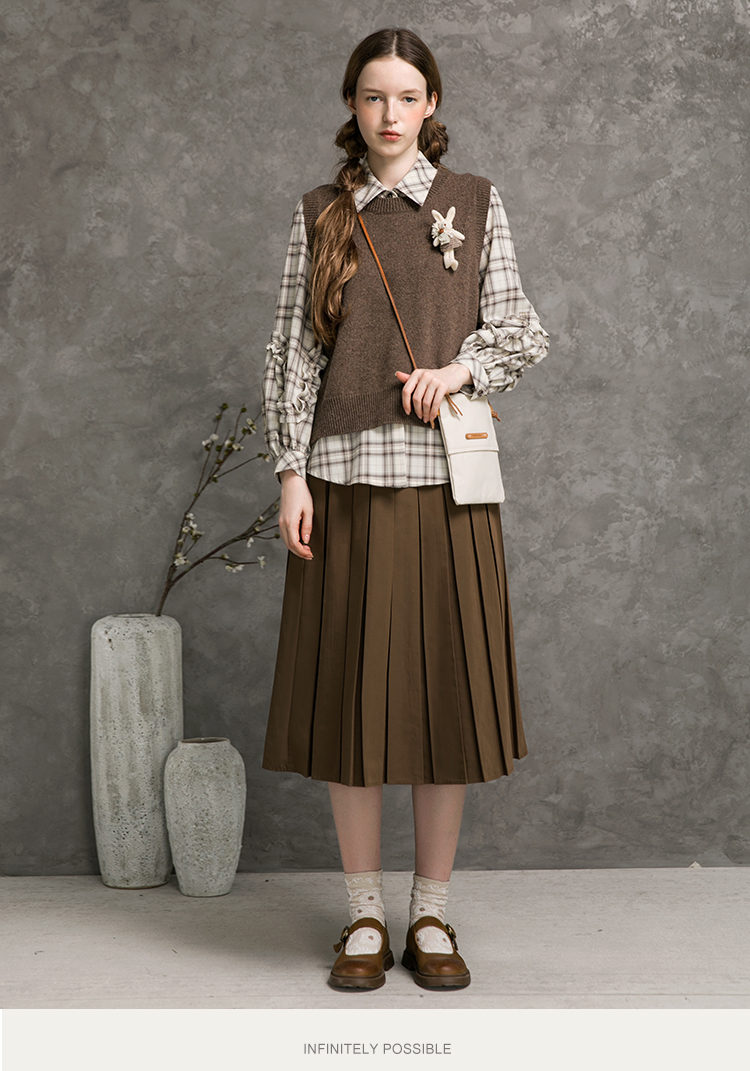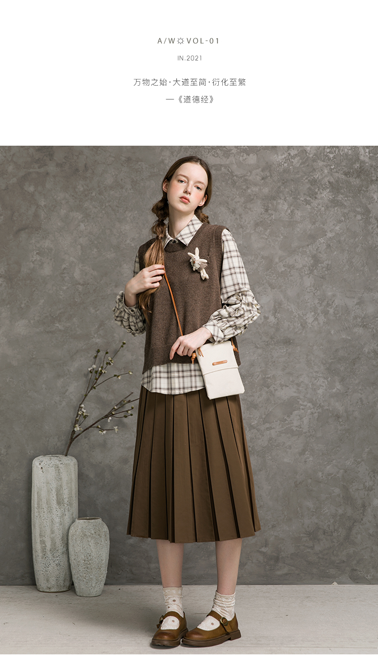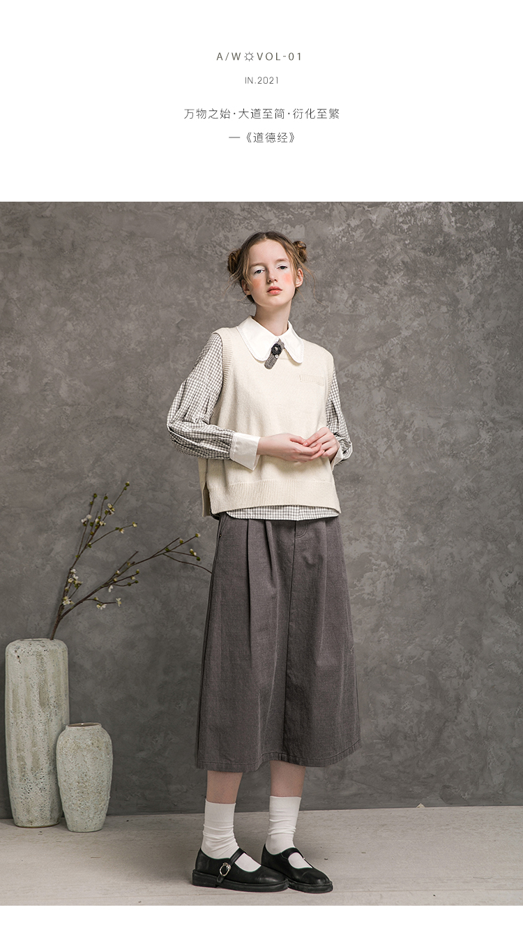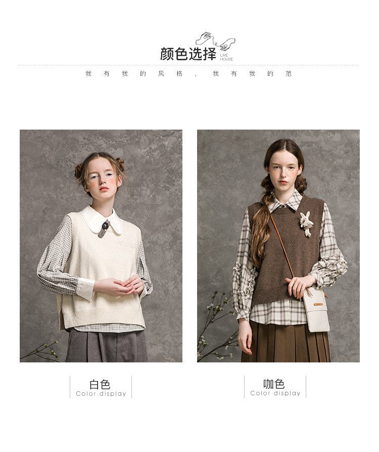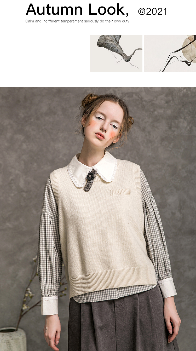Famecoco范可儿短款针织马甲女秋季圆领羊毛小背心F216CA009