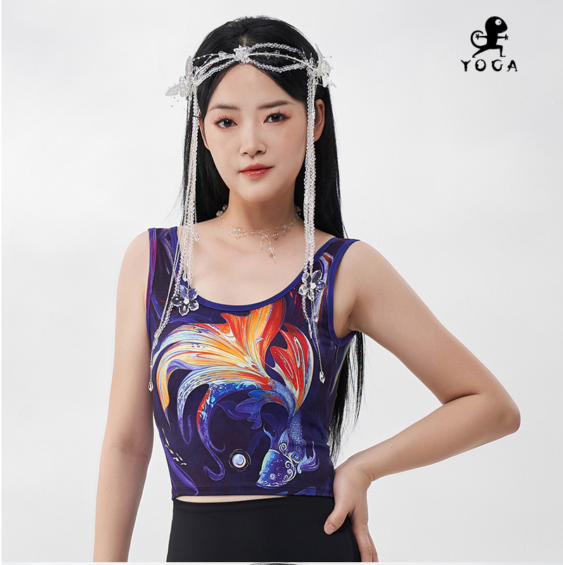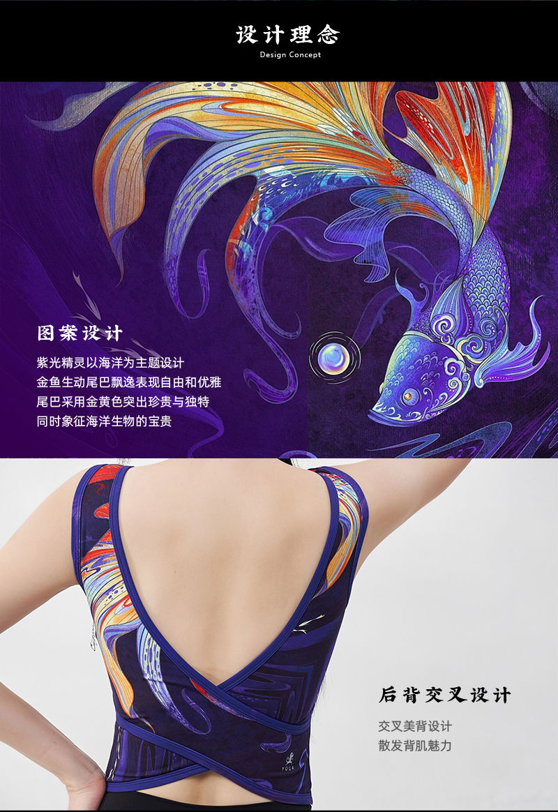 壁虎瑜伽【紫光精灵-上衣+云感裤-黑色】限量款印花瑜伽套装(可拆卸胸垫)【2024年5月31日发货】