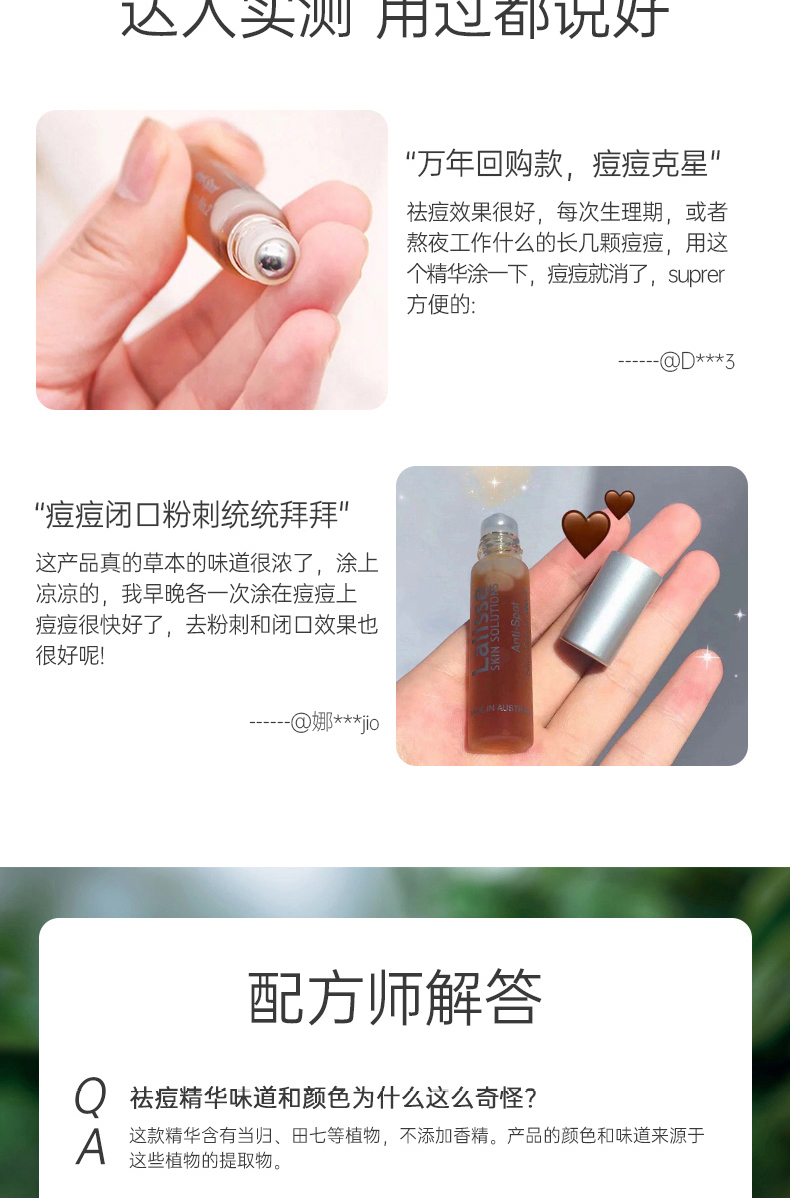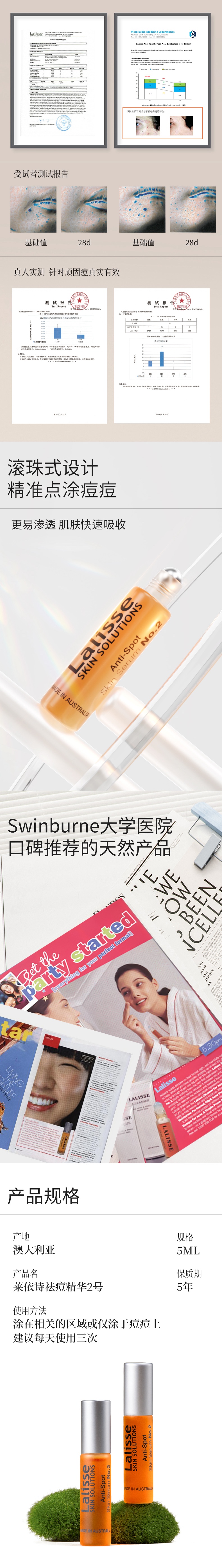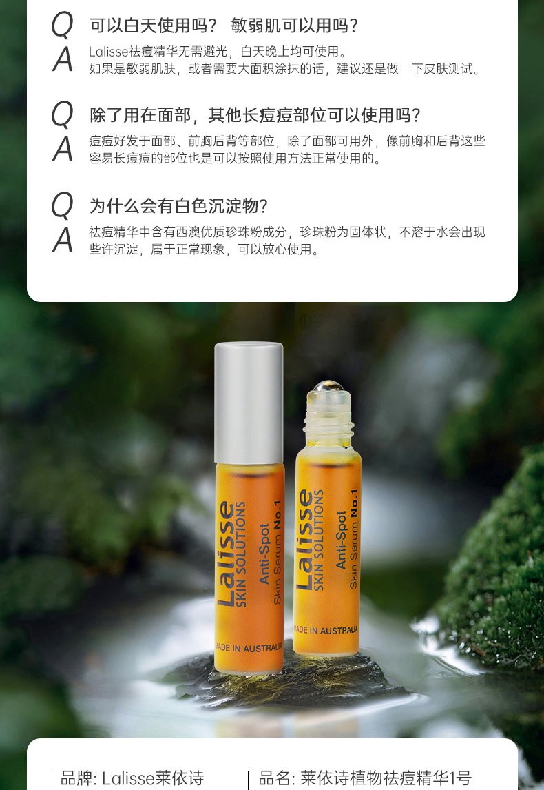 澳洲进口 Lalisse莱依诗 植物祛痘精华 5mL 1号日常巩固;2号集中对应