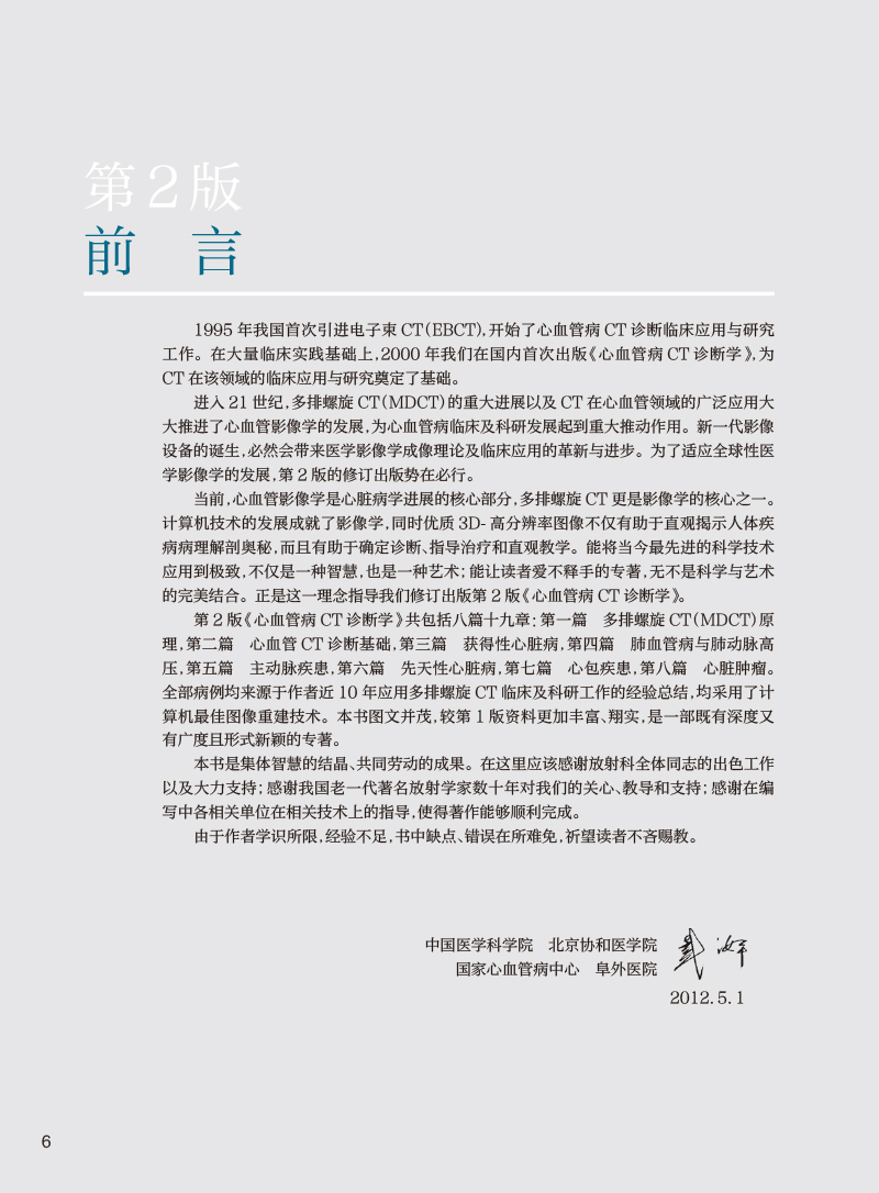 第1版于2000年出版,首印3000册,重印1次,共计6000册,无库存。第2版于2013年出版,首印3000册,报废788册。随着CT设备、检测技术、人工智能等的发展,诊断内容也随之更新,《心血管病CT诊断学》需要将新设备、新技术、新的诊断内容等纳入其中。更新内容包括CT新设备的更新、心脏CT功能诊断检查的发展(如血流储备分数FFR、连续动态CT灌注成像、心肌微循环血流研究等)、对疾病认识的新发展、CT诊断检查方法的改进、3D打印的应用、人工智能与影像组学相关内容等。《心血管病CT诊断学(第3版)》将更全面地介绍目前心血管领域应用的CT技术,体现出当前学科发展的新的水平与成果,达到“精准诊断”,实现“精准治疗”,引流学科向前发展。