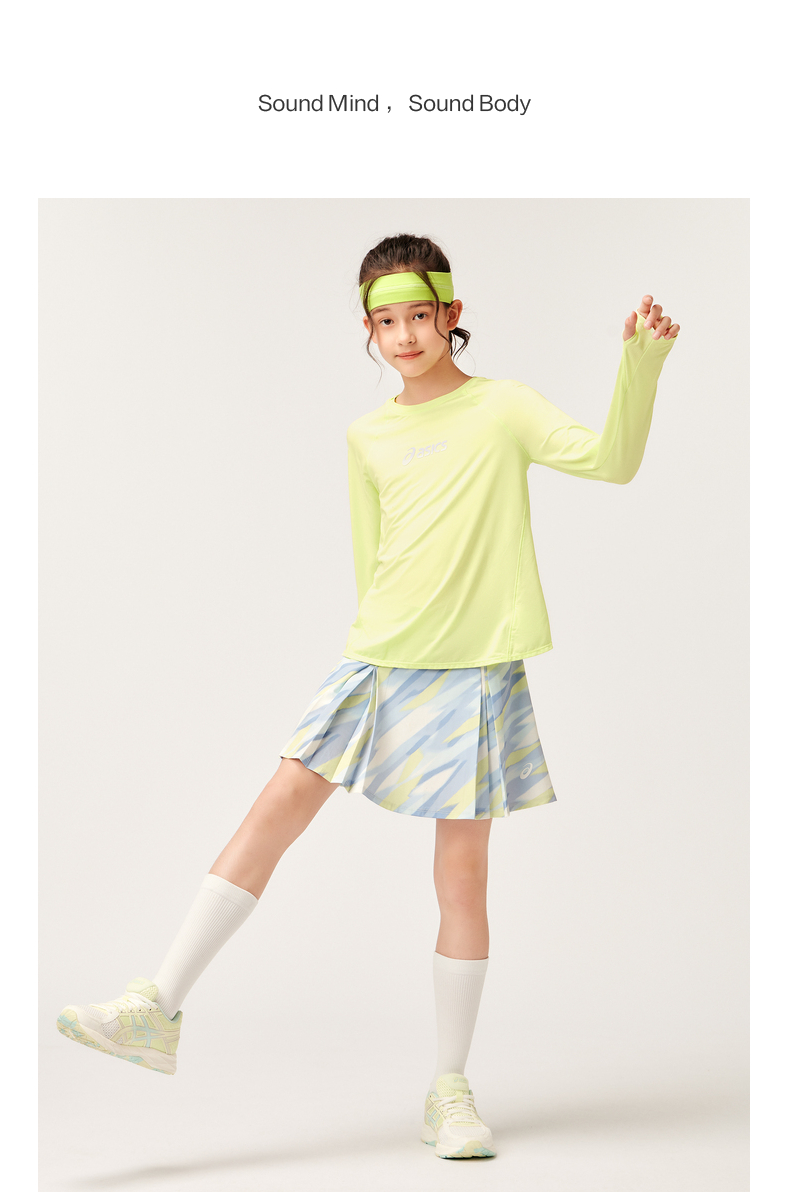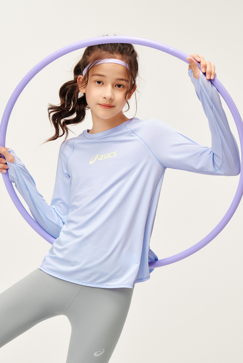 ASICS/亚瑟士童装2024年秋季新款中大童百搭休闲长袖运动速干T恤
