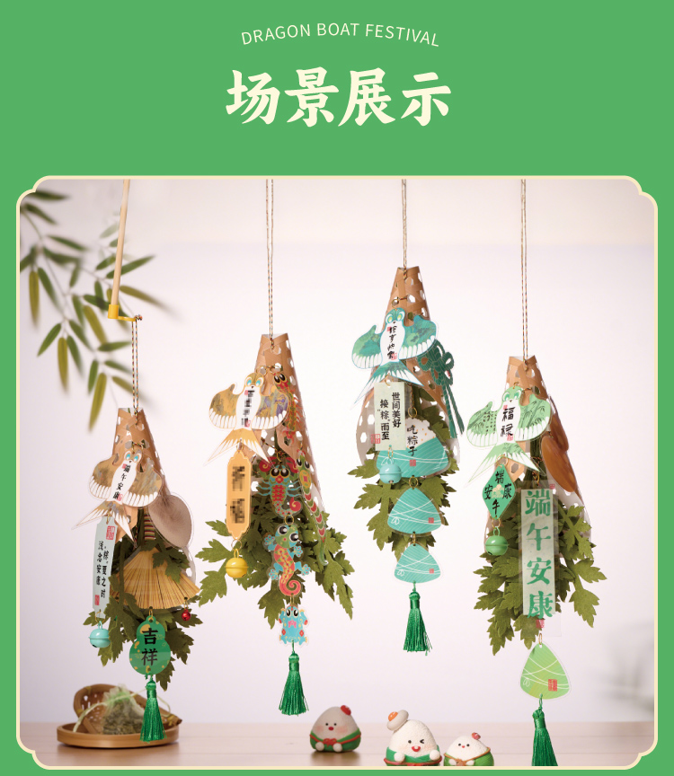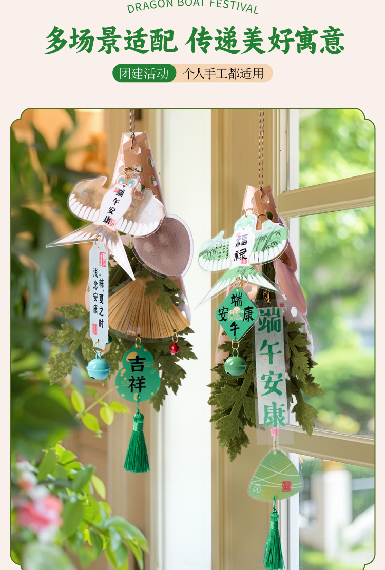 2025端午节礼品艾草竹编纸鸢挂饰手工diy材料包花束门挂活动龙舟装饰