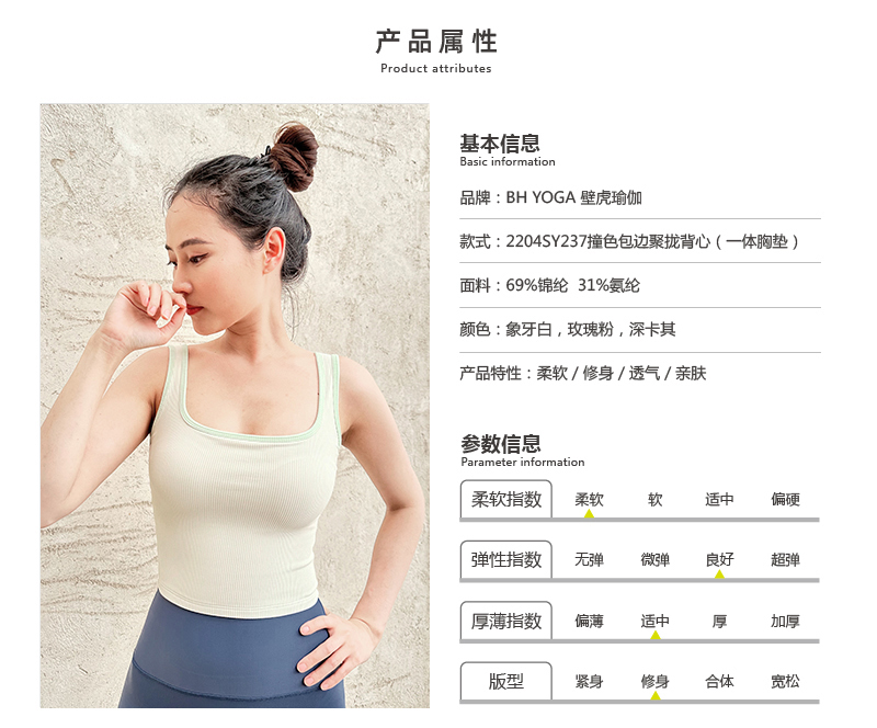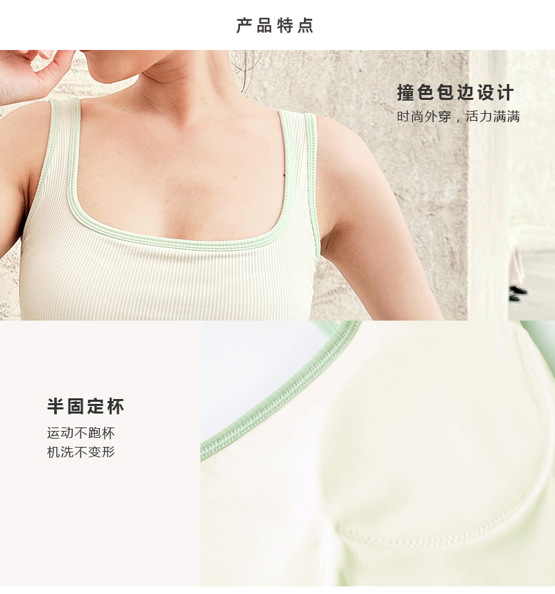 壁虎瑜伽【2304SY237】撞色包边聚拢背心(有胸垫)【5天发货】
