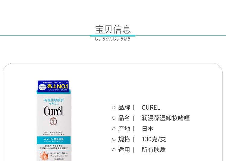 【爆款超低价预售 急单慎拍】日本花王curel珂润温和卸妆啫喱卸妆蜜130g 干燥敏感肌肤孕妇可用