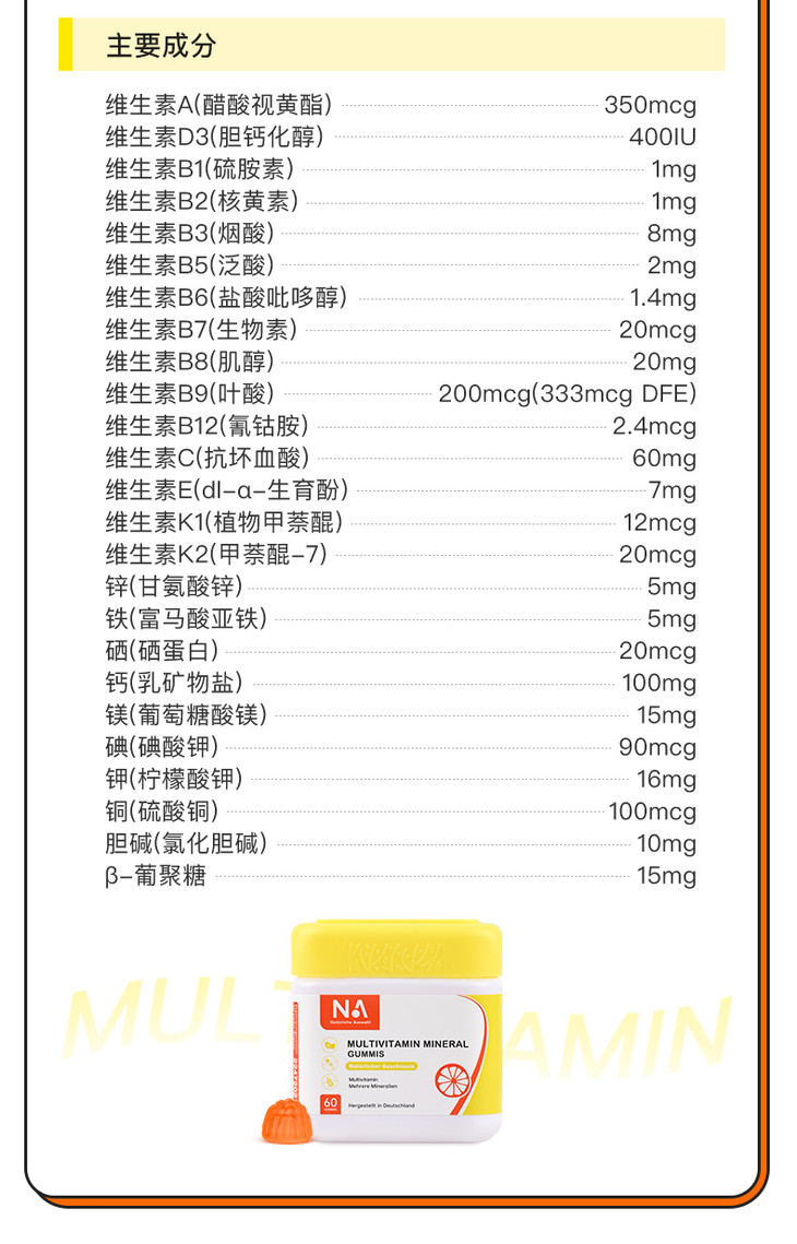 ⁵199元3瓶【儿童多维+D3软糖】每粒含D3-400IU+葡聚糖+多种维生素+矿物质 柑橘味 每瓶60粒 YY05-QTT-MCKJ