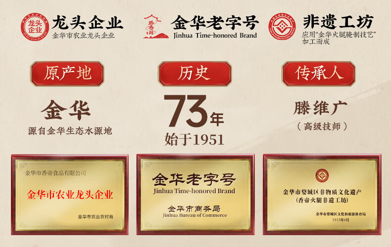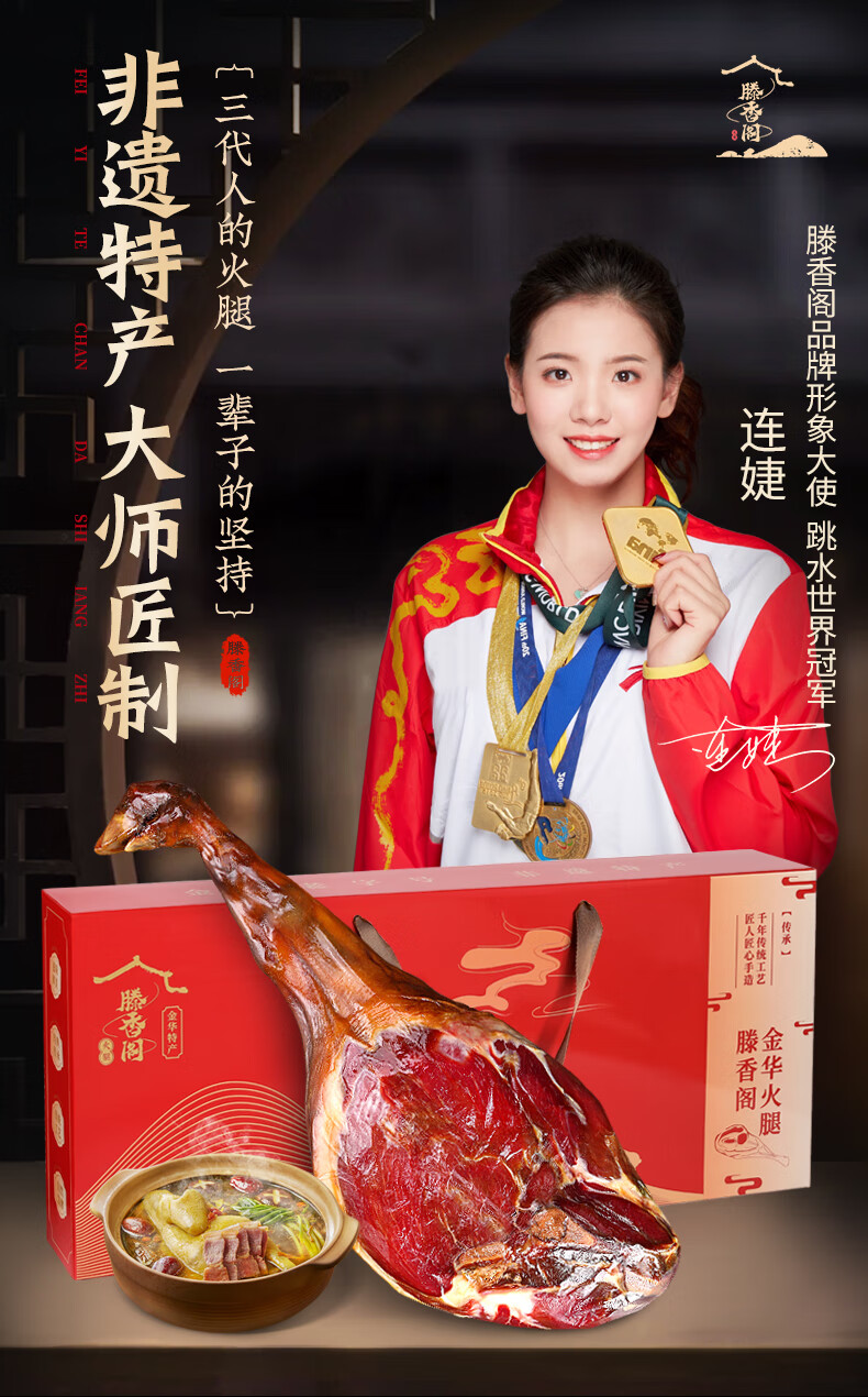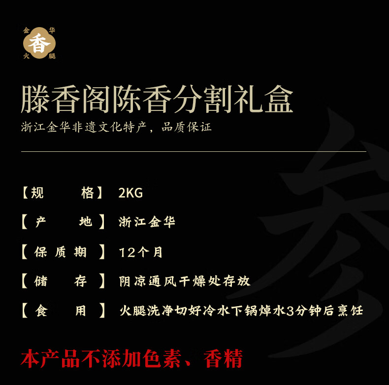 滕香阁老字号正宗金华火腿整腿分割礼盒端午节礼品商务送礼腊味特产 4斤